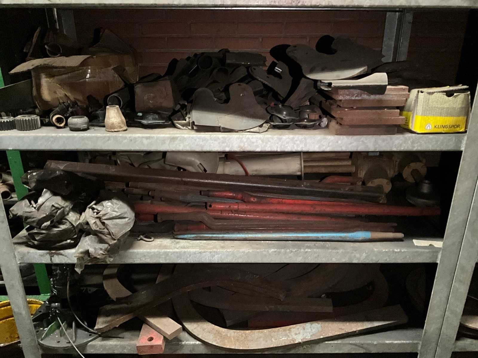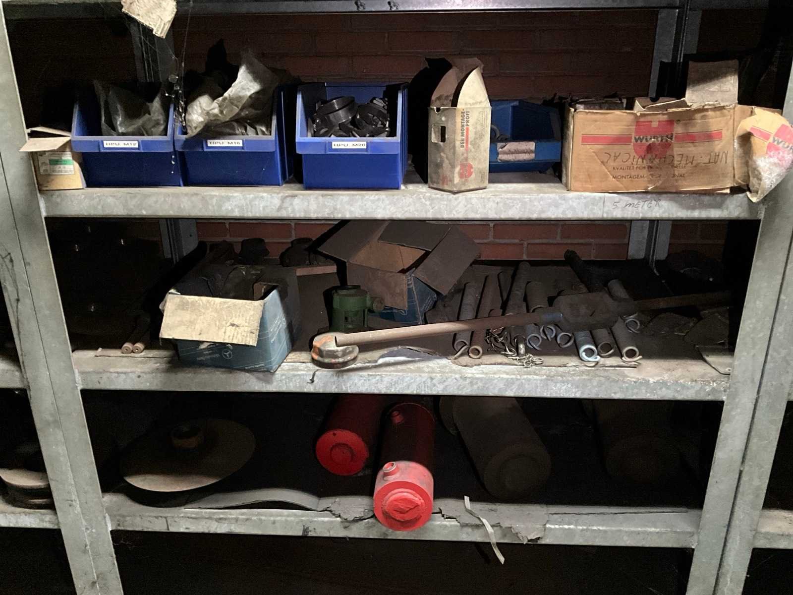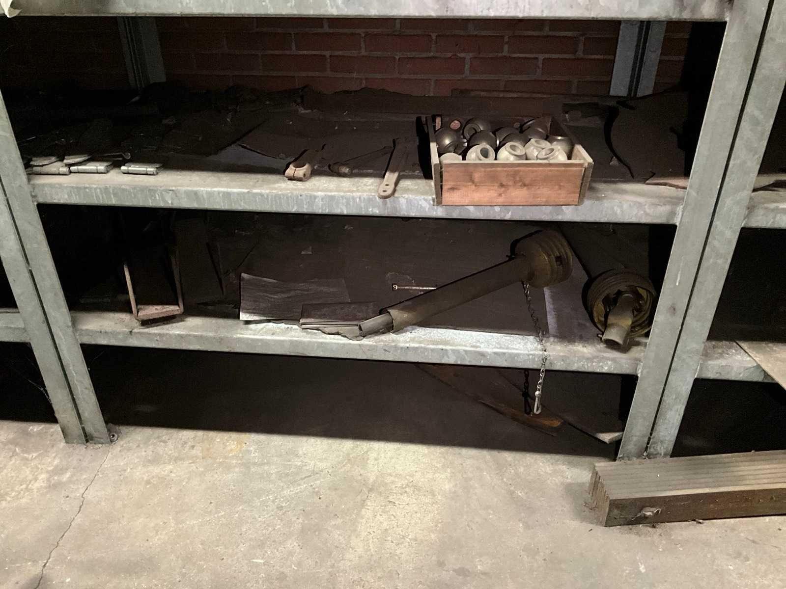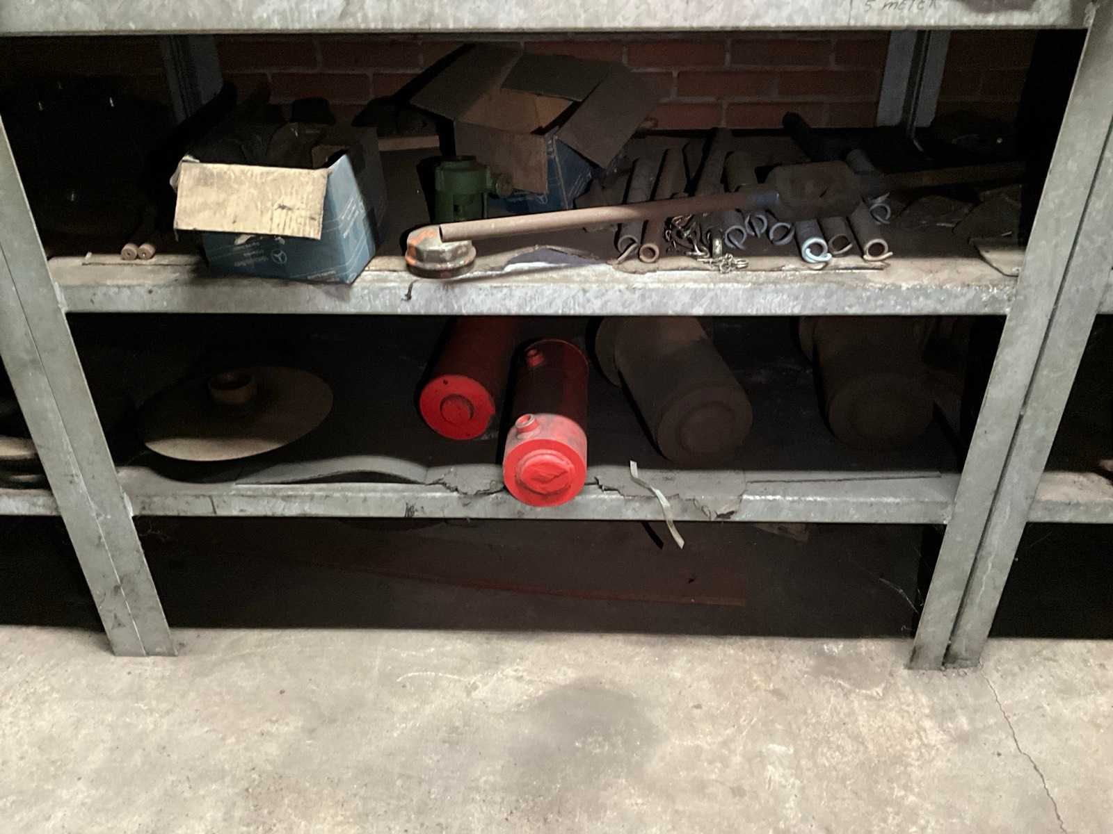 Dit kavel is onderdeel van combinatie kavel 771, onder andere bemesterdelen, topstang kogels, cilinders, koppelingen, halffabricaten, uit en inclusief stellingen, 6x geconstrueerde stelling (lxbxh) 1540x830x2020 mm, 2x geconstrueerde stelling met demontabel legborden, (lxbxh) 1240x510x2020 mm, Let op! Koper is verantwoordelijk voor het uithuizen en leeghalen van de stellingen en goederen, heftruck is niet beschikbaar voor het uithuizen, heftruck is alleen beschikbaar voor het laden op het transportvoertuig,