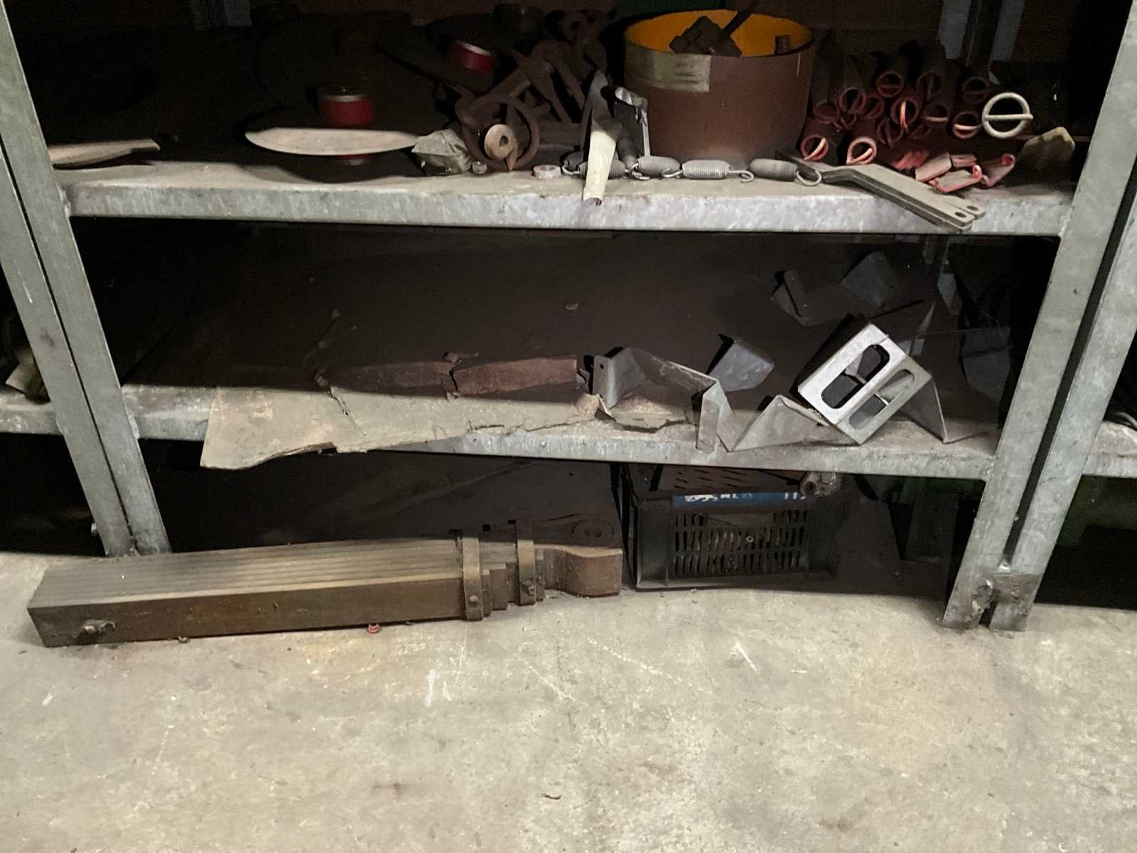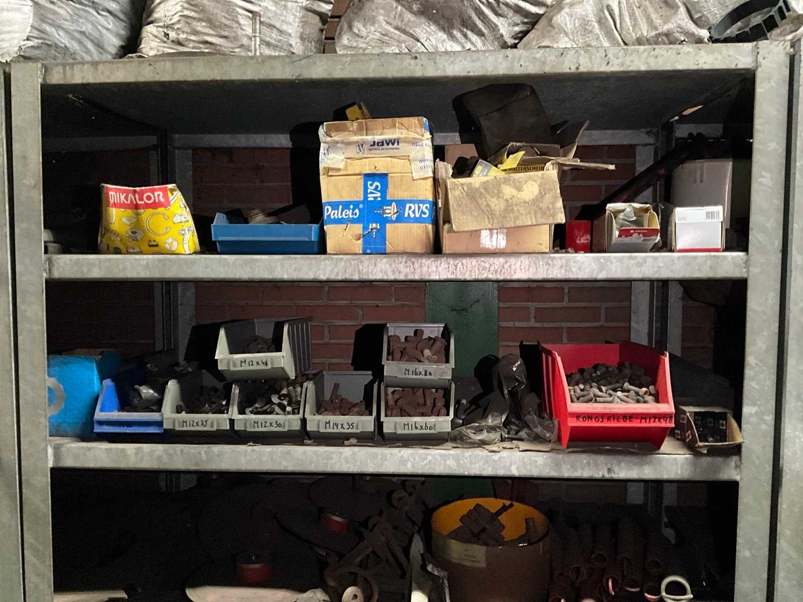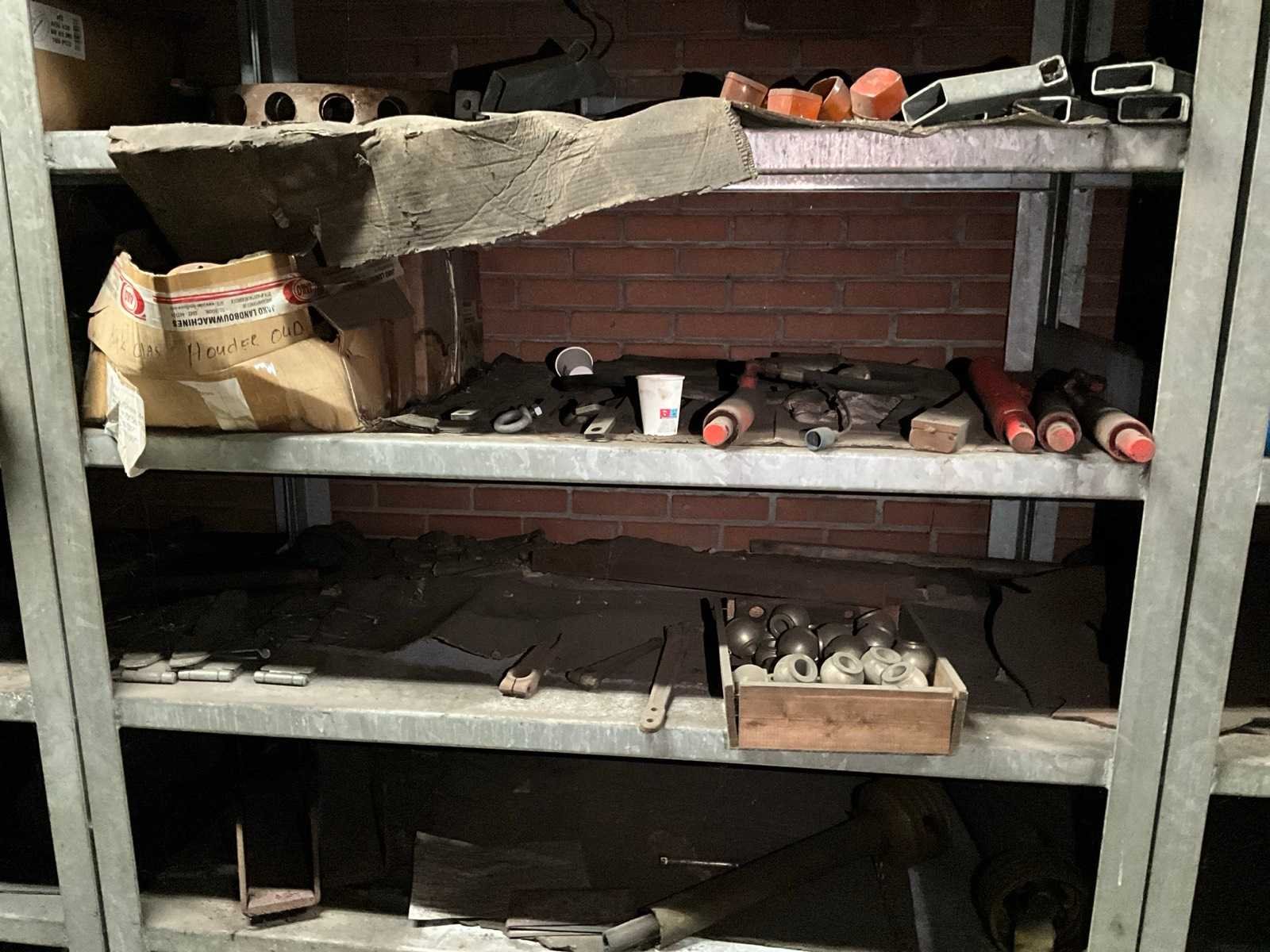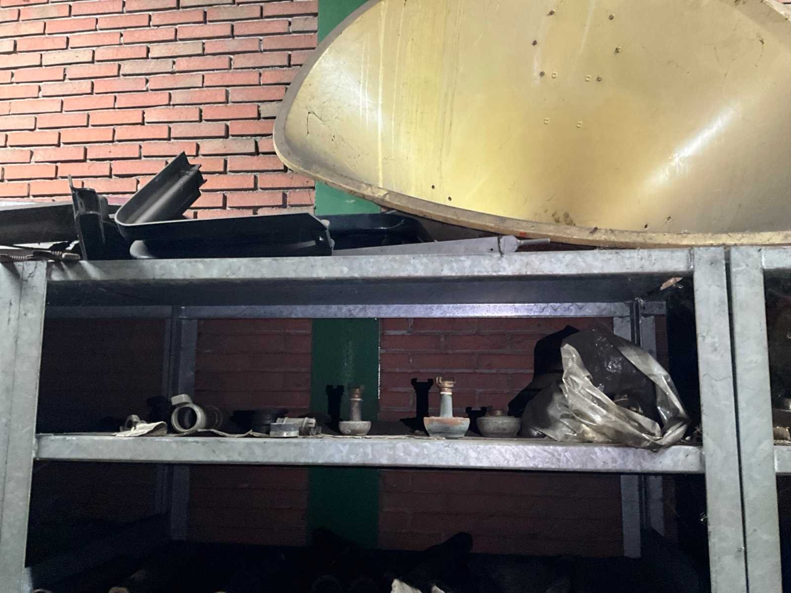 Dit kavel is onderdeel van combinatie kavel 771, onder andere bemesterdelen, topstang kogels, cilinders, koppelingen, halffabricaten, uit en inclusief stellingen, 6x geconstrueerde stelling (lxbxh) 1540x830x2020 mm, 2x geconstrueerde stelling met demontabel legborden, (lxbxh) 1240x510x2020 mm, Let op! Koper is verantwoordelijk voor het uithuizen en leeghalen van de stellingen en goederen, heftruck is niet beschikbaar voor het uithuizen, heftruck is alleen beschikbaar voor het laden op het transportvoertuig,