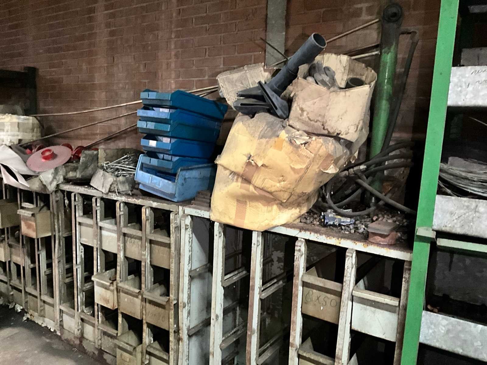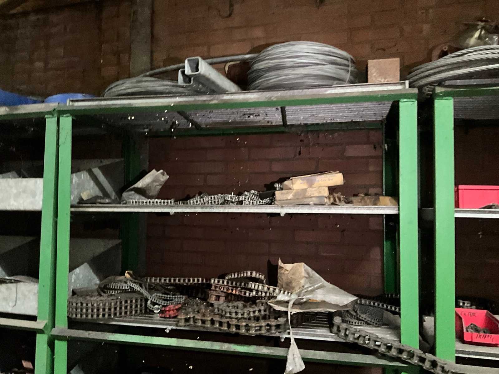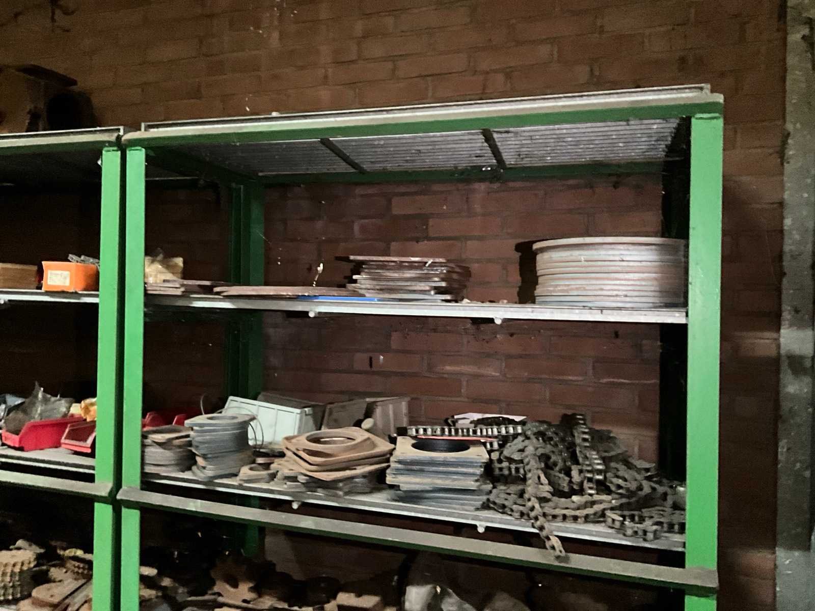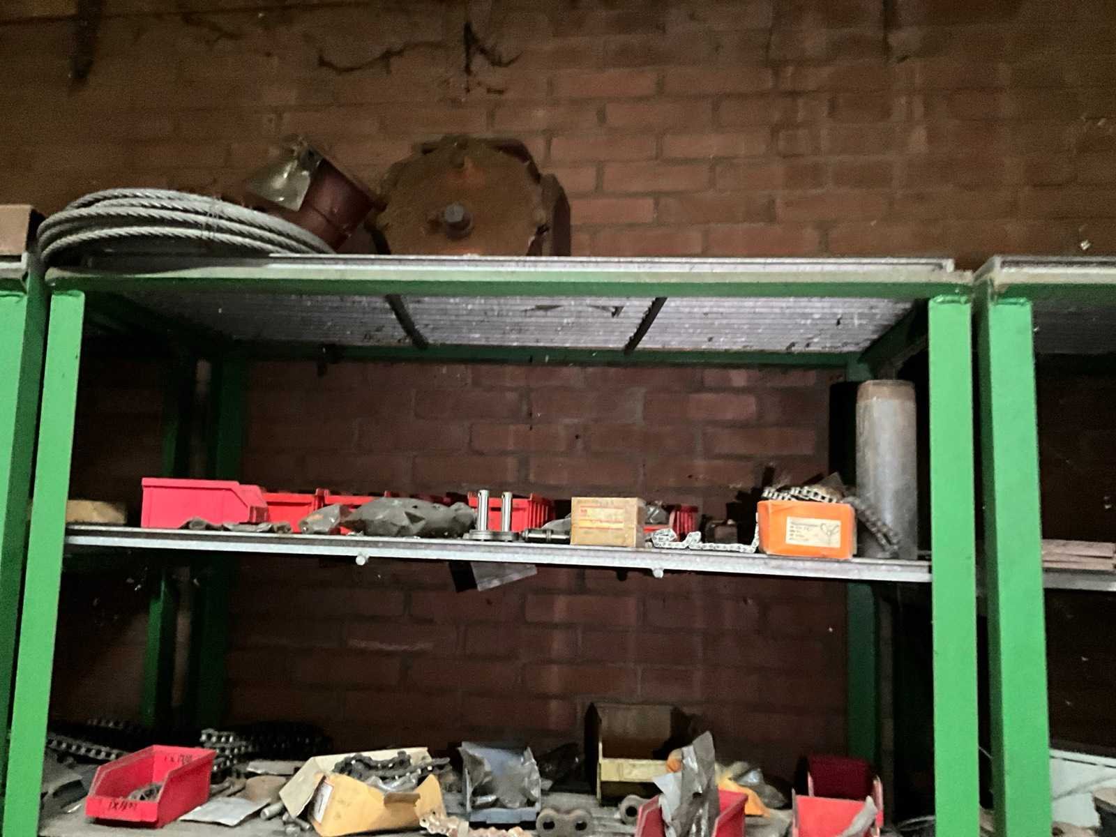 Dit kavel is onderdeel van combinatie kavel 771, onder andere bevestigingsmaterialen, kettingen, tandwielen, uit en inclusief stellingen, 1x geconstrueerde stelling (lxbxh) 1540x830x2020 mm, 5x geconstrueerde stelling met demontabel legborden, (lxbxh) 1240x510x2020 mm, stapeljukken en divers, Let op! Koper is verantwoordelijk voor het uithuizen en leeghalen van de stellingen en goederen, heftruck is niet beschikbaar voor het uithuizen, heftruck is alleen beschikbaar voor het laden op het transportvoertuig