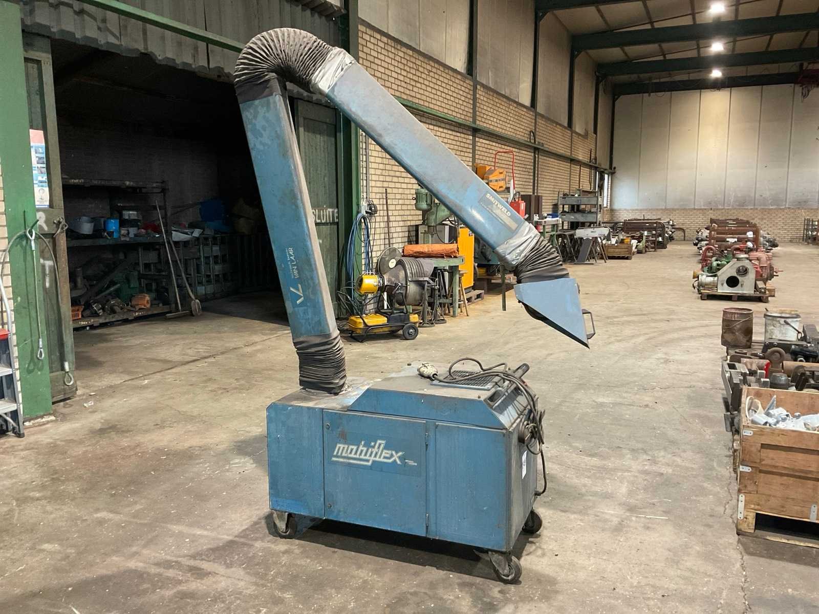 Merk: Mobiflex Type: HBM-1 Serienummer: 2412A01040 Mobiel: true Filterunit: true Armlengte: 2800mm Aansluiting: 400V Afmeting l: 1200mm Afmeting b: 600mm Afmeting h: 2450mm