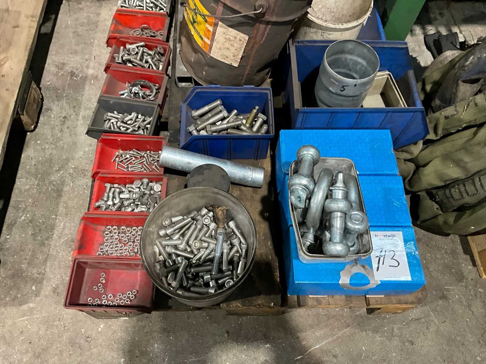 Onder andere harp sluitingen, bouten, moeren, alles op en met pallet