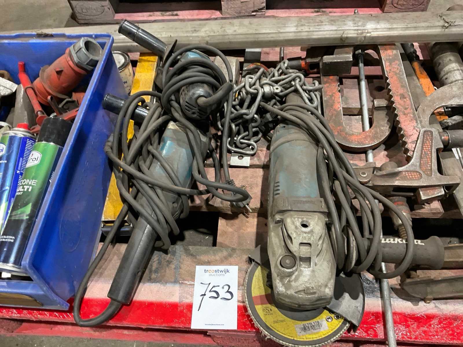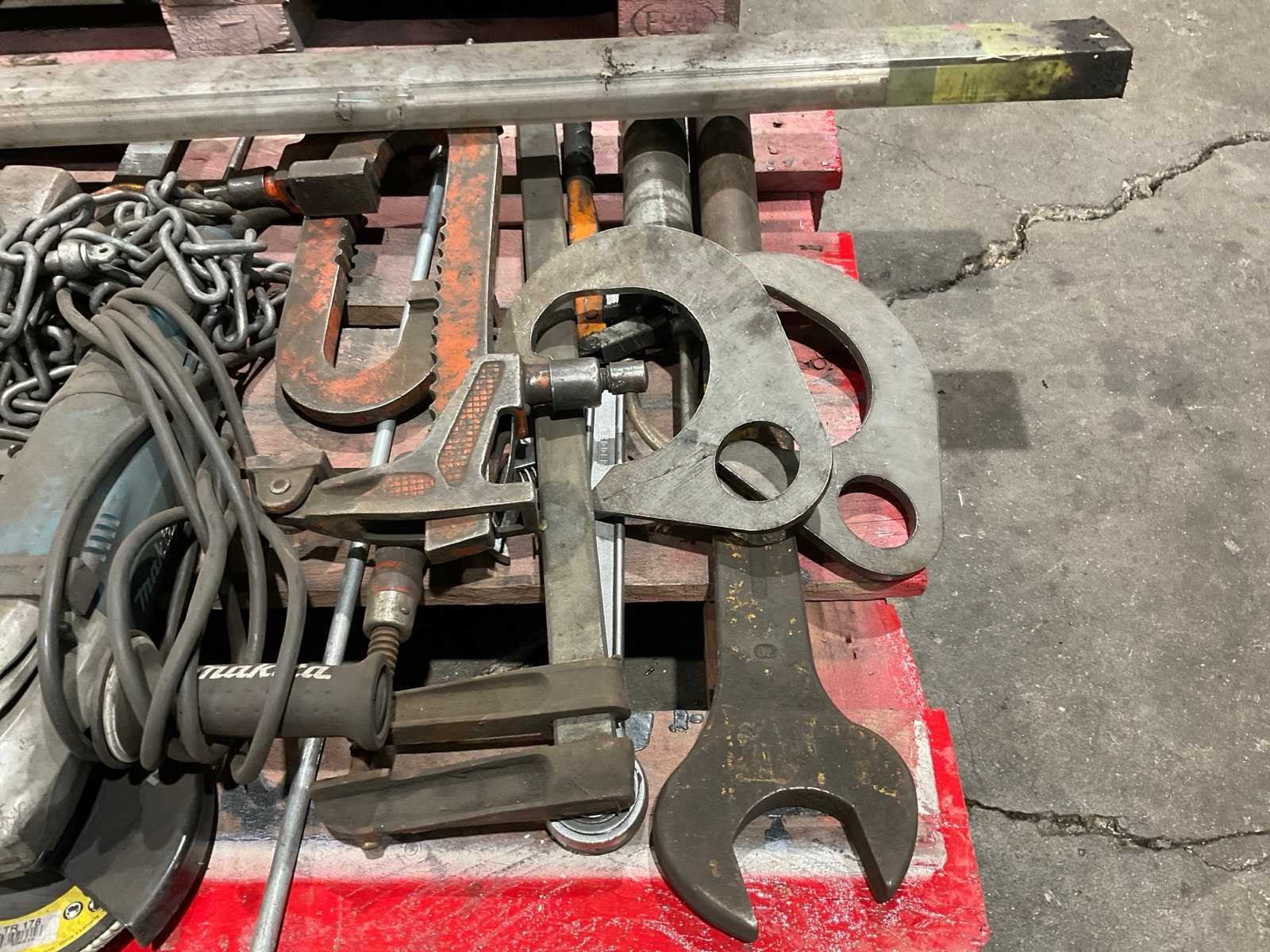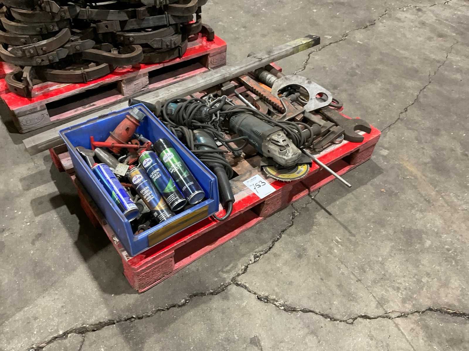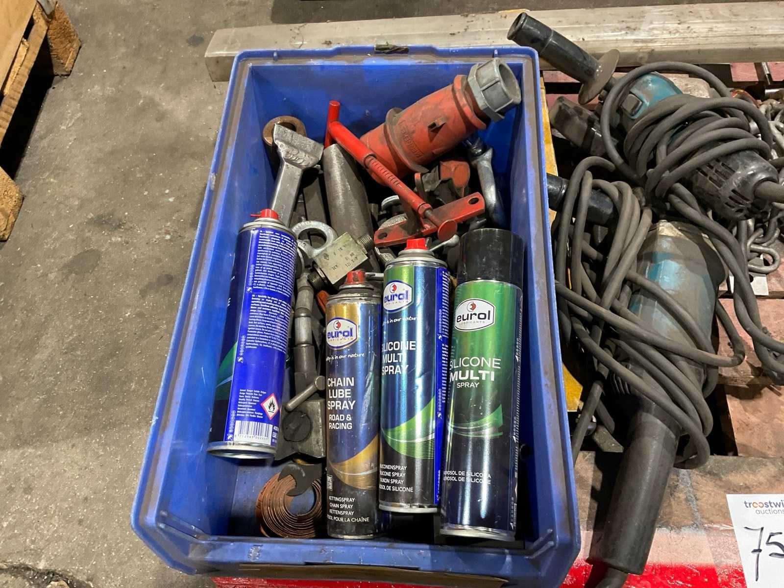 Bestaande uit onder andere: 3x haakse slijper, moersleutel maat 70, klemmen, beitels, diverse spuitbussen.