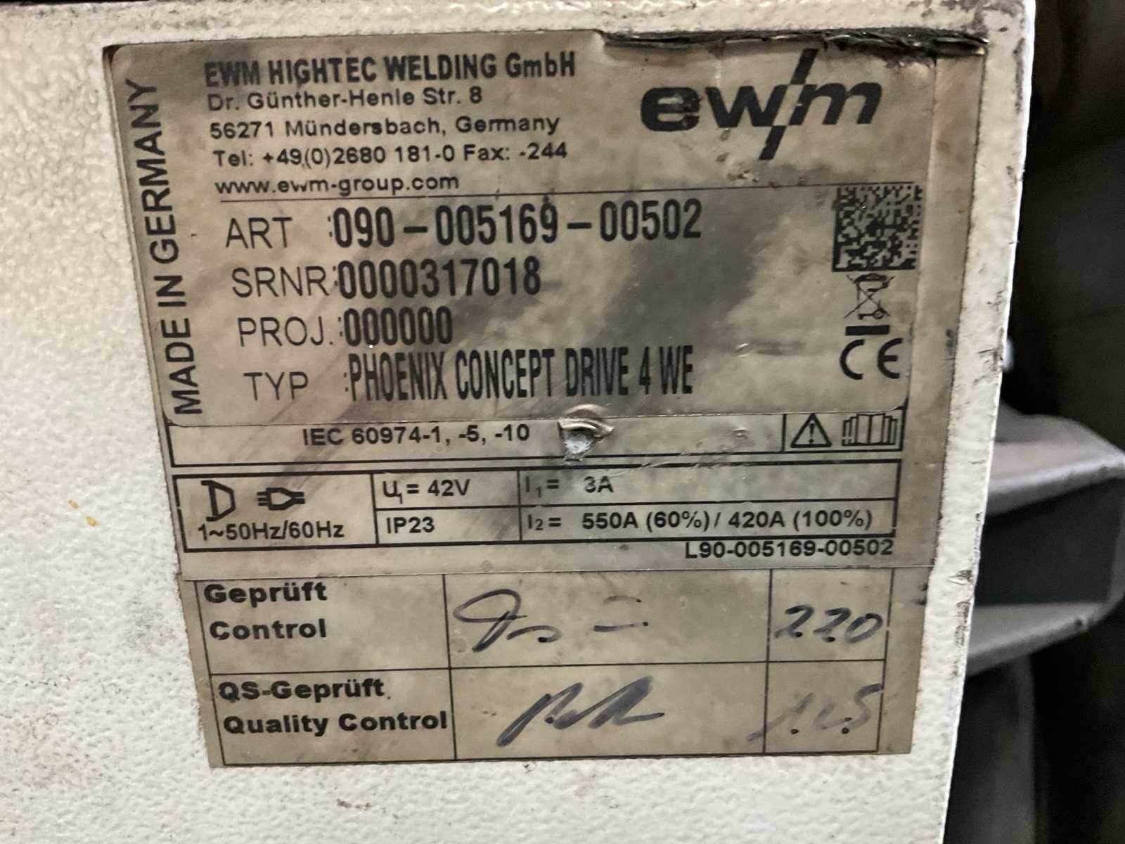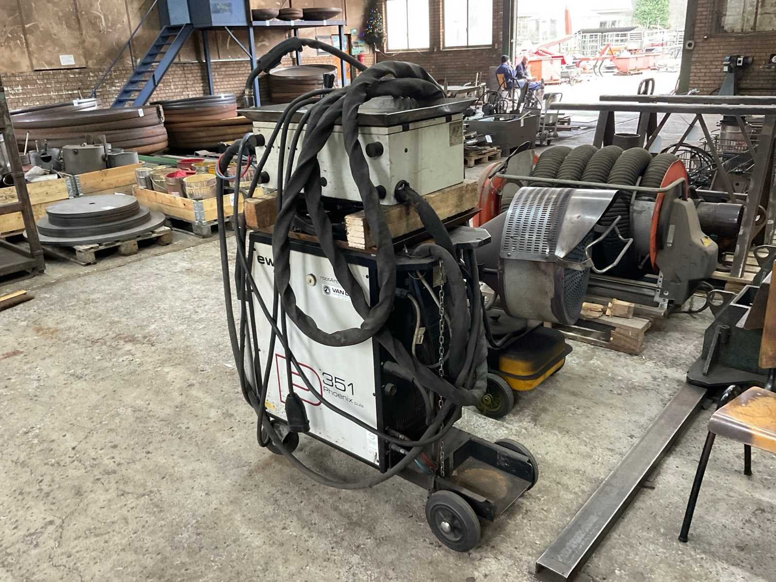 Merk: EWM Type: PHoenix 351 Serienummer: 0000315955 Max. lasvermogen: 350A Aansluiting: 400V Draadaanvoerunit: true Afmeting l: 1200mm Afmeting b: 650mm Afmeting h: 1500mm