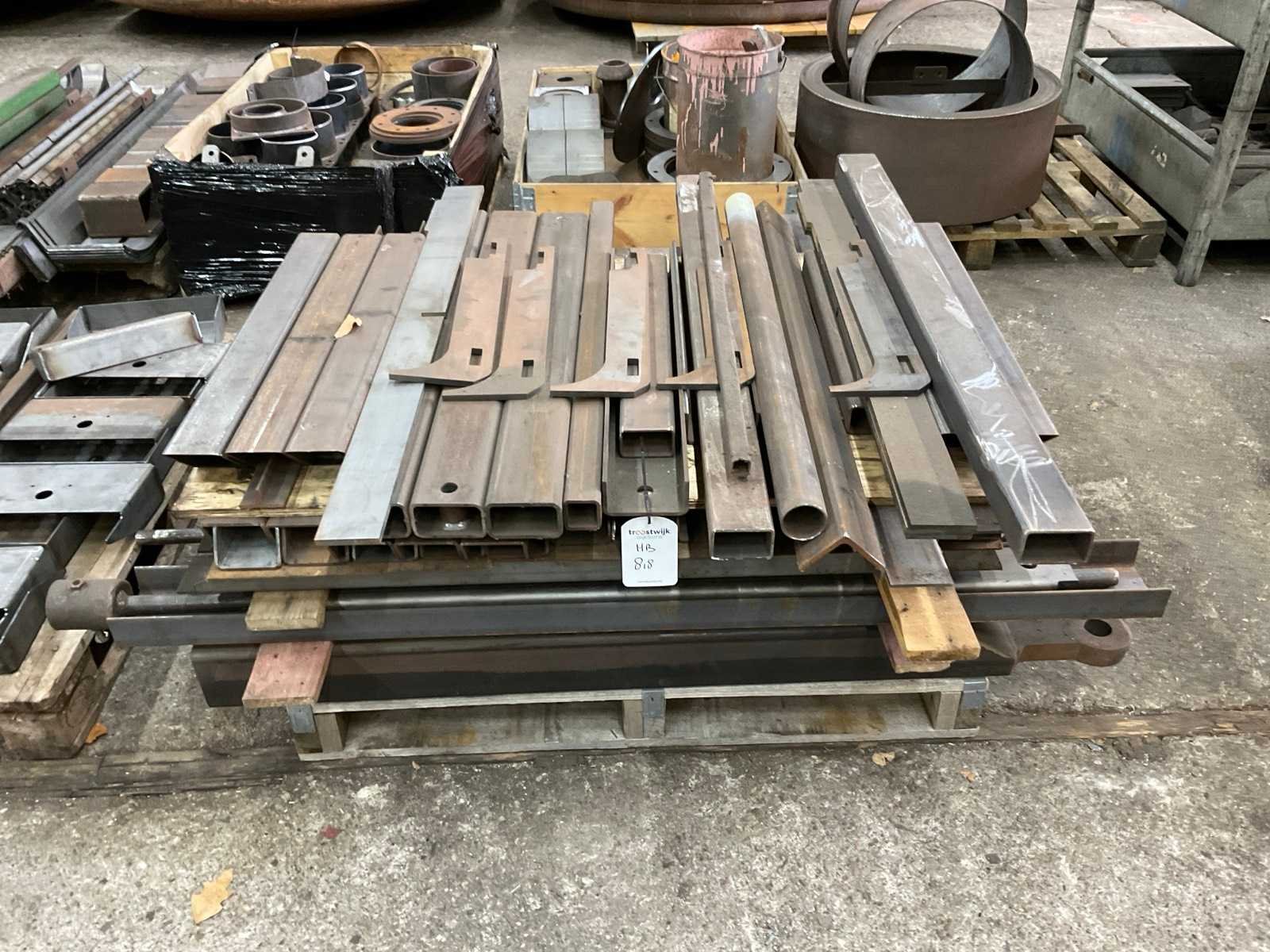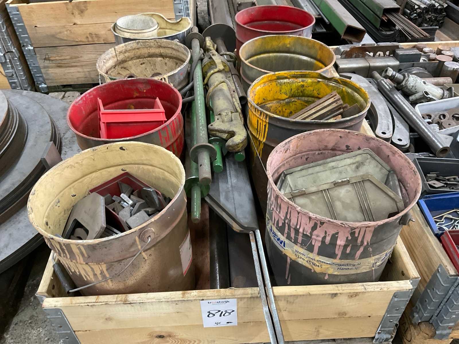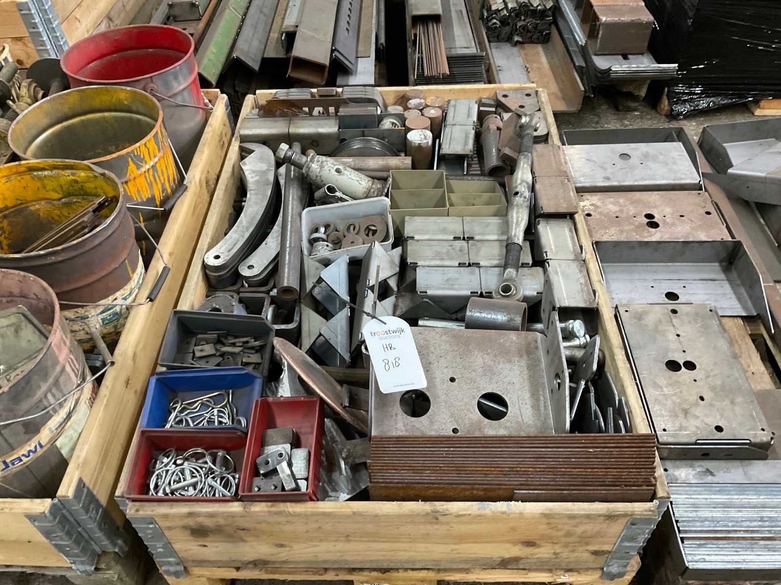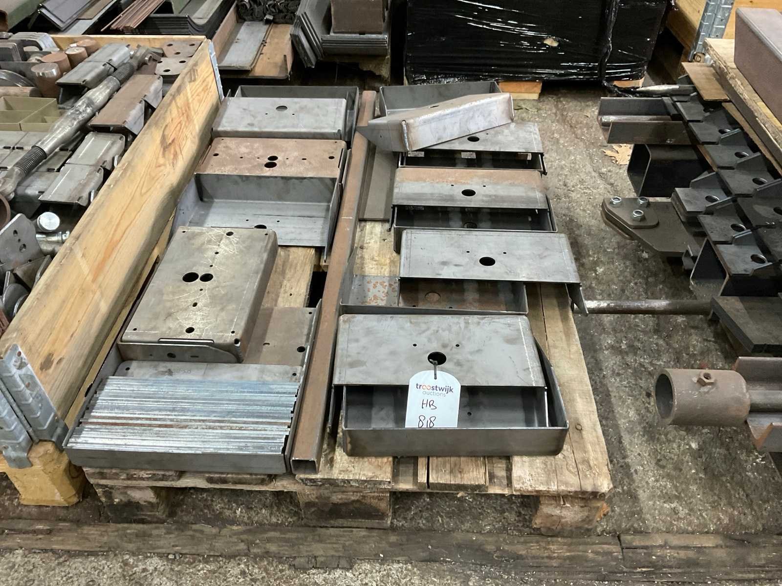 Beataande uit onder andere: 4 pallets met kokers, trekhaken, u- profielen, plaatjes, pennen, bouten, moeren.