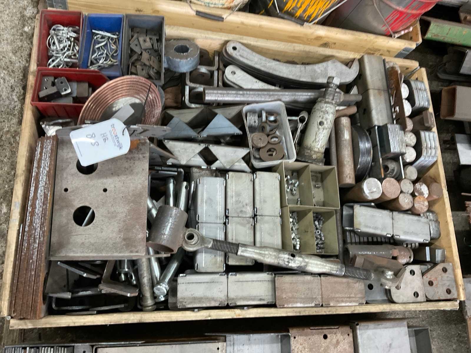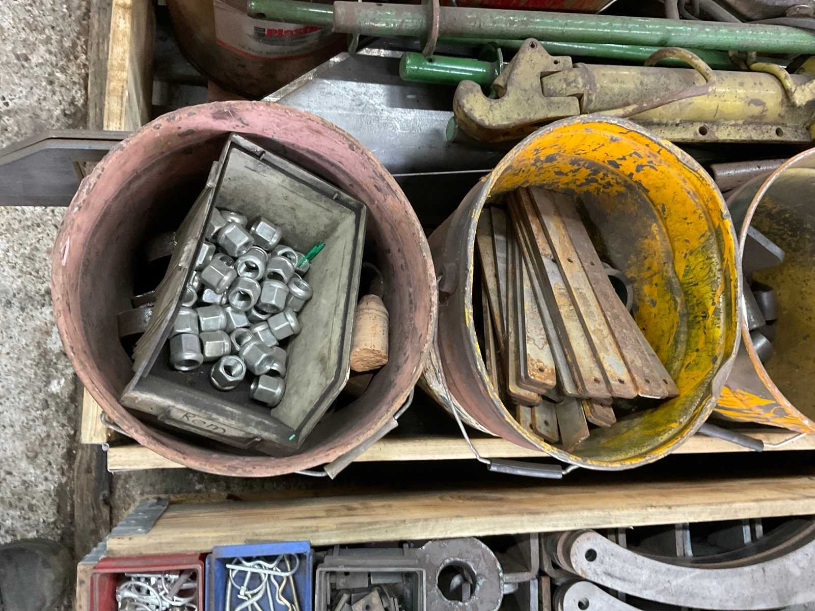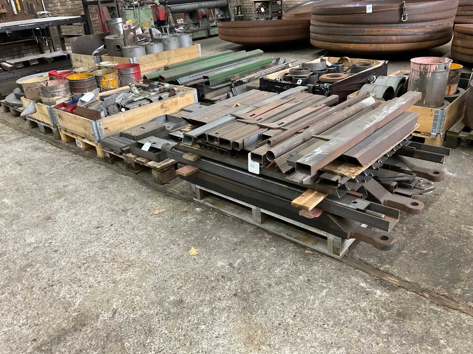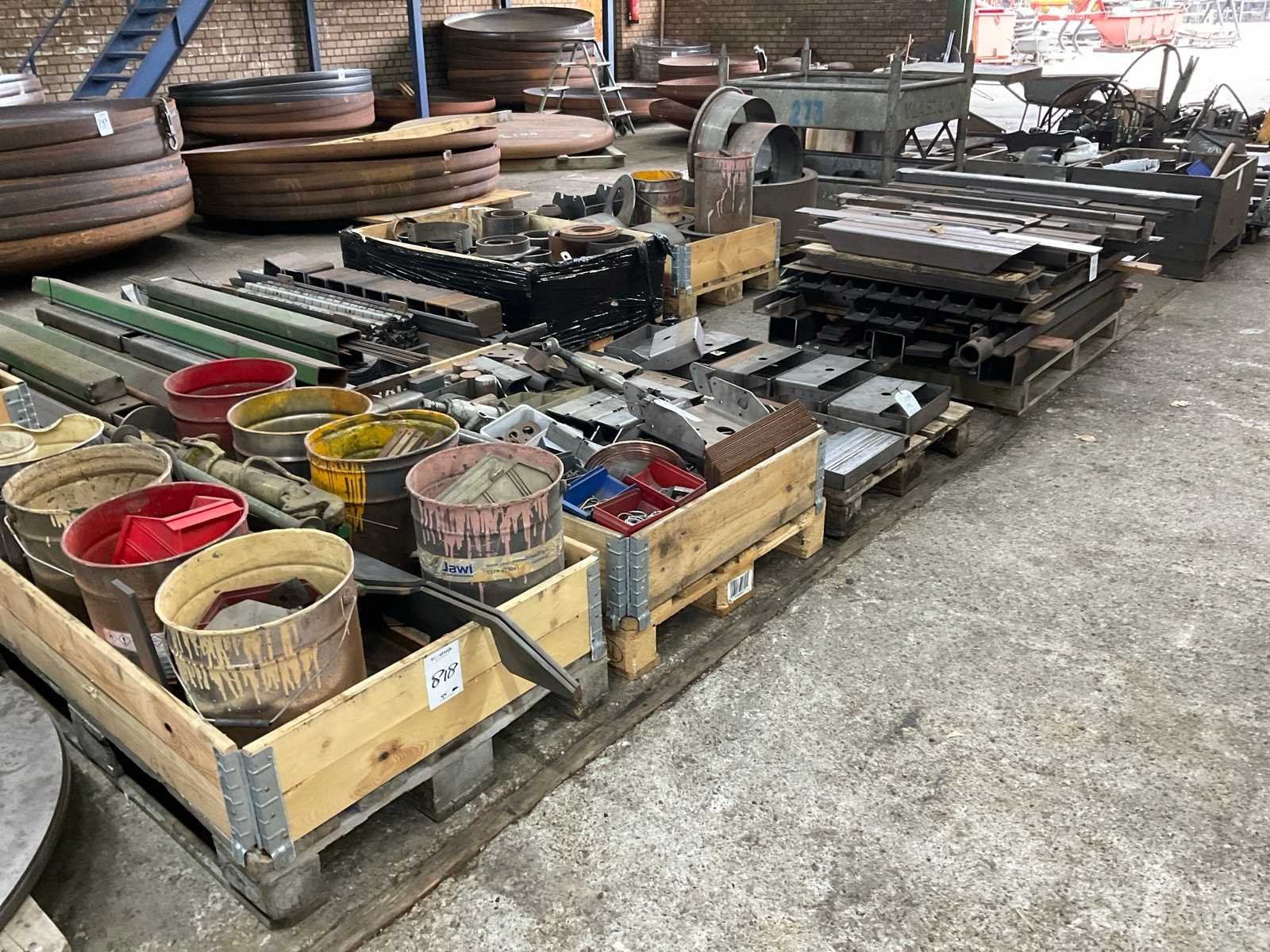 Beataande uit onder andere: 4 pallets met kokers, trekhaken, u- profielen, plaatjes, pennen, bouten, moeren.