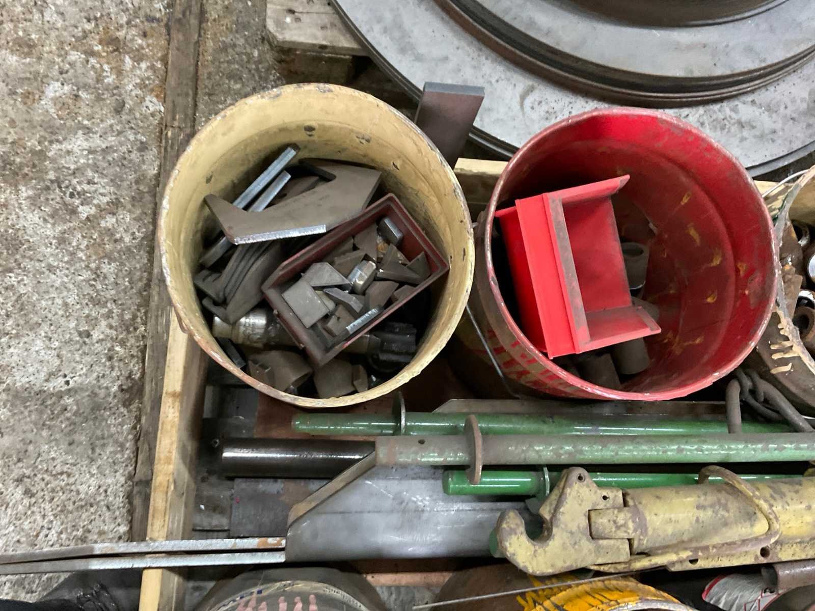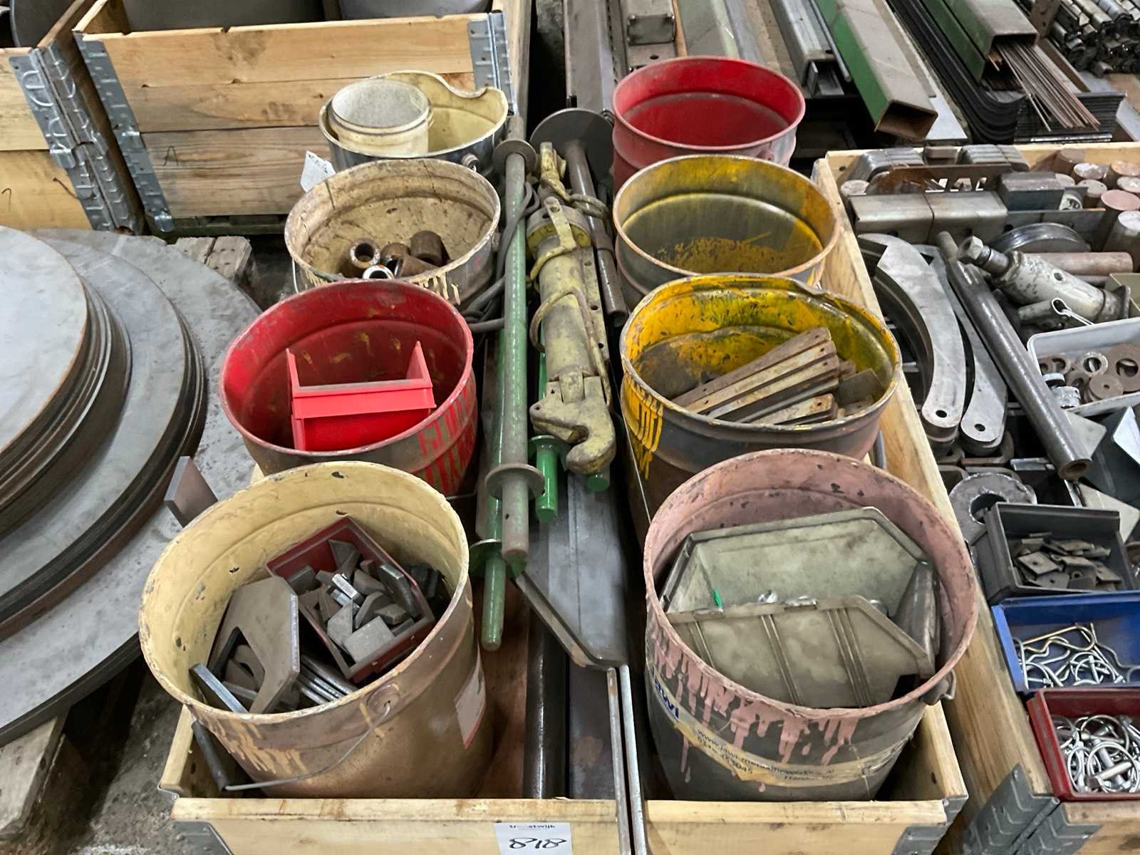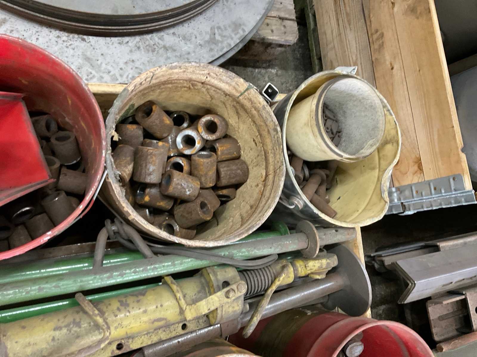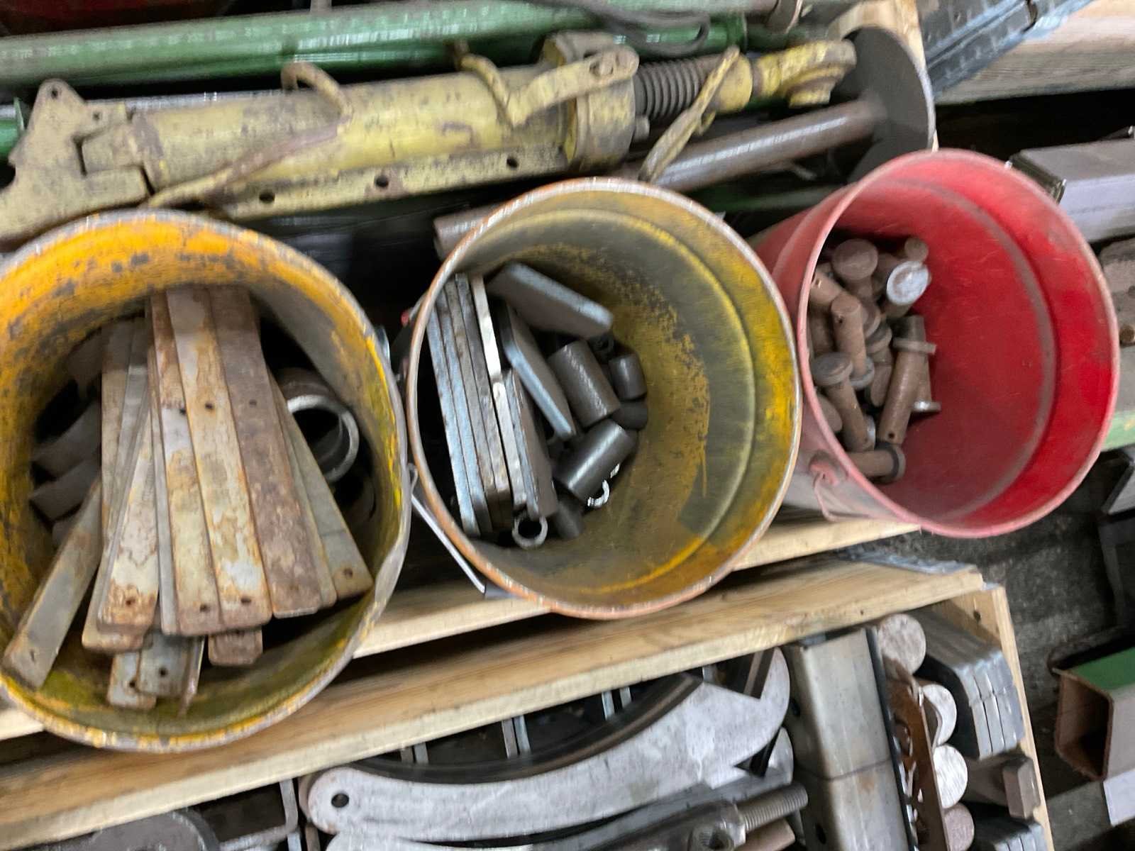 Beataande uit onder andere: 4 pallets met kokers, trekhaken, u- profielen, plaatjes, pennen, bouten, moeren.