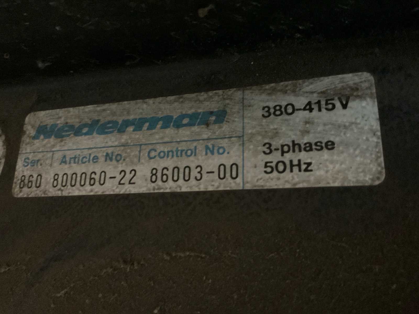 Merk: Nederman Serienummer: 860 Aansluiting: 400V Totale afmeting L: 1600mm Totale afmeting Breedte: 700mm Totale afmeting Hoogte: 850mm