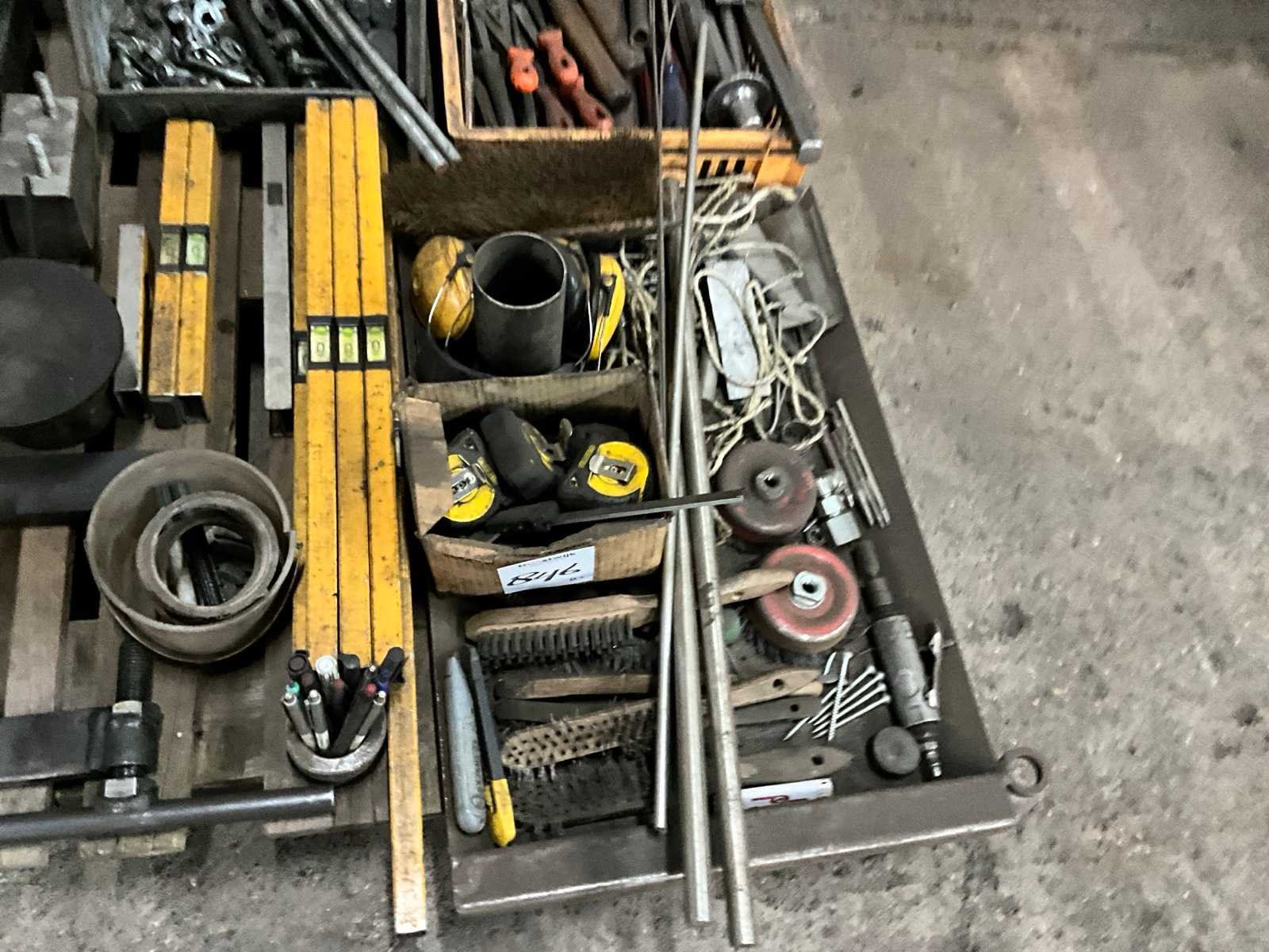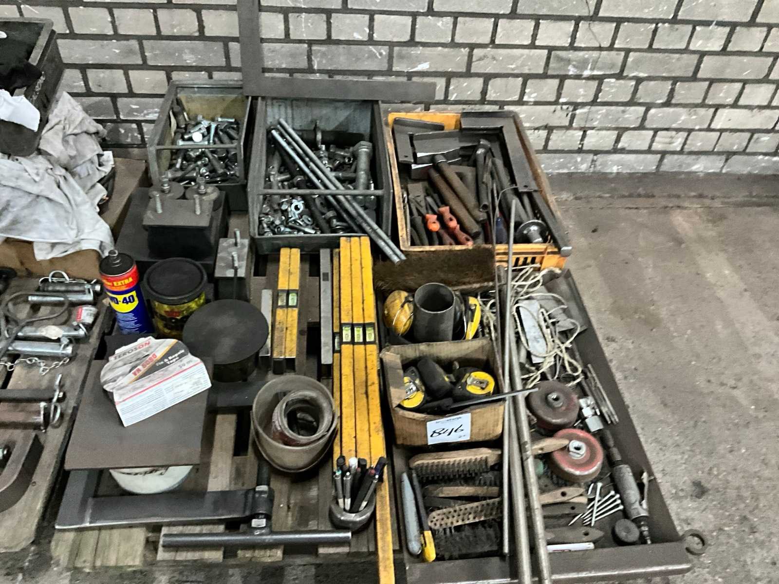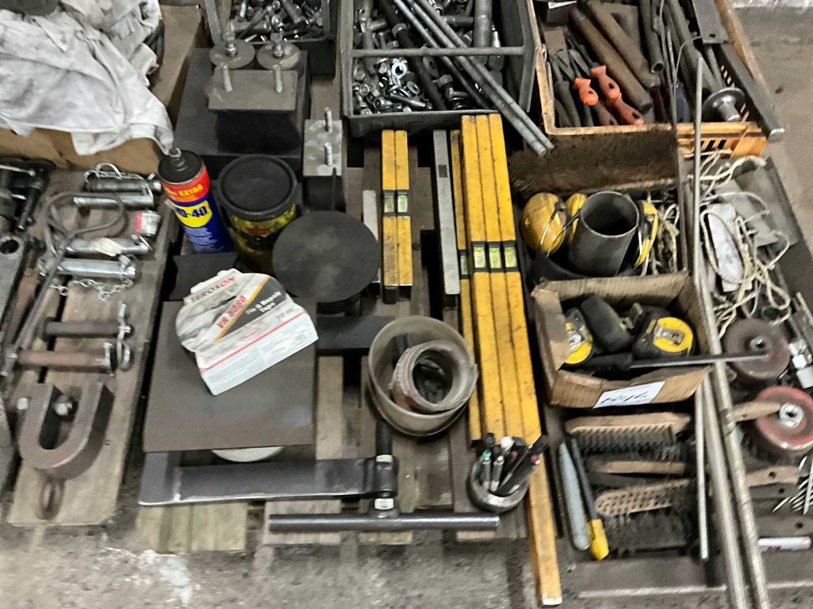 Op en met 2 pallets, onder andere lijmklemmen, potkrik, domme kracht, bevestigingsmaterialen, doeken, etc