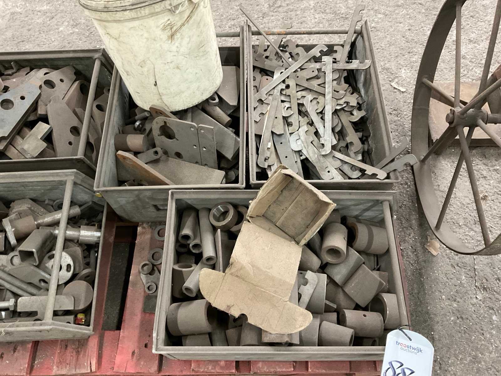Bestaande uit onder andere: plaatjes, strips, buisjes, trekstangen, bouten, moeren, op 4 pallets.