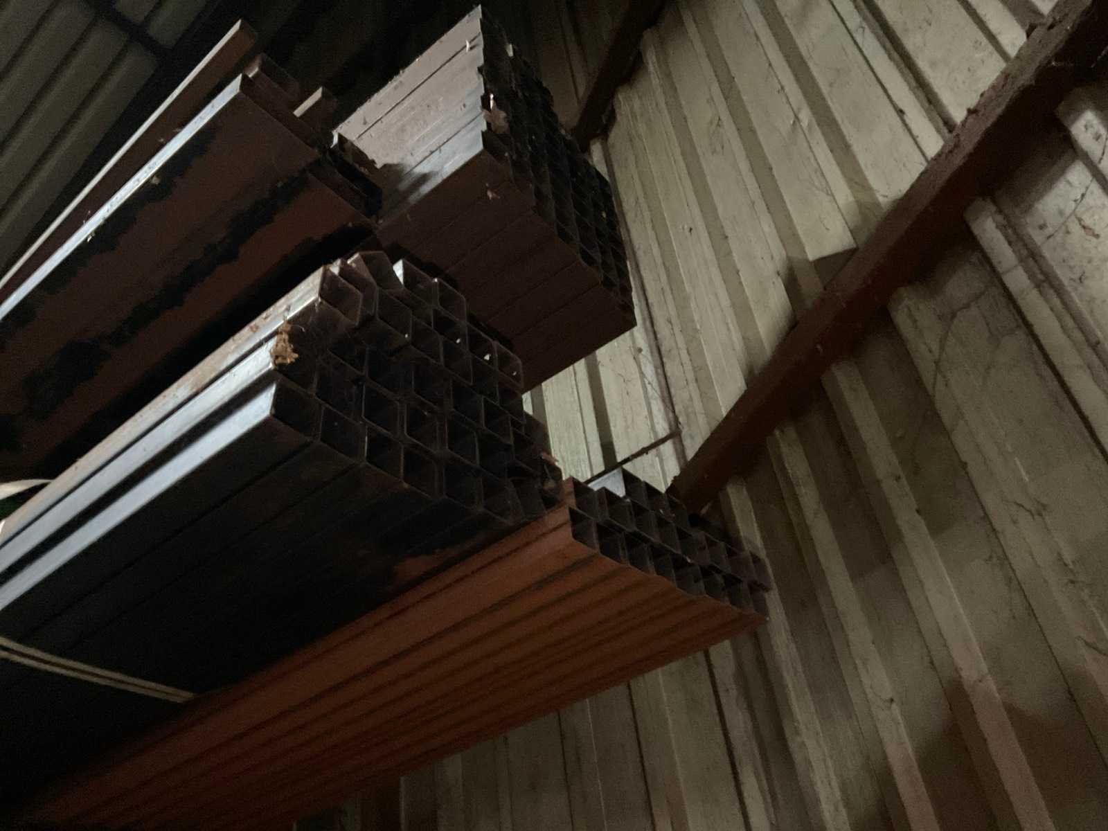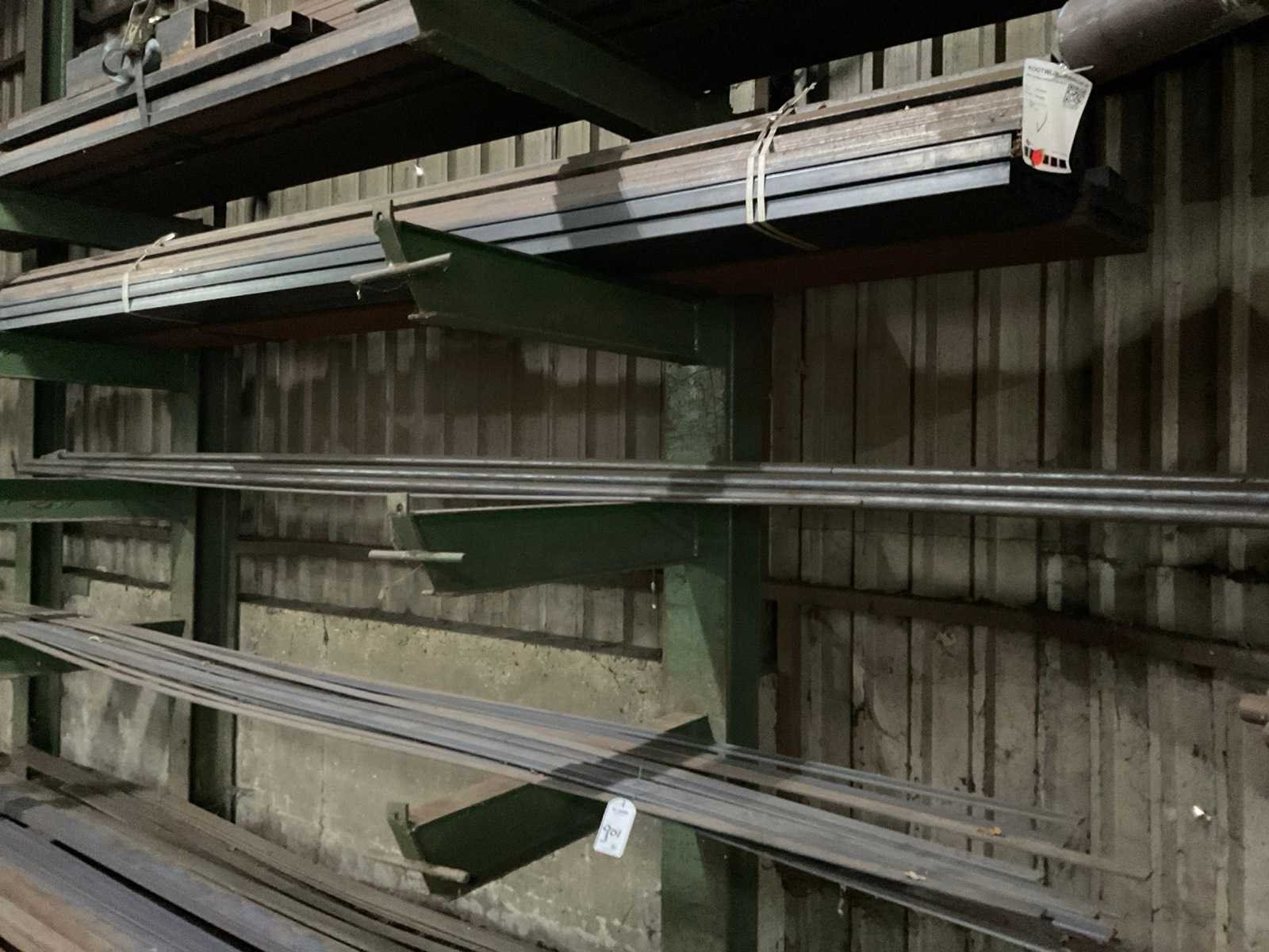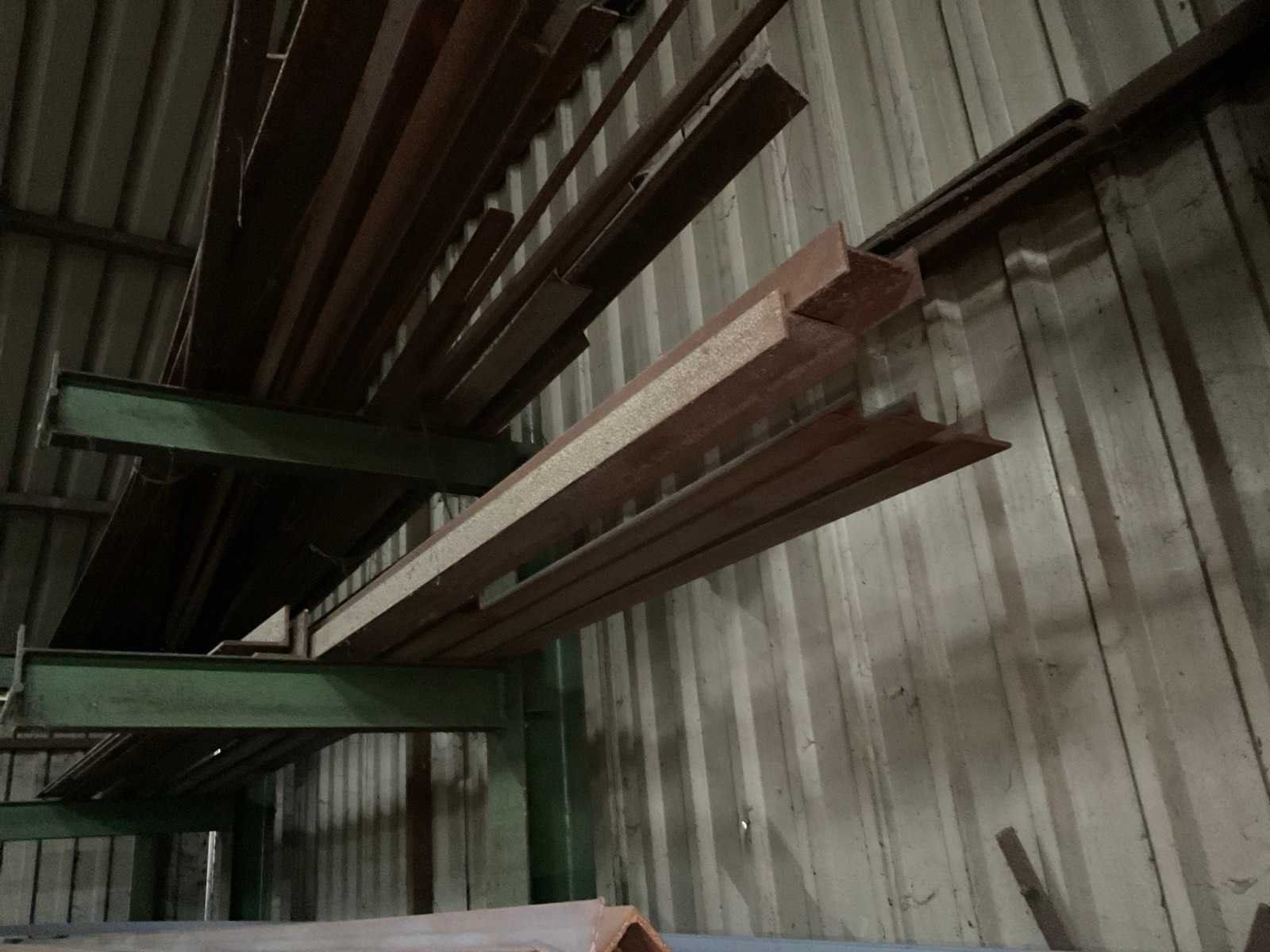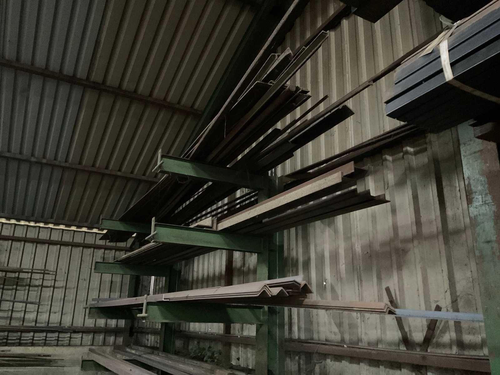 Betreft inhoud 2x 5 etages 1-zijdige draagarmstelling, waaronder strips, vierkant staal, buizen, hoekprofielen, H-profielen, etc