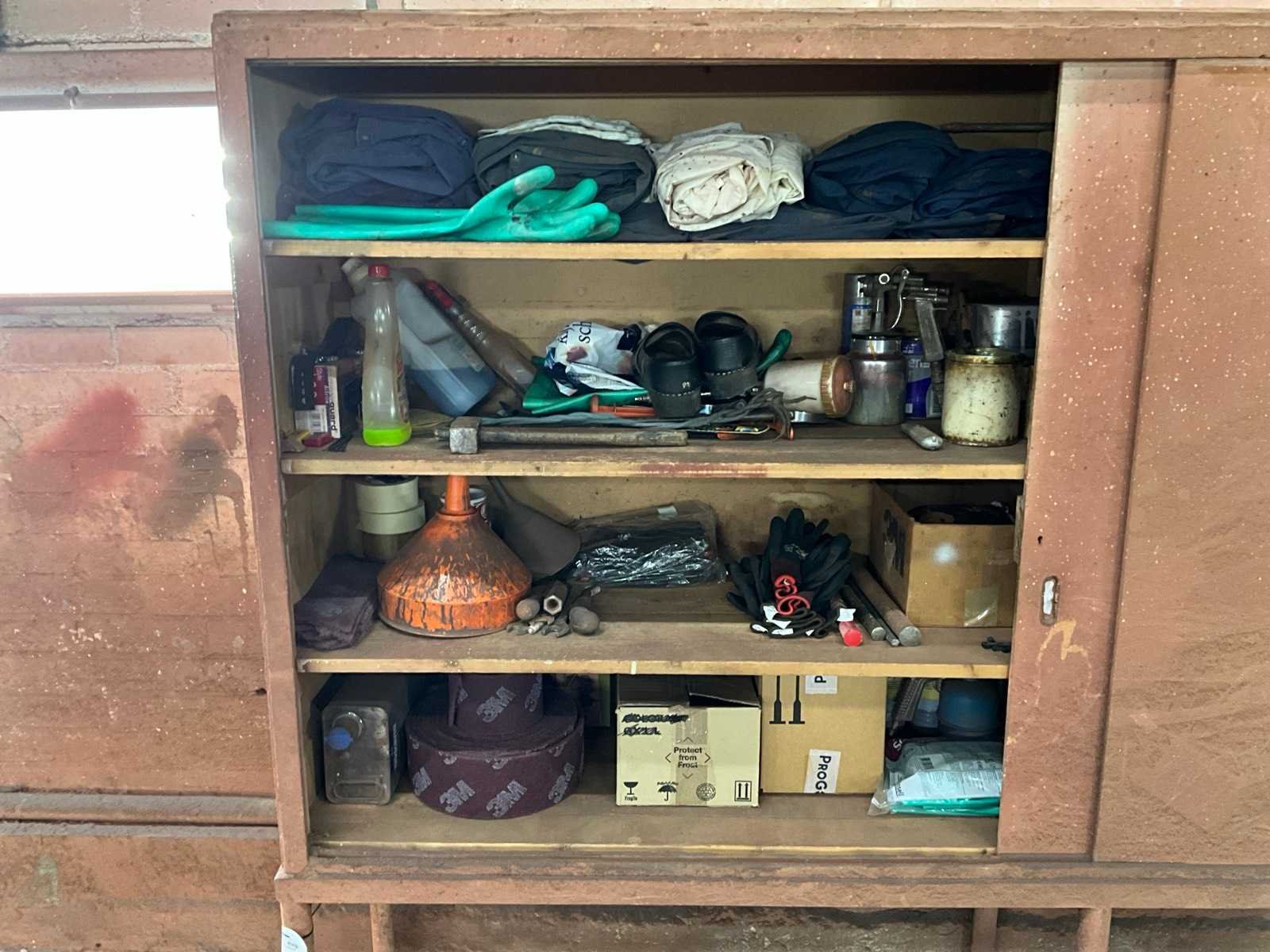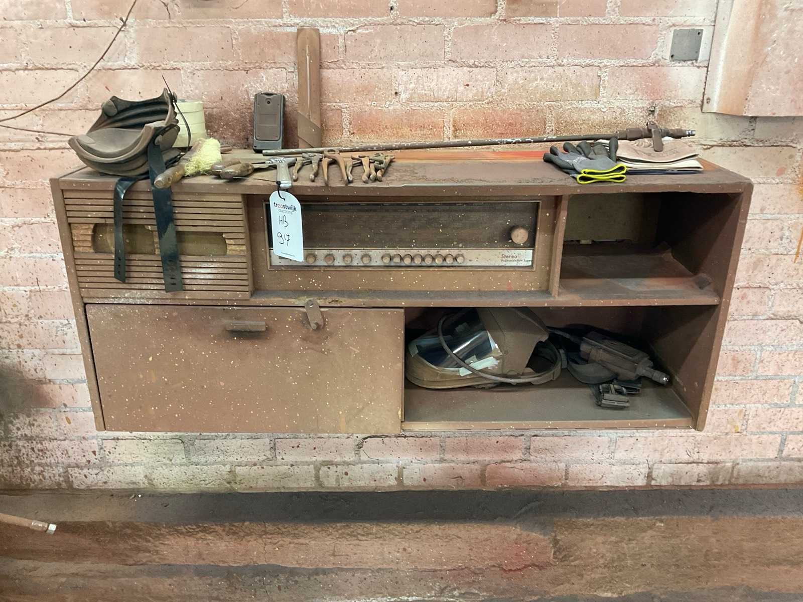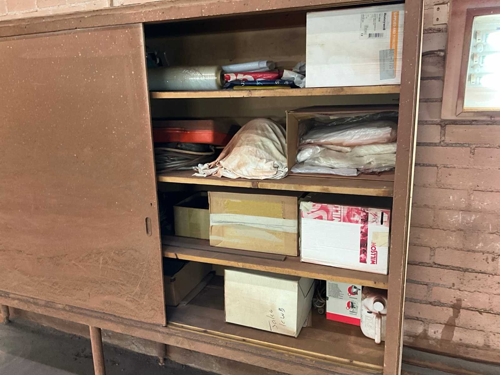 Bestaande uit wandkast met radio en gereedschappen, schuifdeur kast met inhoud, schuifdeur kast afmeting (lxbxh) 500x2400x1700 mm, ladekast met 4 lades, poetsdoeken