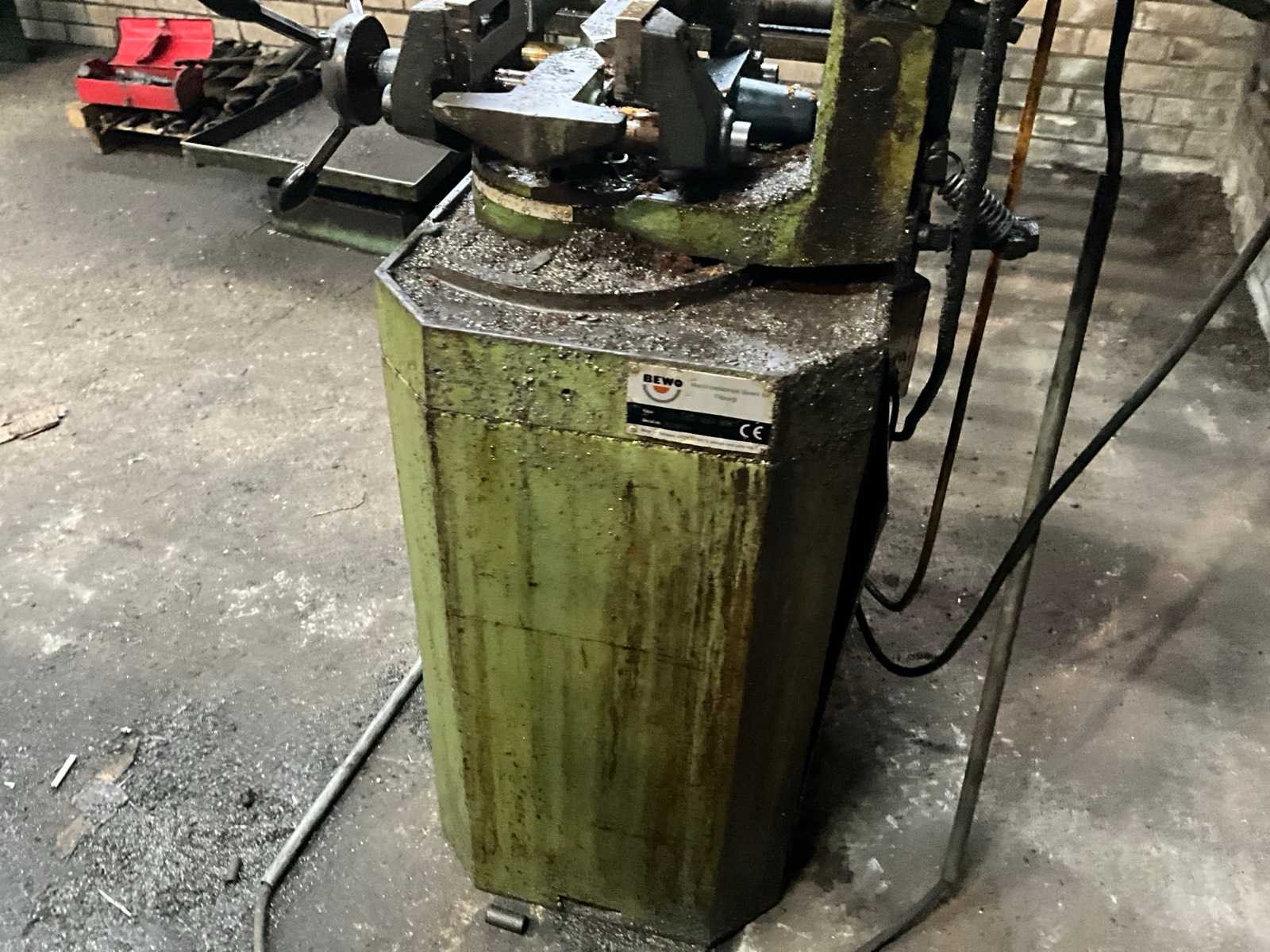 Voorzien van aanvoer rollenbaan (lengte 1250 mm), materiaalklem, Merk: Bewo Type: CP0 315LT Bouwjaar: 1998 Serienummer: 38019831 Aantal snelheden: 2 Koelmiddelpomp: true Aansluiting: 400V Afmeting l: 1000mm Afmeting h: 1700mm