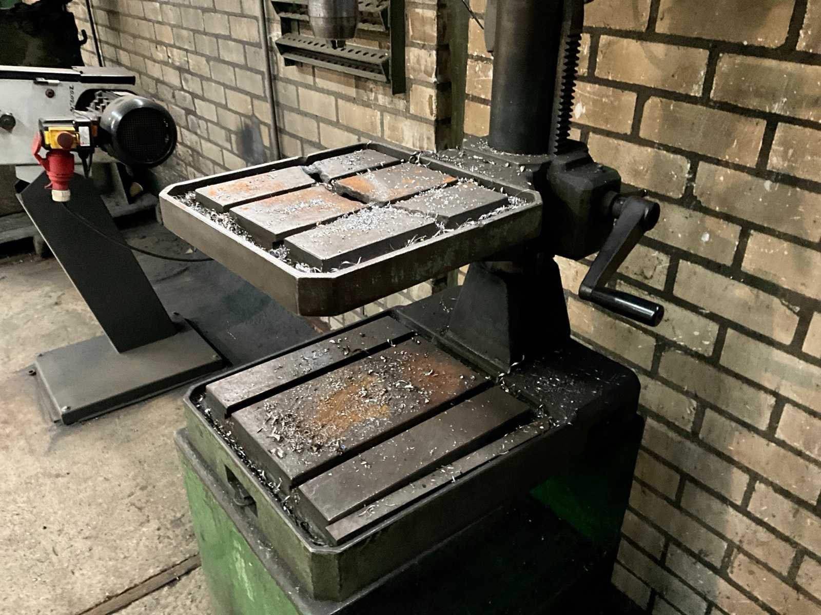 Voorzien van staal onderstel, t-gleuf opspantafel Merk: Bimak Type: 22FA Aantal snelheden: 10 Snelheid van n =: 135rpm Snelheid tot n =: 1900rpm Boordiepte: 100mm Uitlading: 250mm Tafel afmeting l: 325mm Tafel afmeting b: 325mm Aansluiting: 400V Afmeting l: 800mm Afmeting b: 500mm Afmeting h: 1800mm