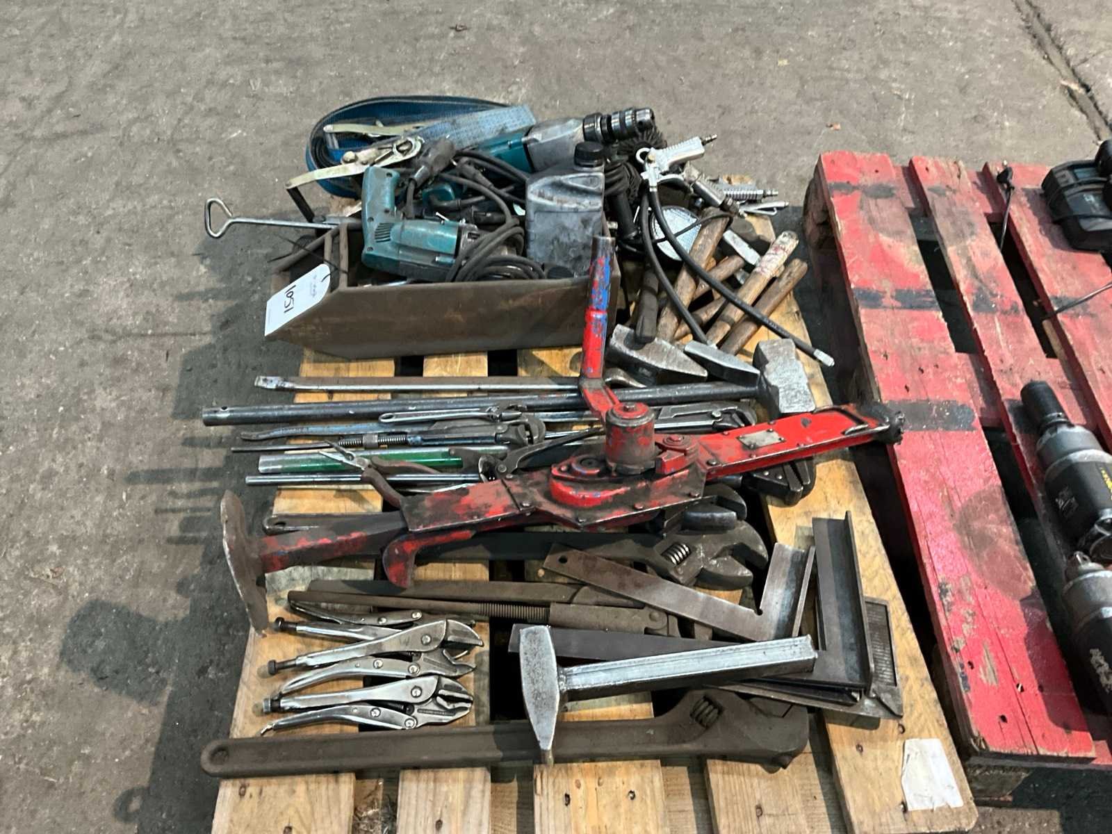 Op en met 1 pallet, onder andere hamers, tangen, winkelhaken, pneumatische gereedschappen, boormachines, etc
