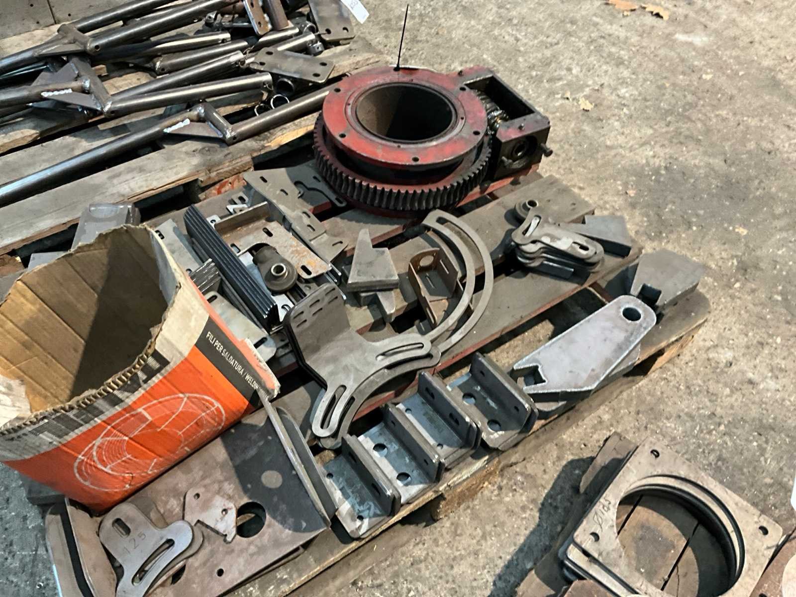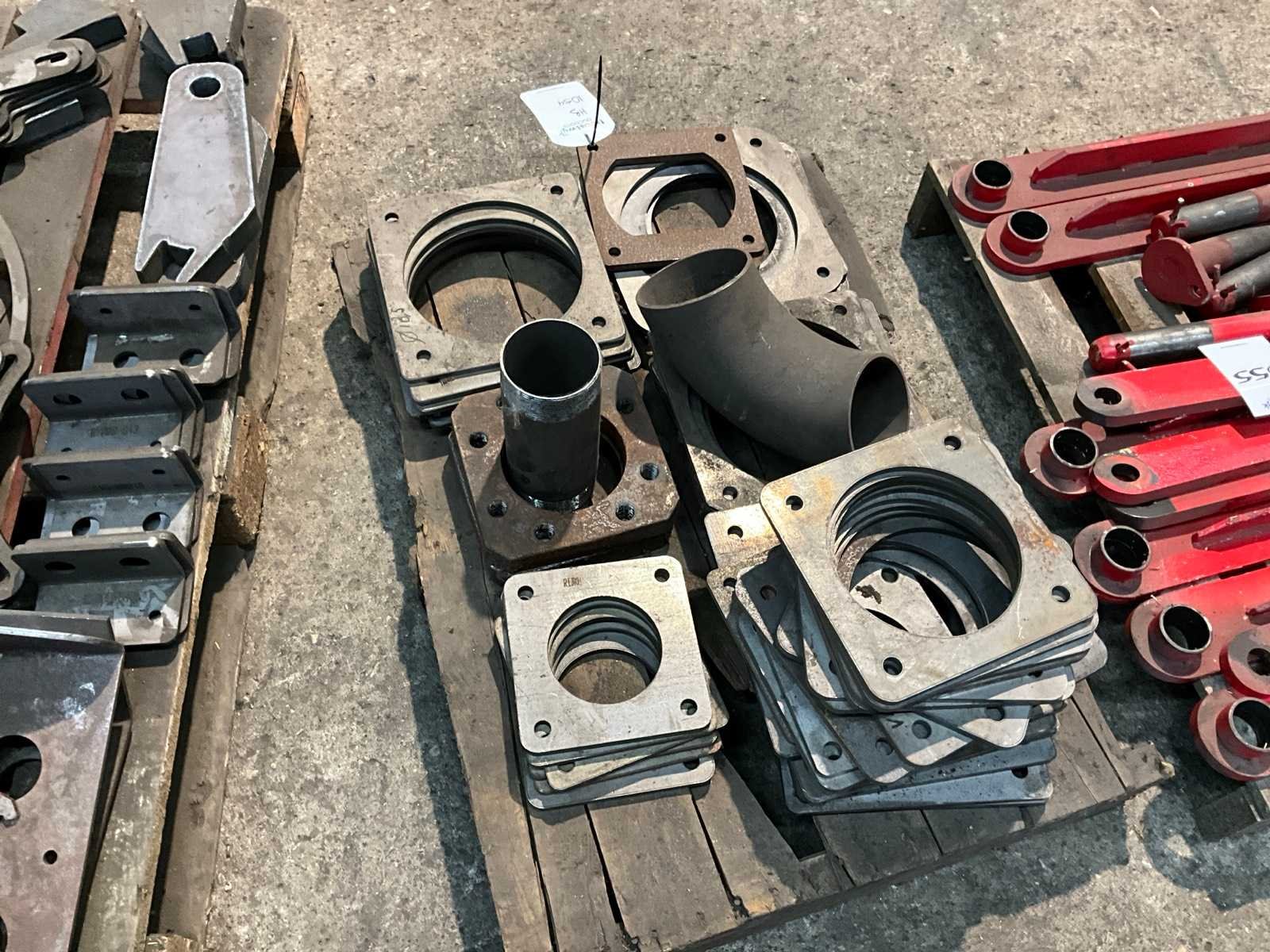 Onder andere strippen halffabrikaat, draaikrans, afsluiter flenzen, alles op en met 2 pallets,