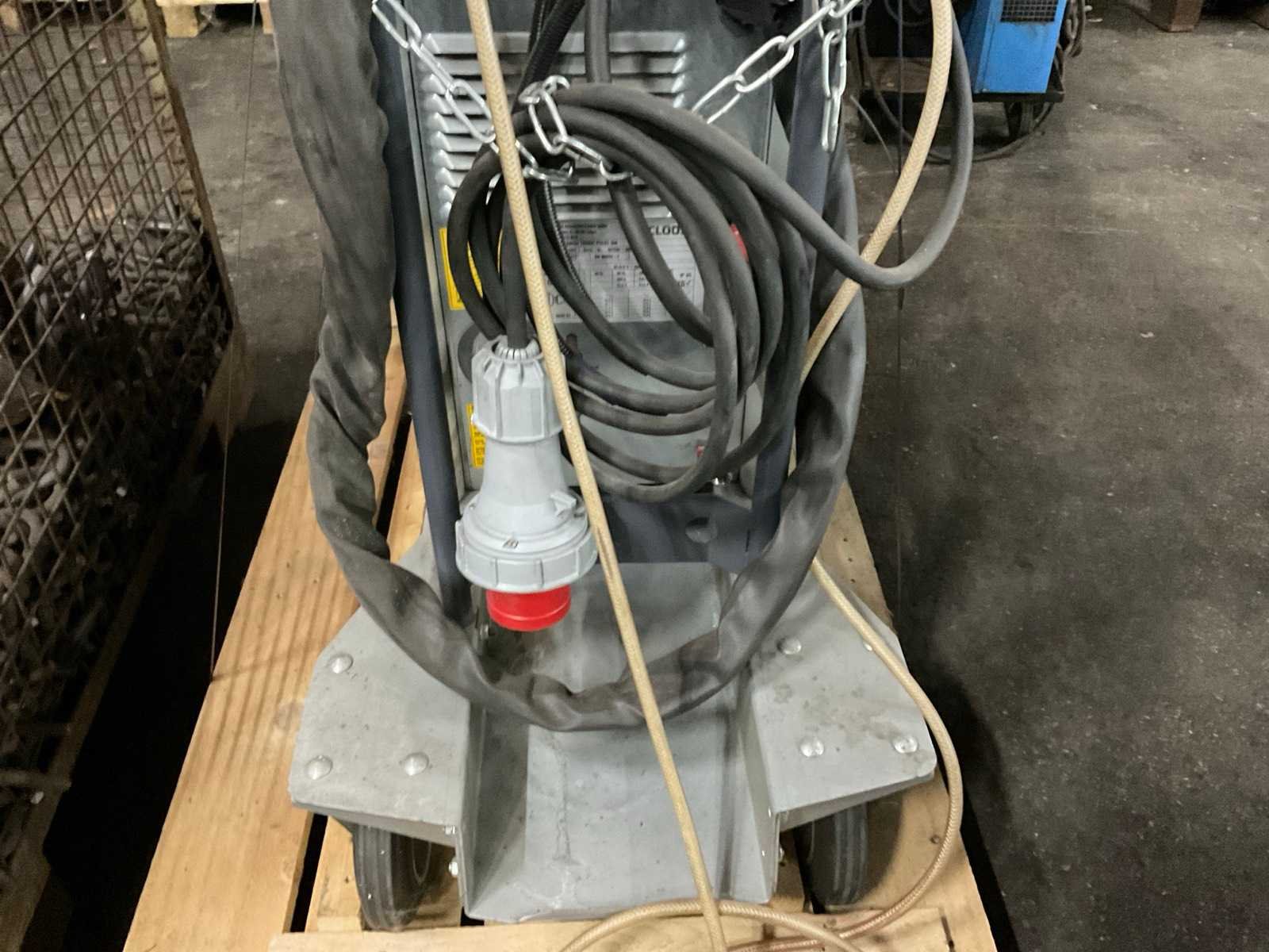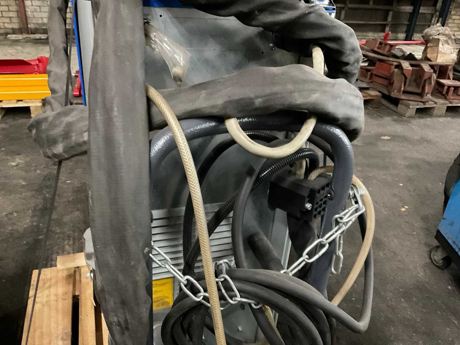Zonder toorts. Merk: Cloos Type: Qineo Tronic Pulse 350 Inschakelduur: 60% Max. lasvermogen: 350A Aansluiting: 400V Afmeting l: 1070mm Afmeting b: 450mm Afmeting h: 1350mm