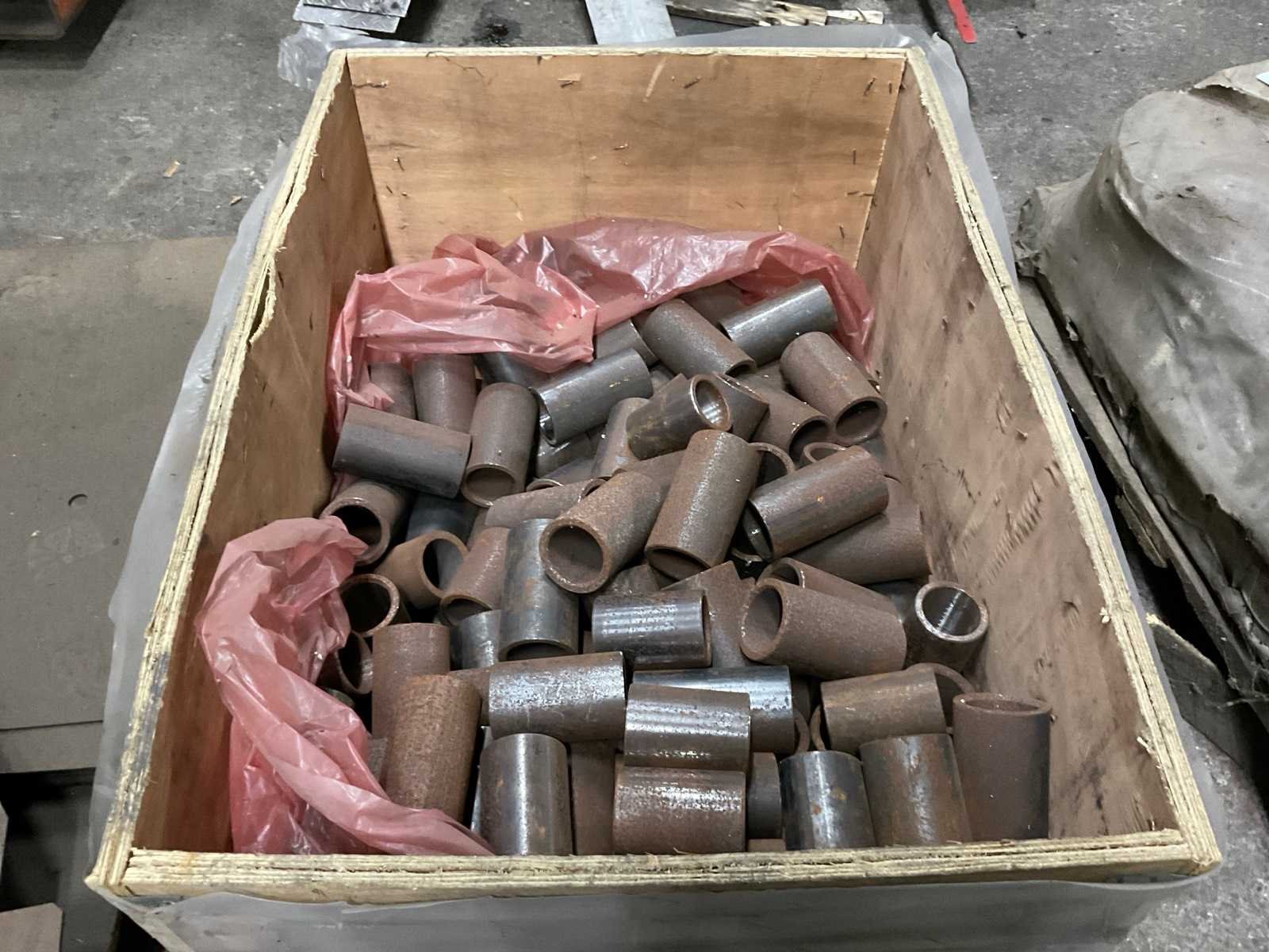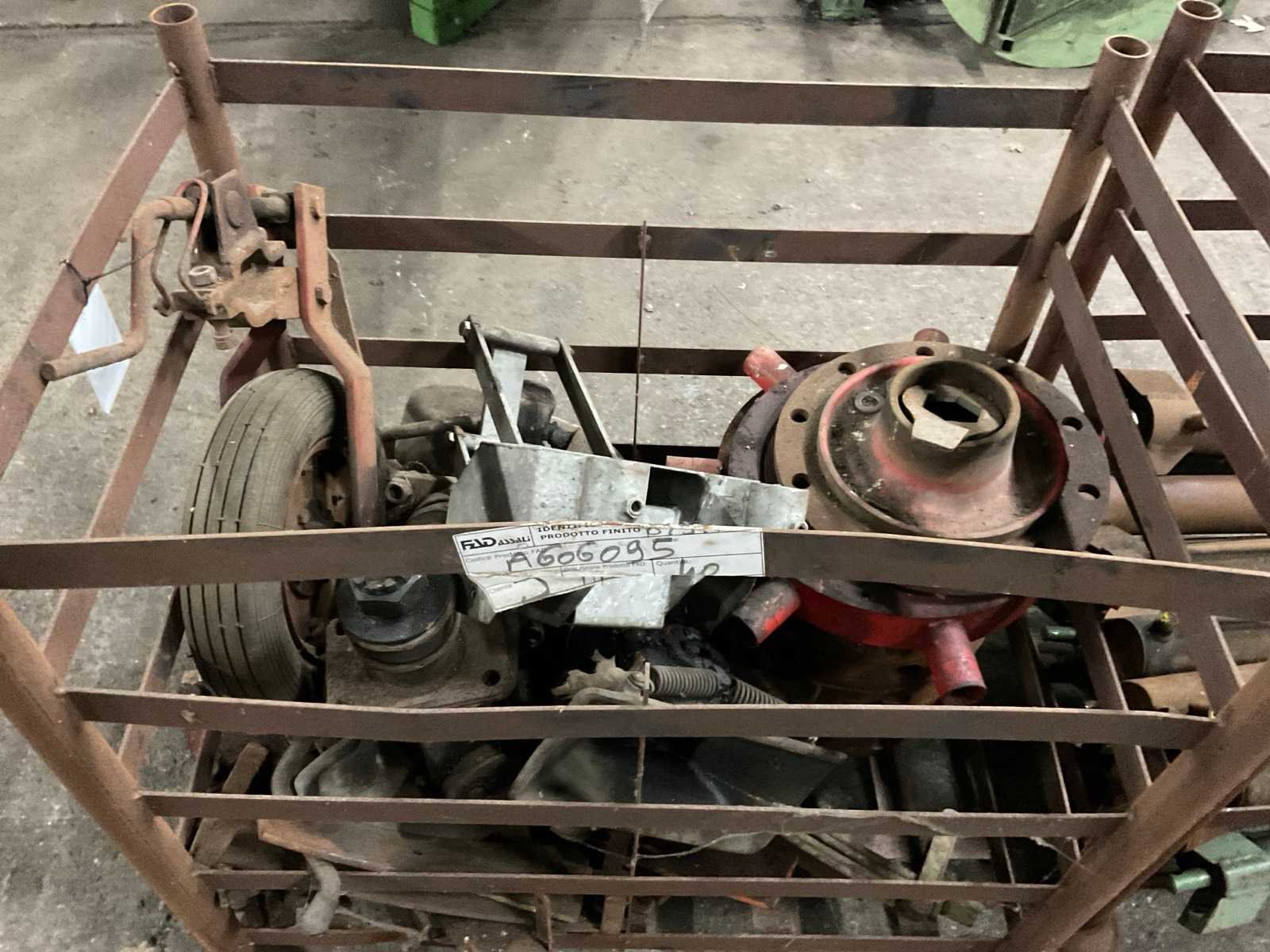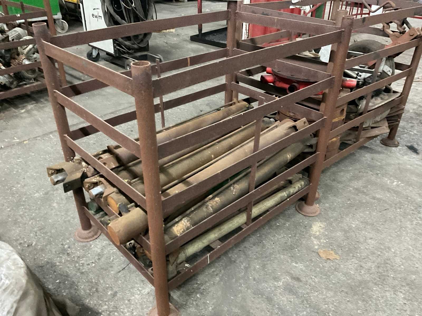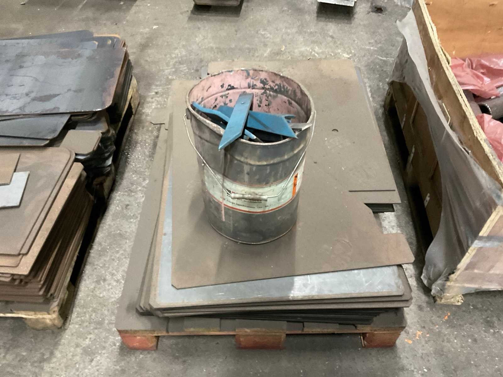 Bestaande uit: 4 pallets gesneden plaatwerk, 1 pallet buizen ø 80 mm buitenkant , 1 pallet schijven ø 46 cm, box met cilinders lengte 100 cm, box overige machinedelen.