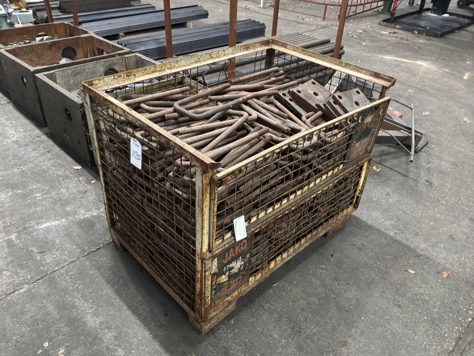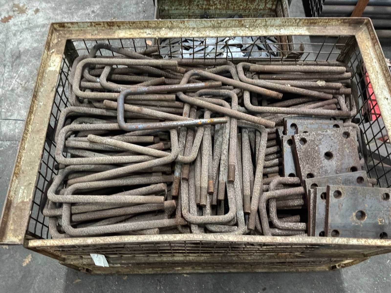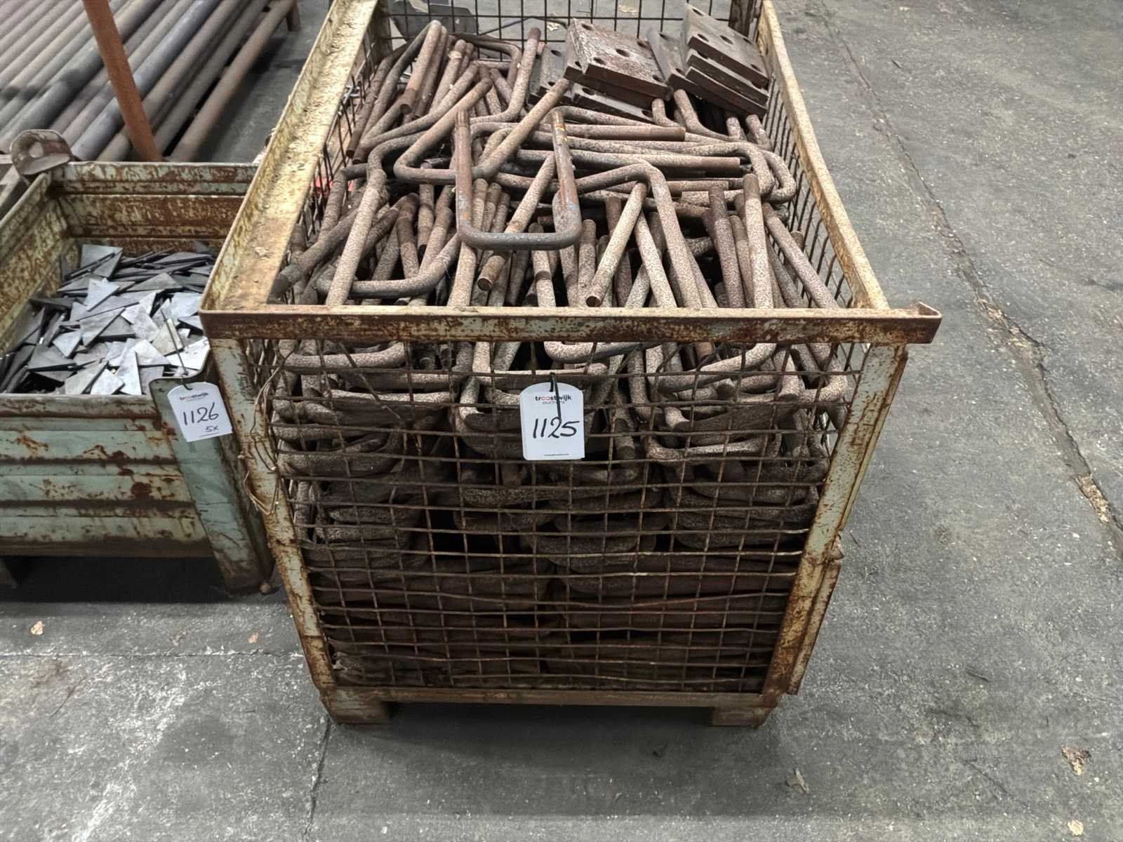 As bevestiging U beugels L x B 390mm x 180mm ø22mm, Palletkrat L x B x H 1240 x 850 x 950mm, in en inclusief gitterbox.