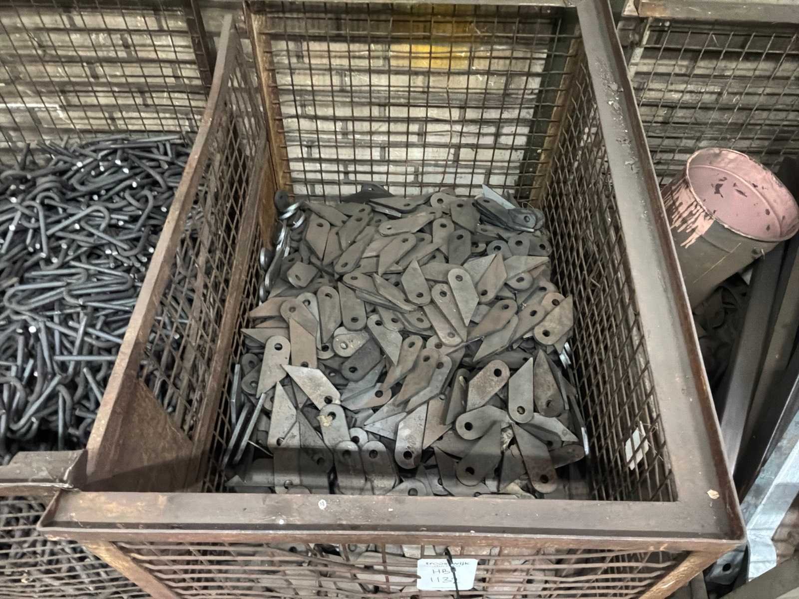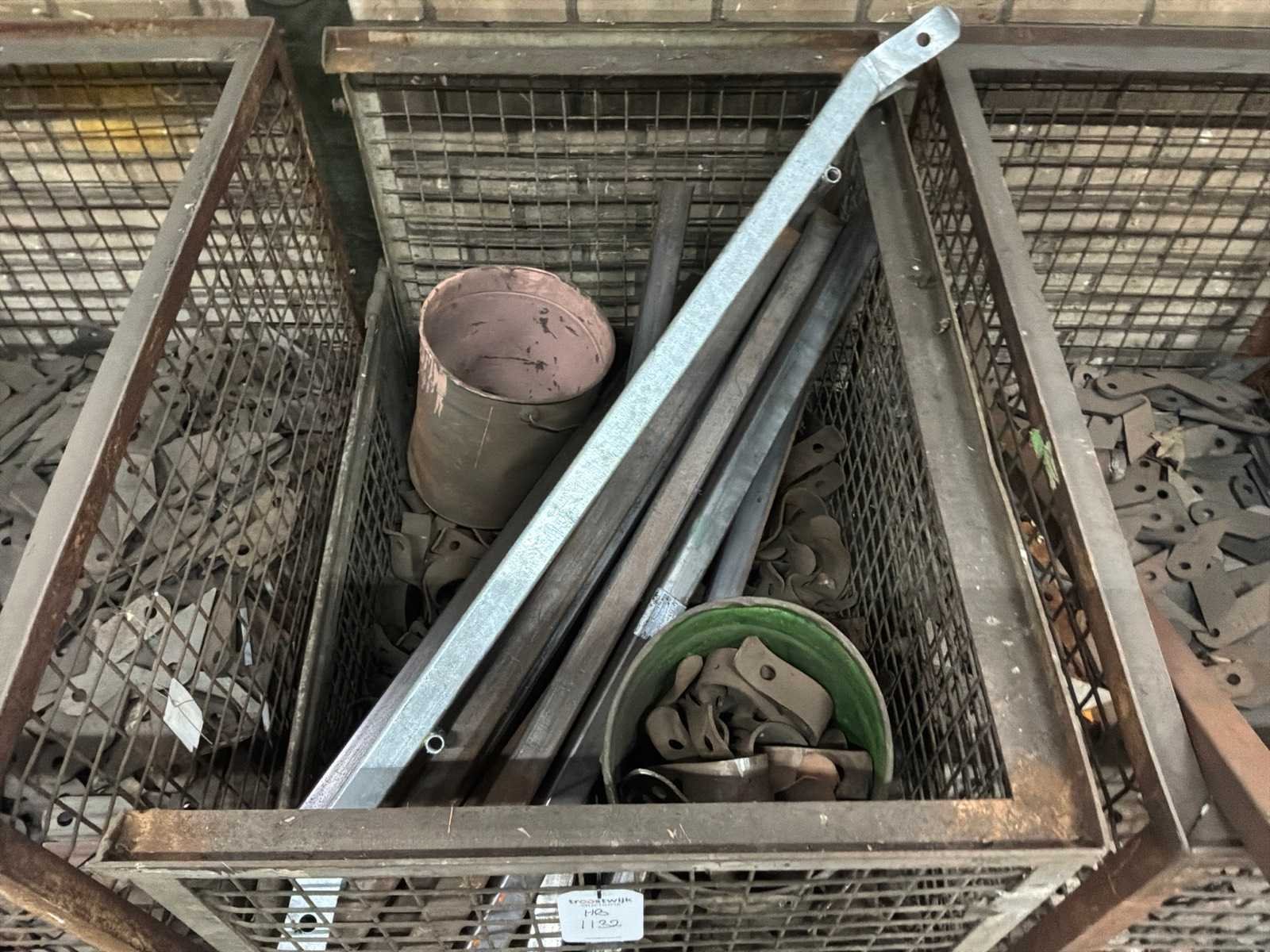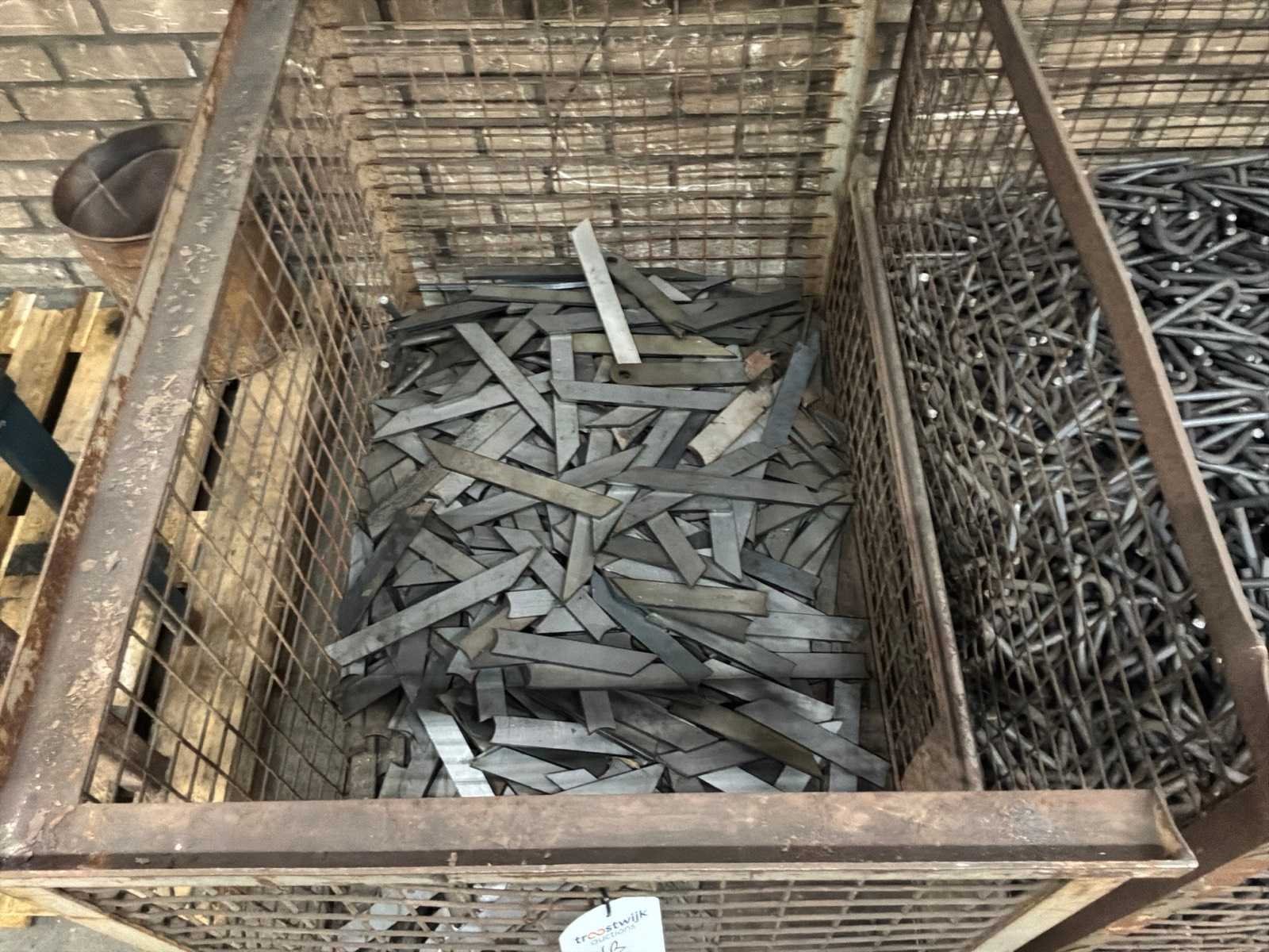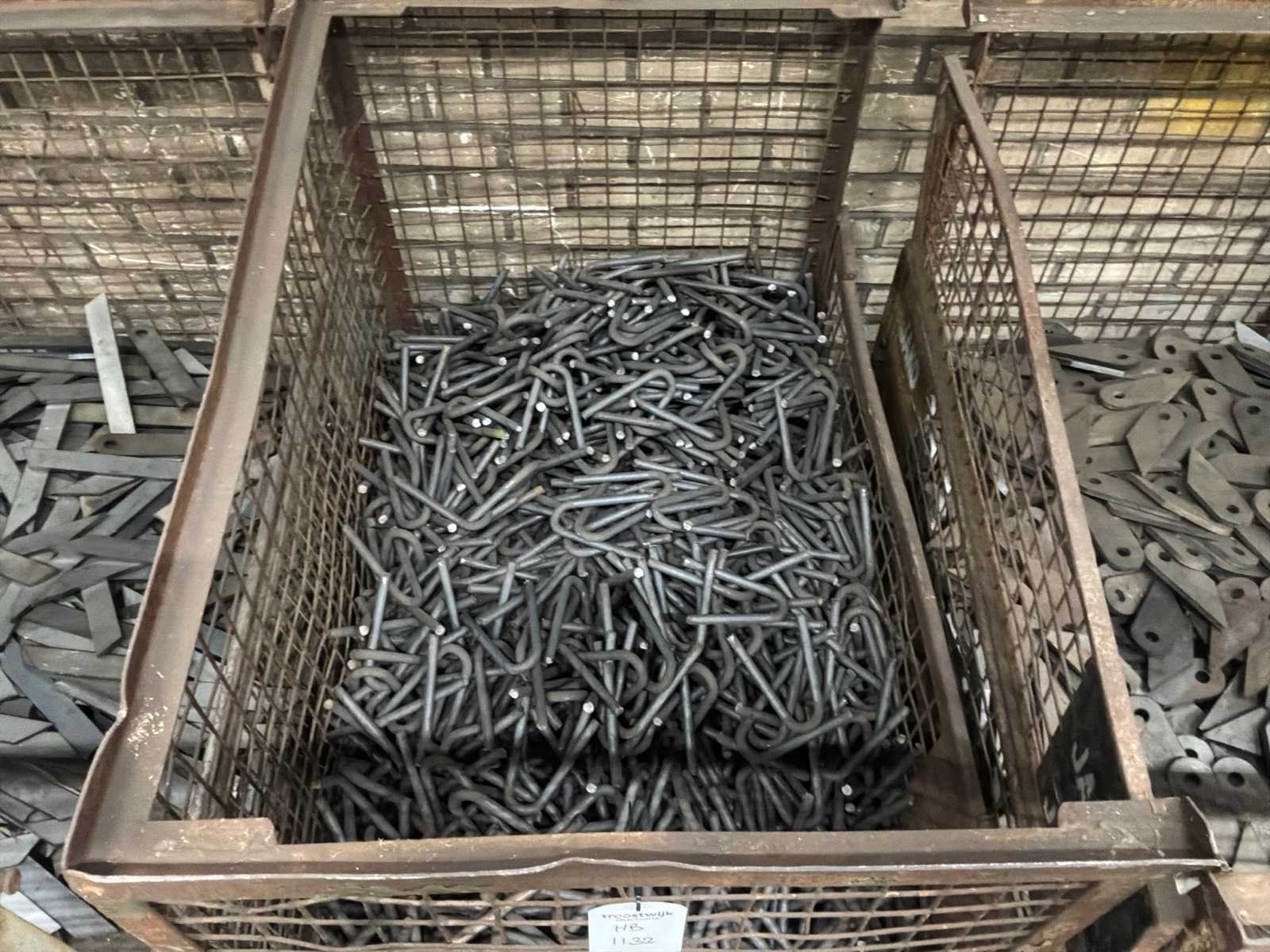 Partij halffabricaten waaronder aanlasdelen in en inclusief 5x gitterbox, 1x stapelbak, op en inclusief 3x pallet.