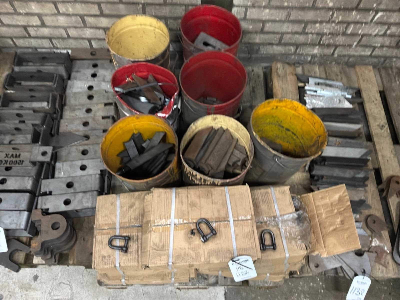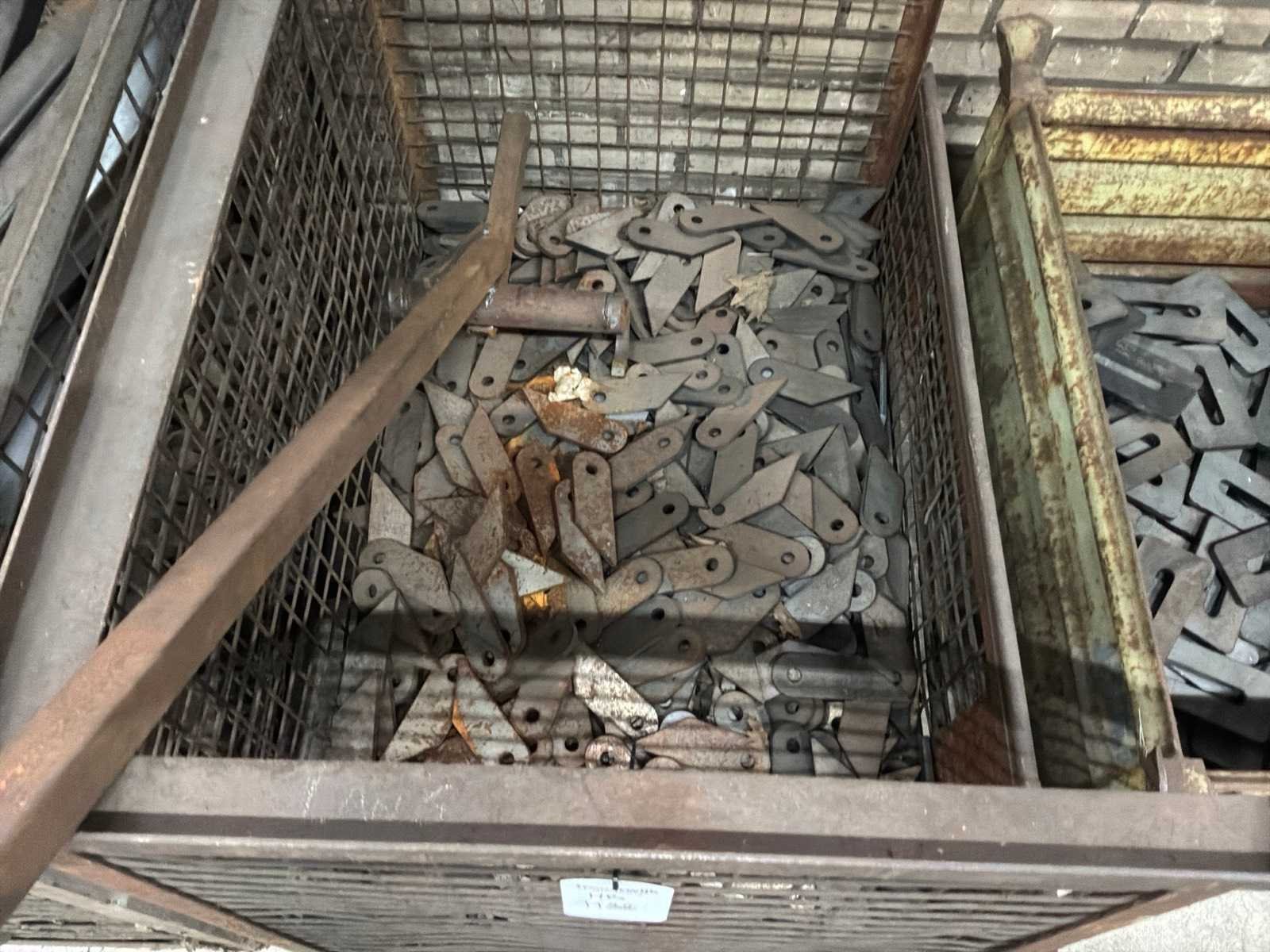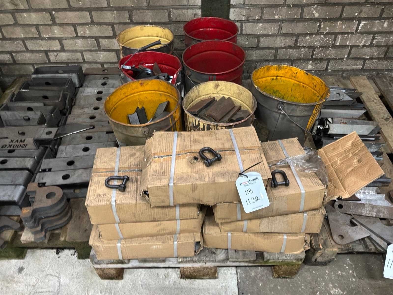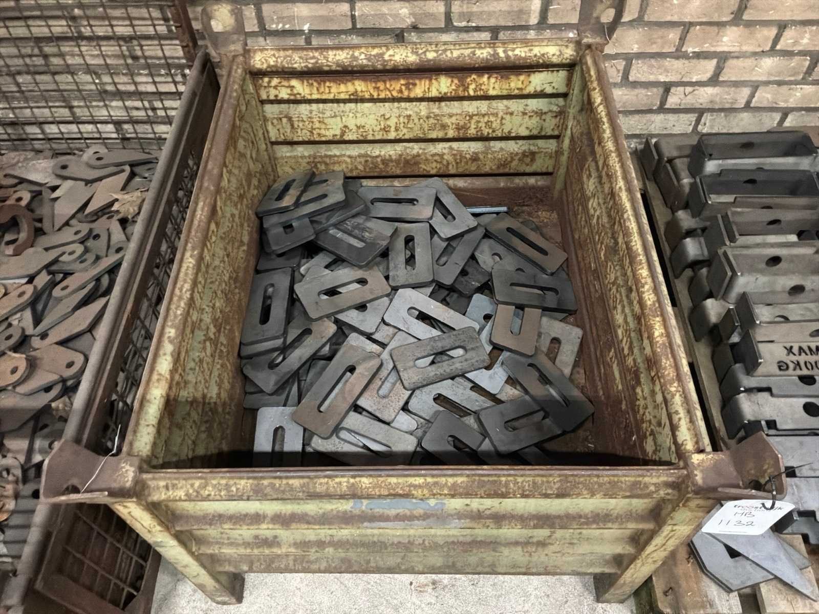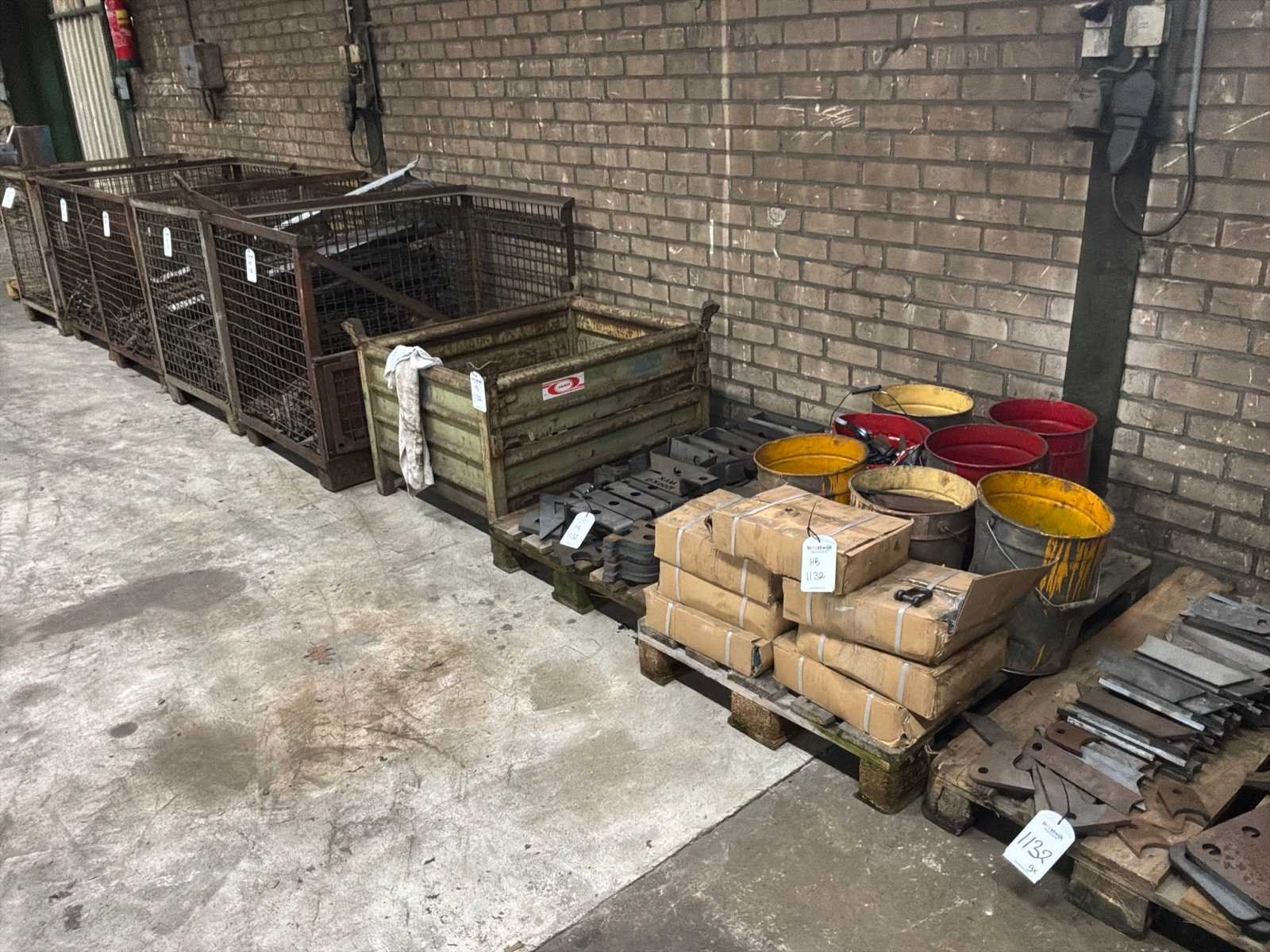 Partij halffabricaten waaronder aanlasdelen in en inclusief 5x gitterbox, 1x stapelbak, op en inclusief 3x pallet.