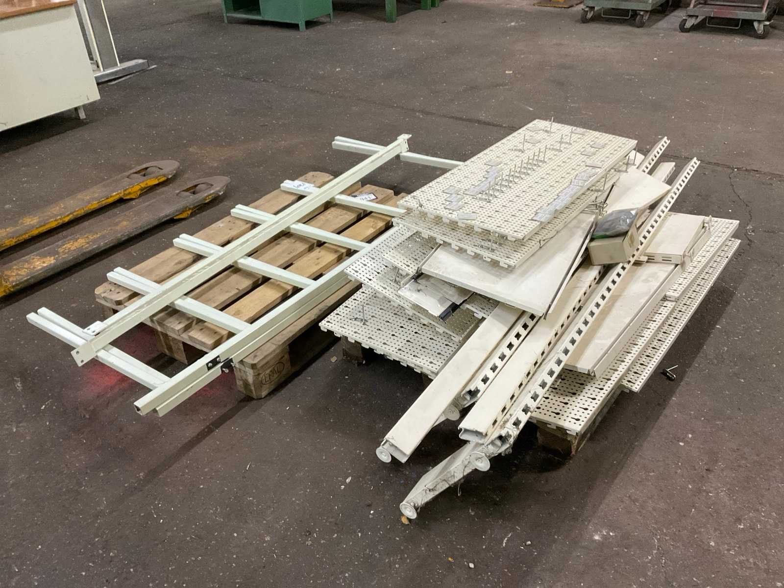 Gedemonteerd, bestaande uit: wandpanelen, leggers, staanders.