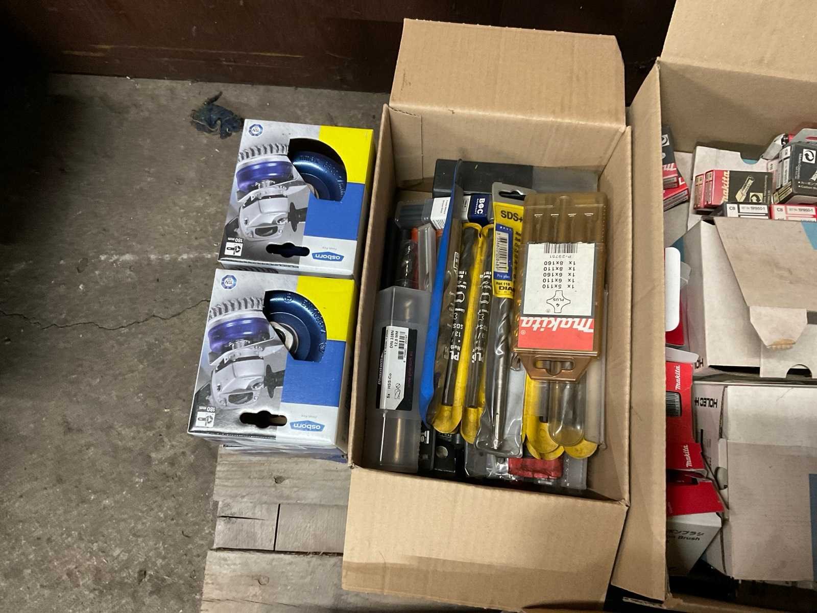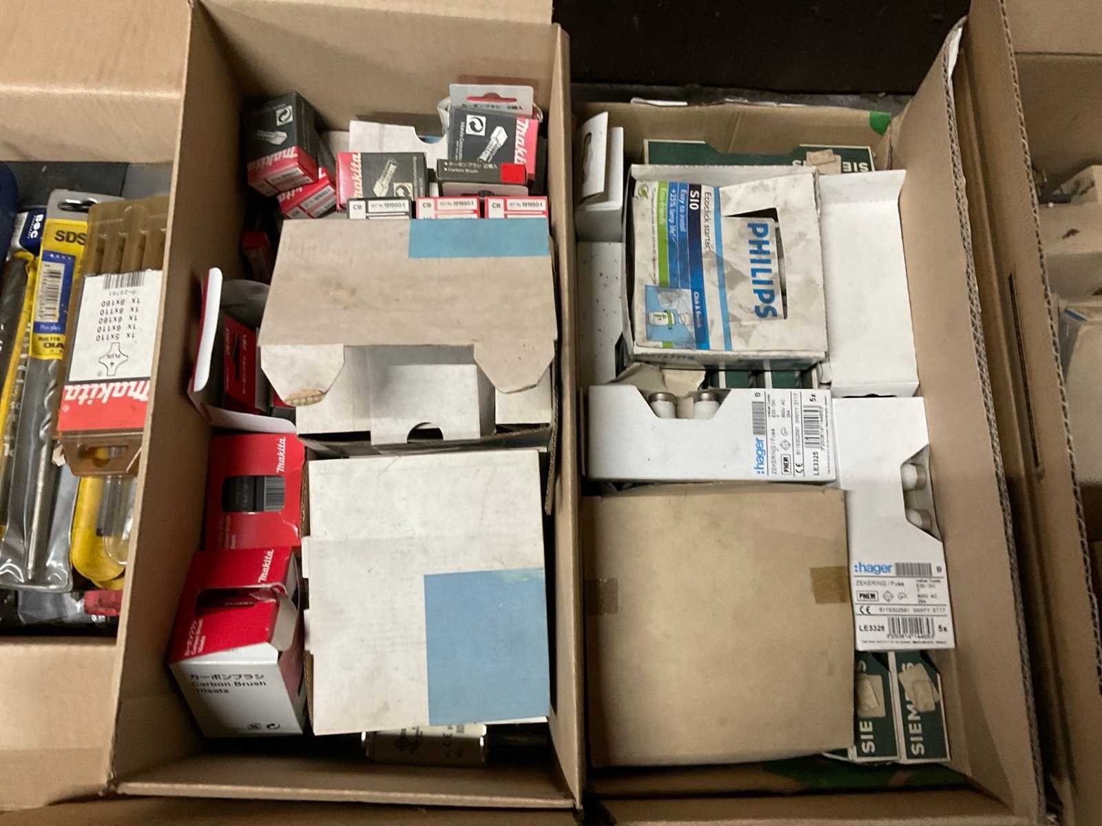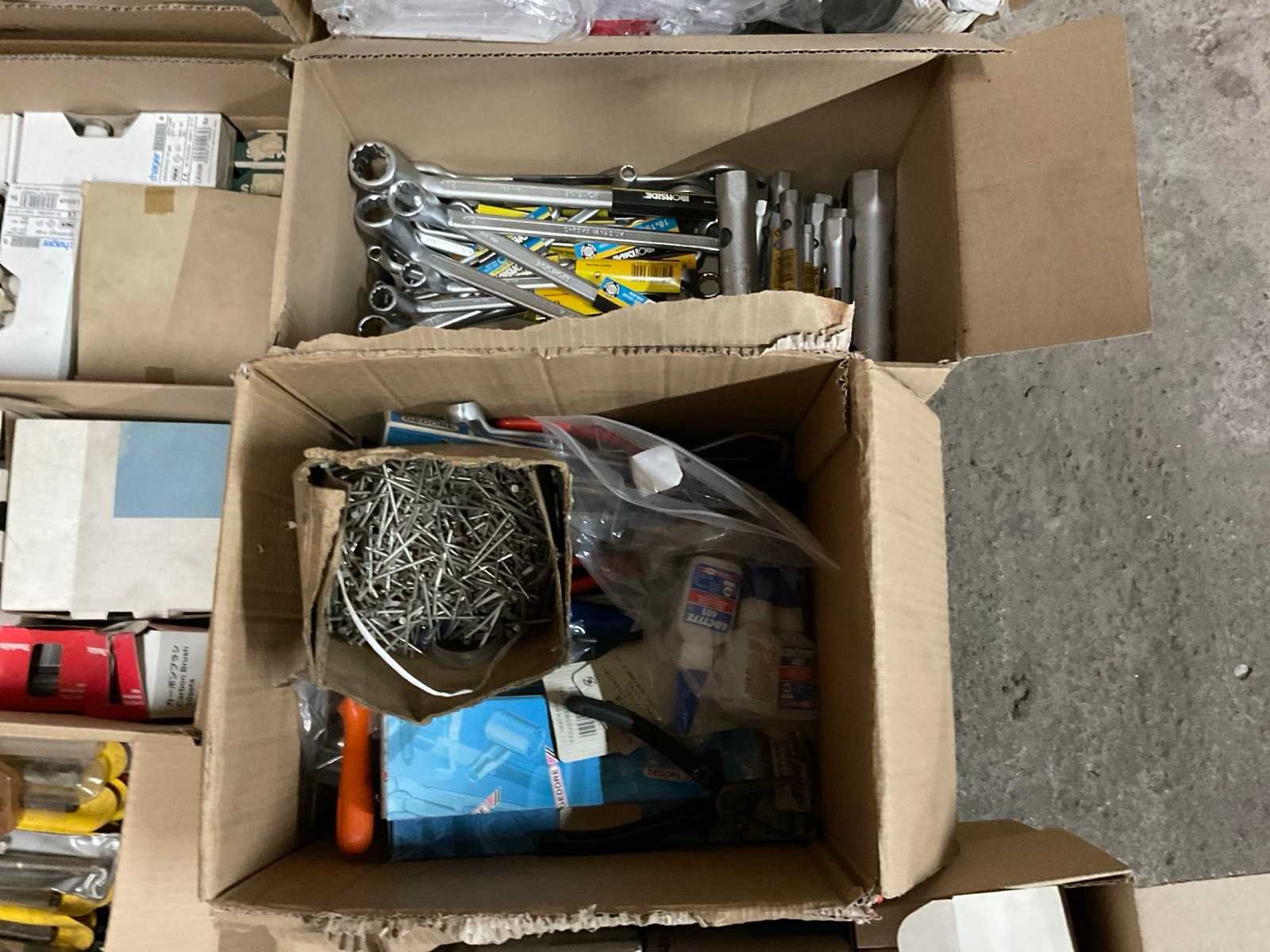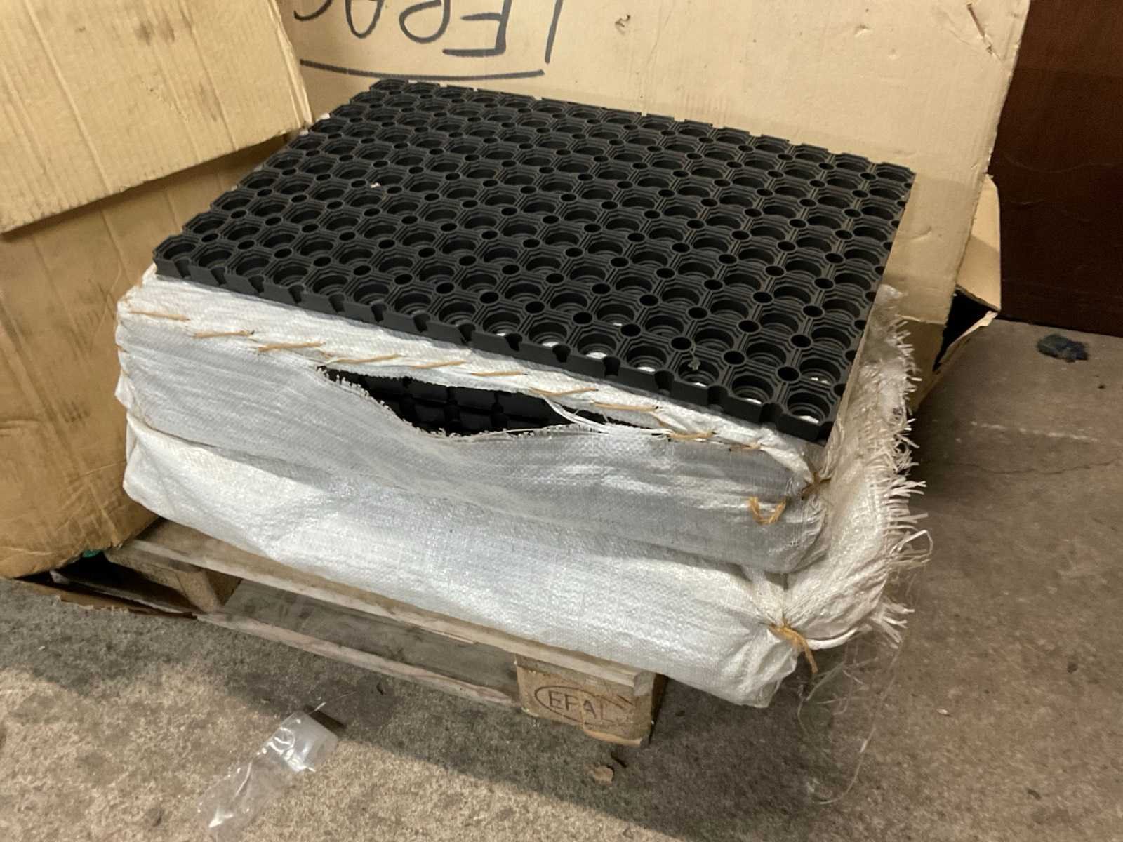 Op 3 pallets. Bestaande uit: Onder andere: 1e: Gereedschap 2e: Safety glas 3e: Kantoorartikelen 4e: Partij matten 5e: Afdek net 6e: 5 aanhanger verlichting 7e: Dopjes 8e: Mappen