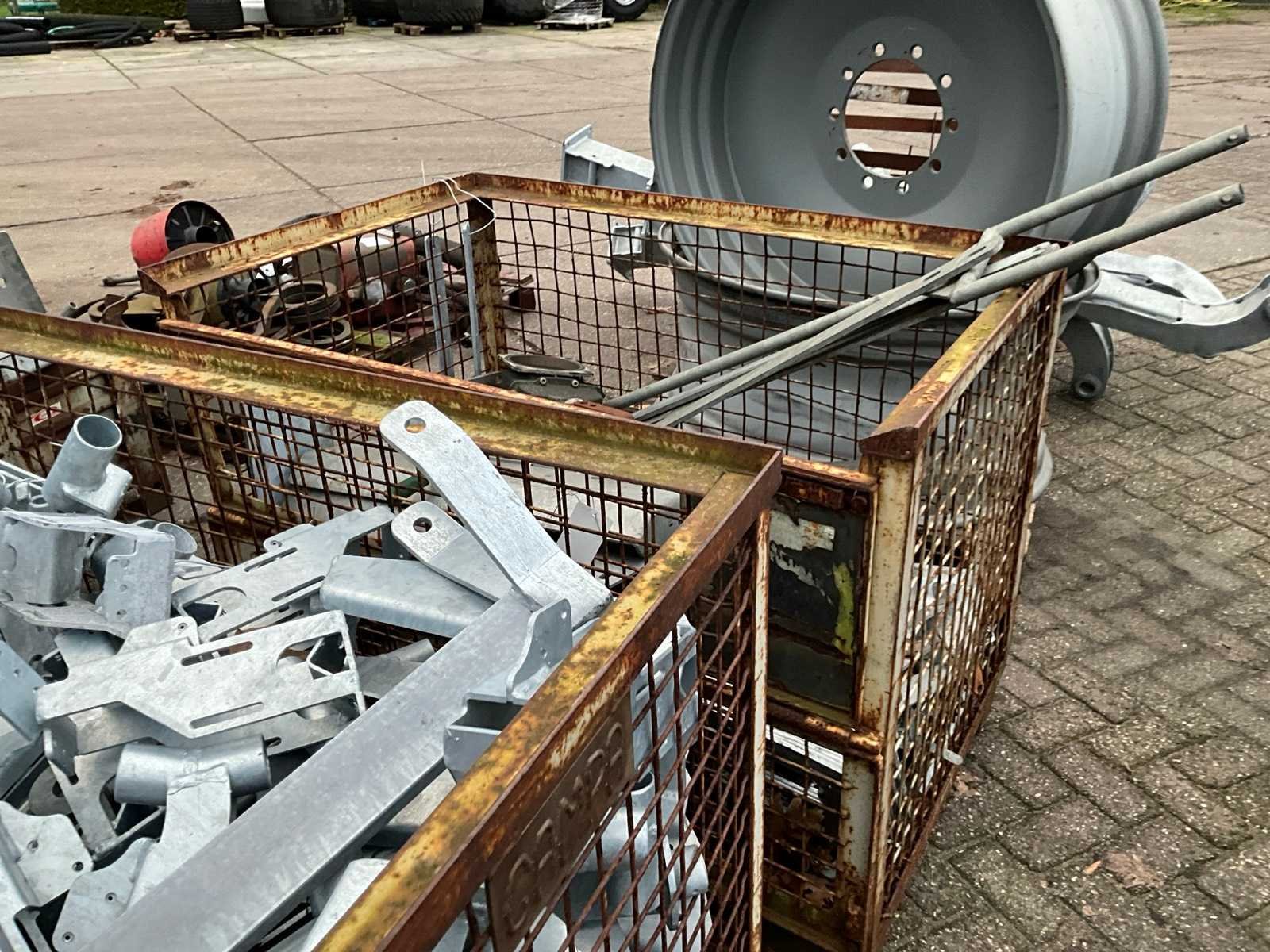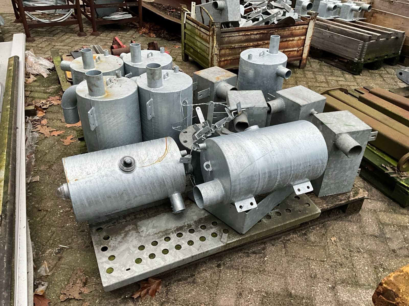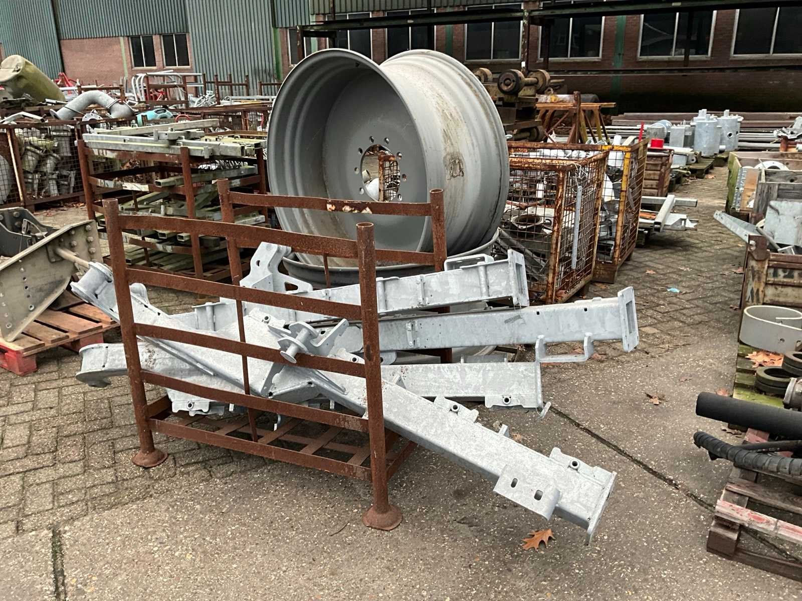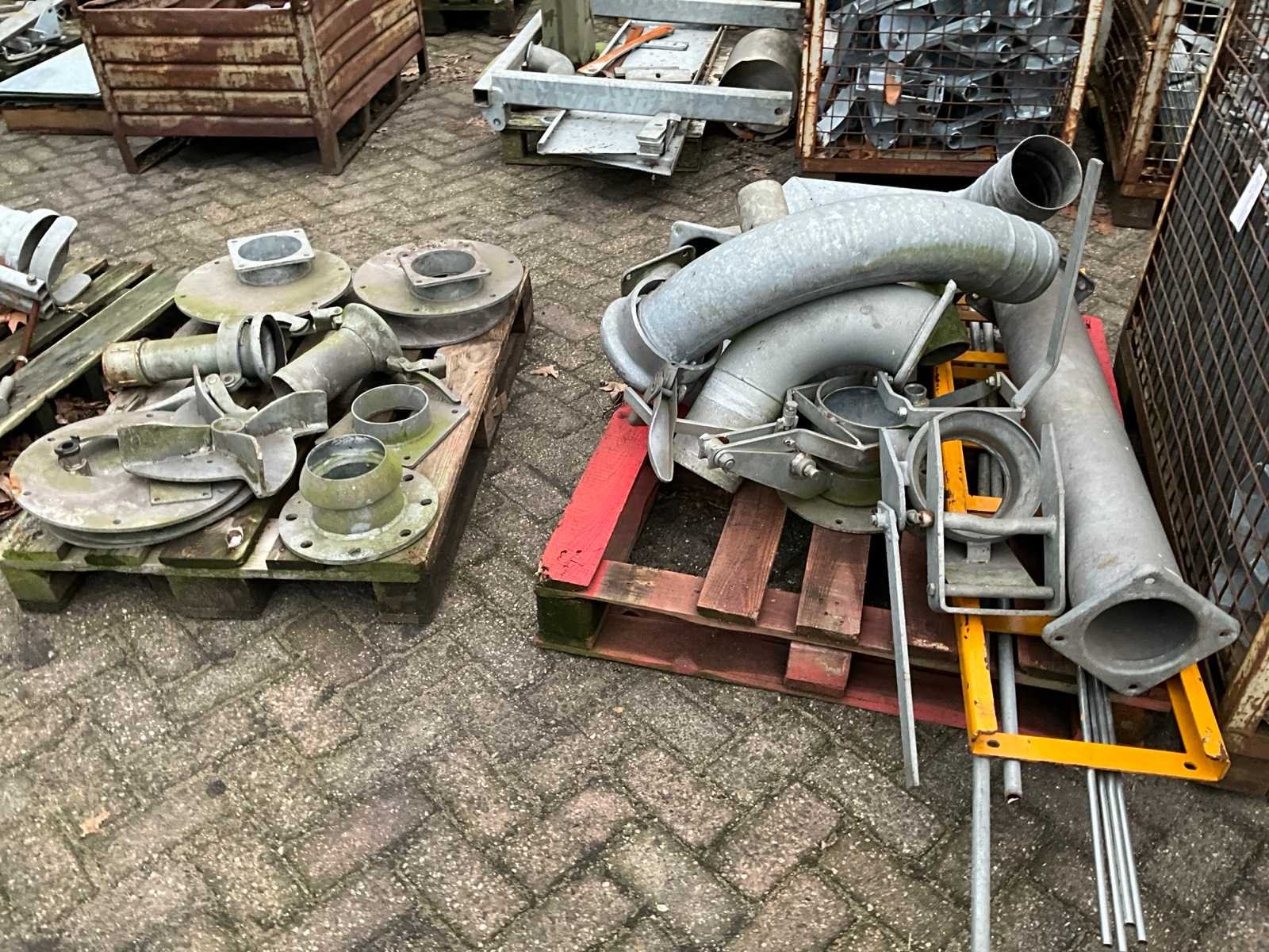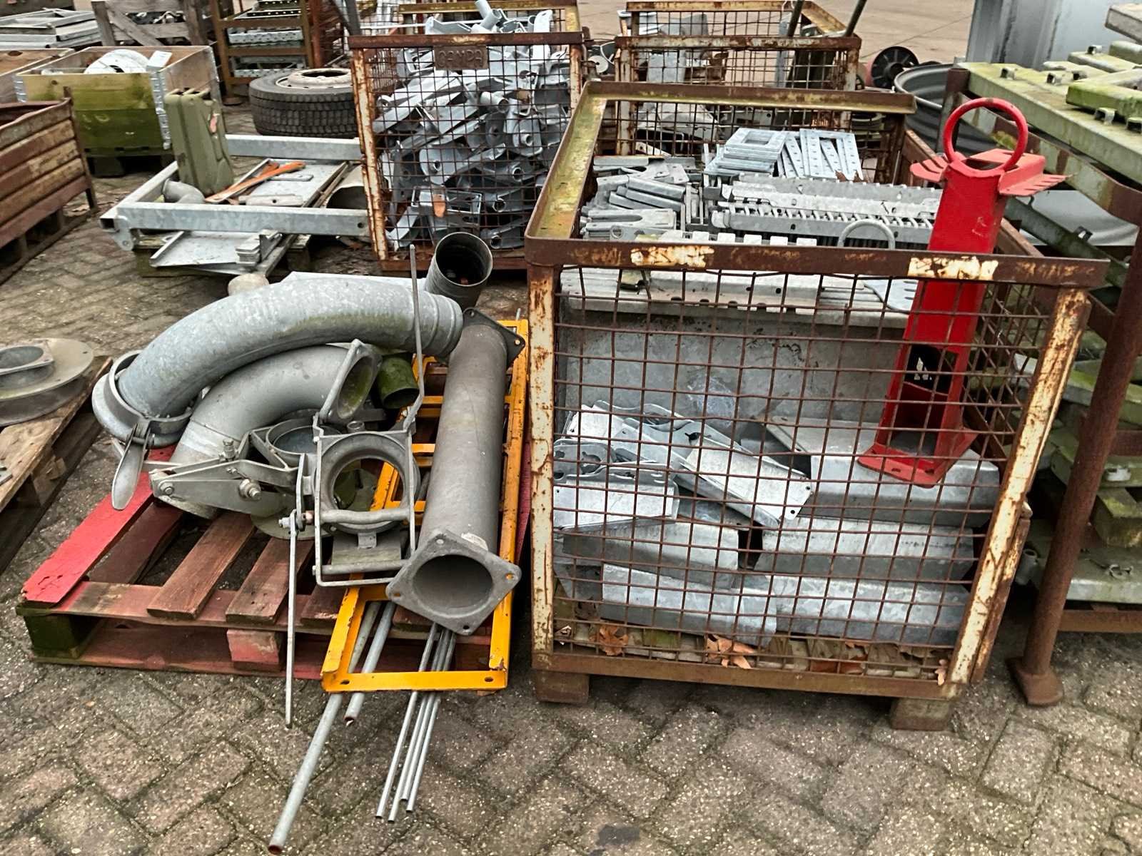 Divers op 20 pallet plaatsen, onder andere slanghouders, bochten, onderdelen, frame delen, jukken en of pallets inbegrepen