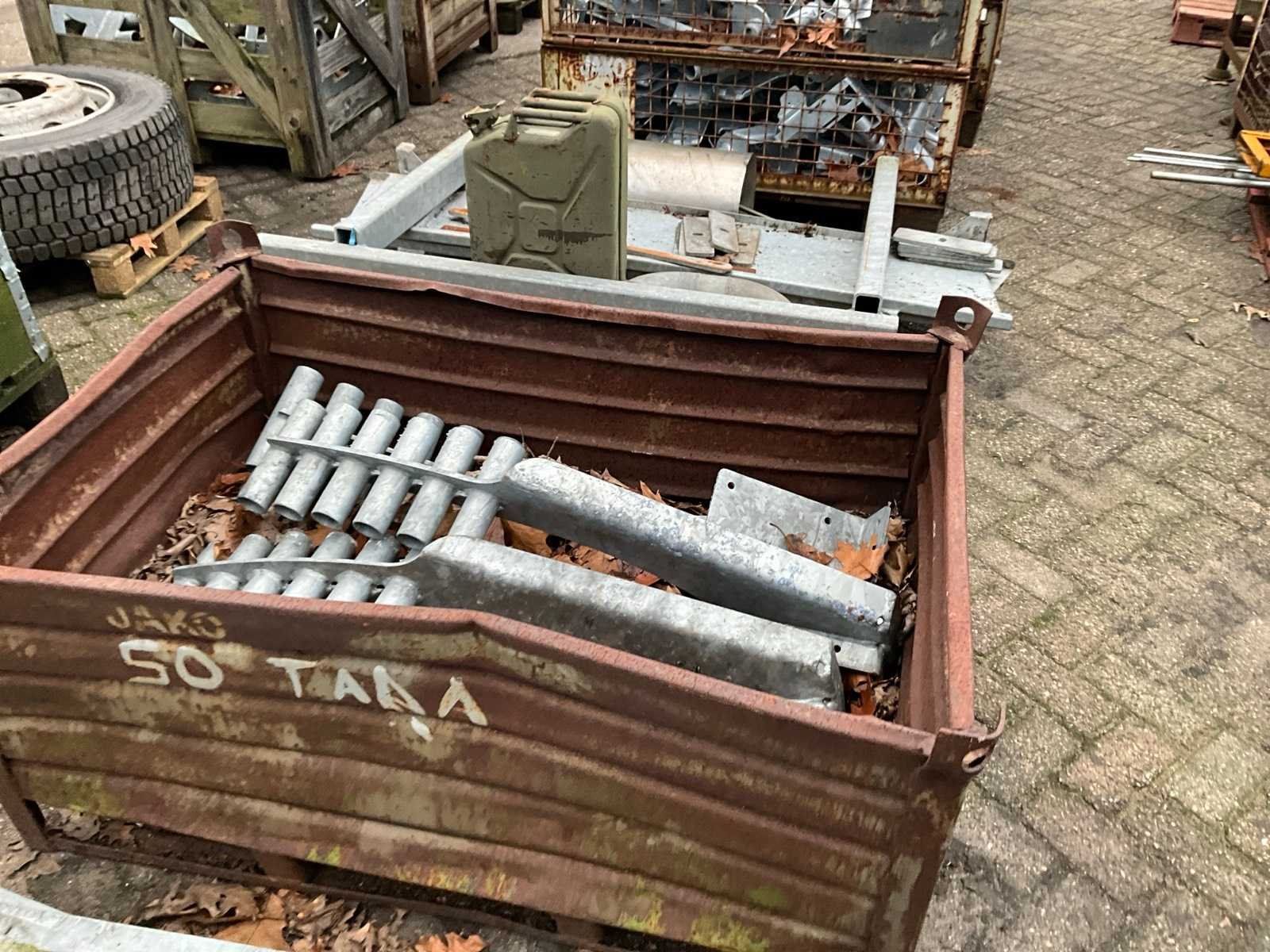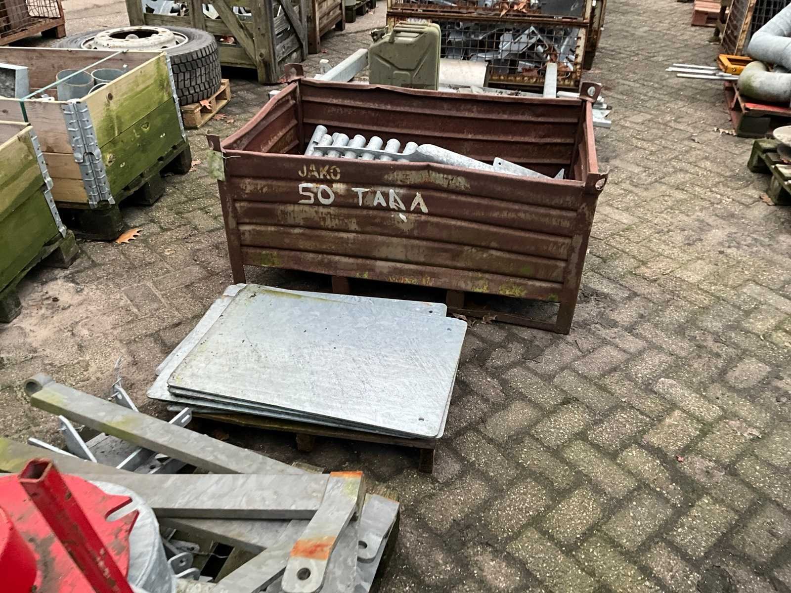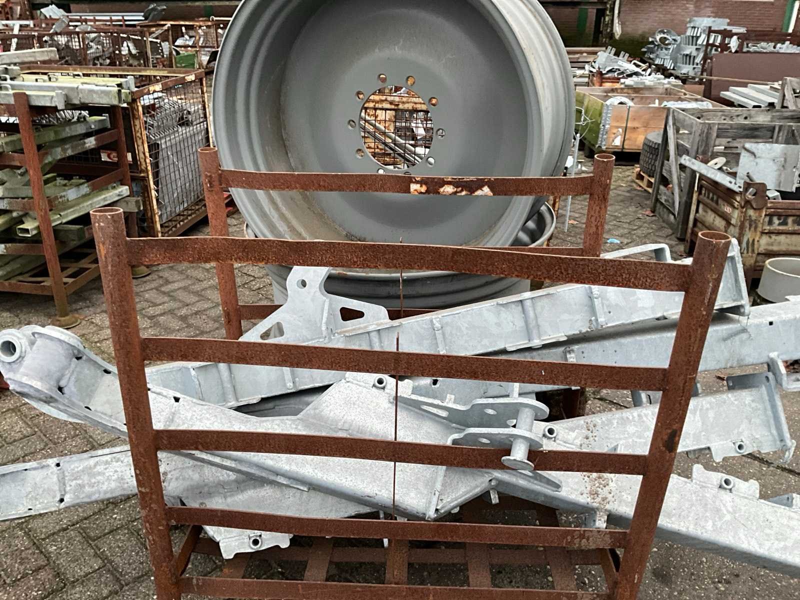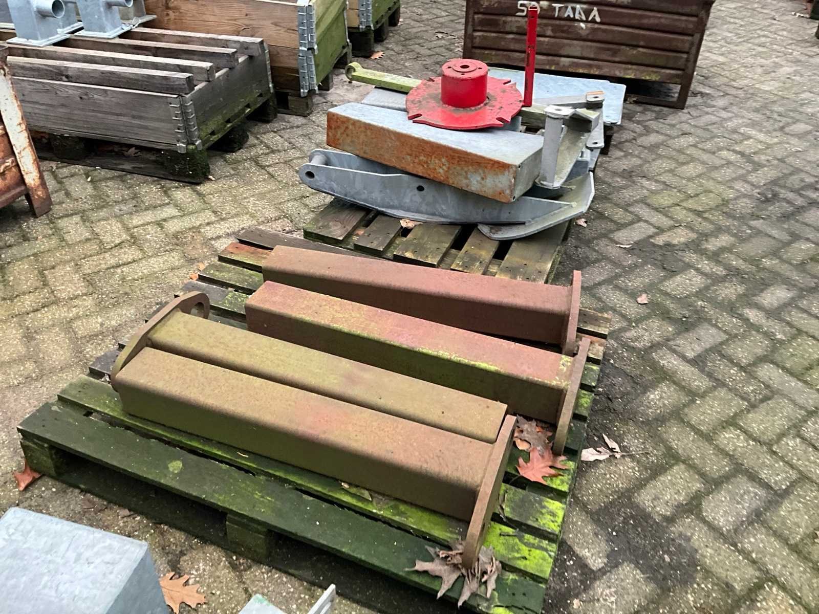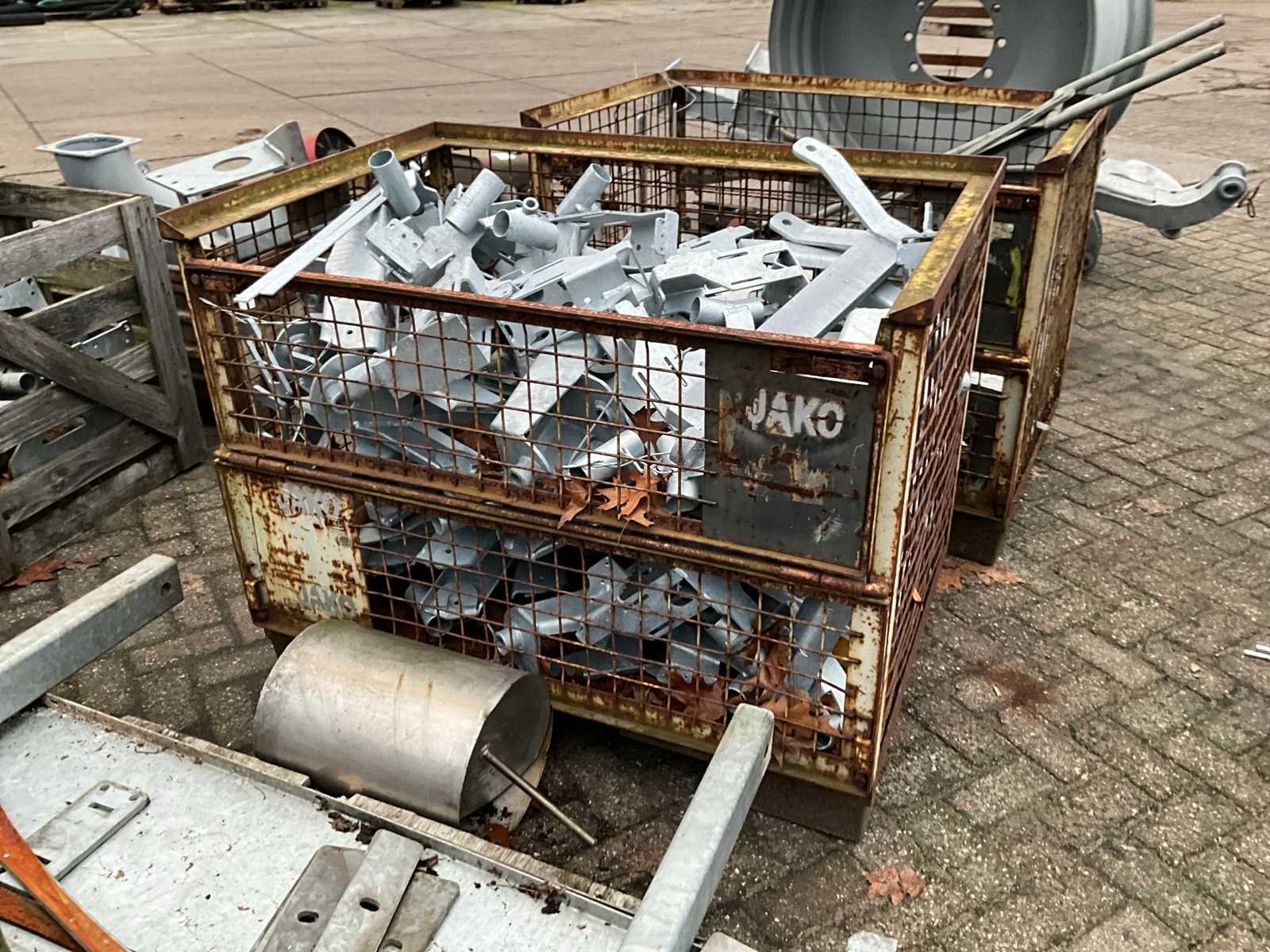 Divers op 20 pallet plaatsen, onder andere slanghouders, bochten, onderdelen, frame delen, jukken en of pallets inbegrepen
