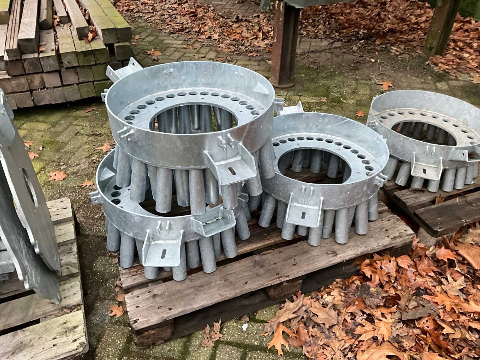 Op en met 7x pallet of juk, onder andere 3x 38 gaats verdeler, 3x 44 gaats verdeler, 2x 32 gaats, 1x 25 gaats verdeler, 3x 16 gaats verdeler, deksels etc Merk: Jako