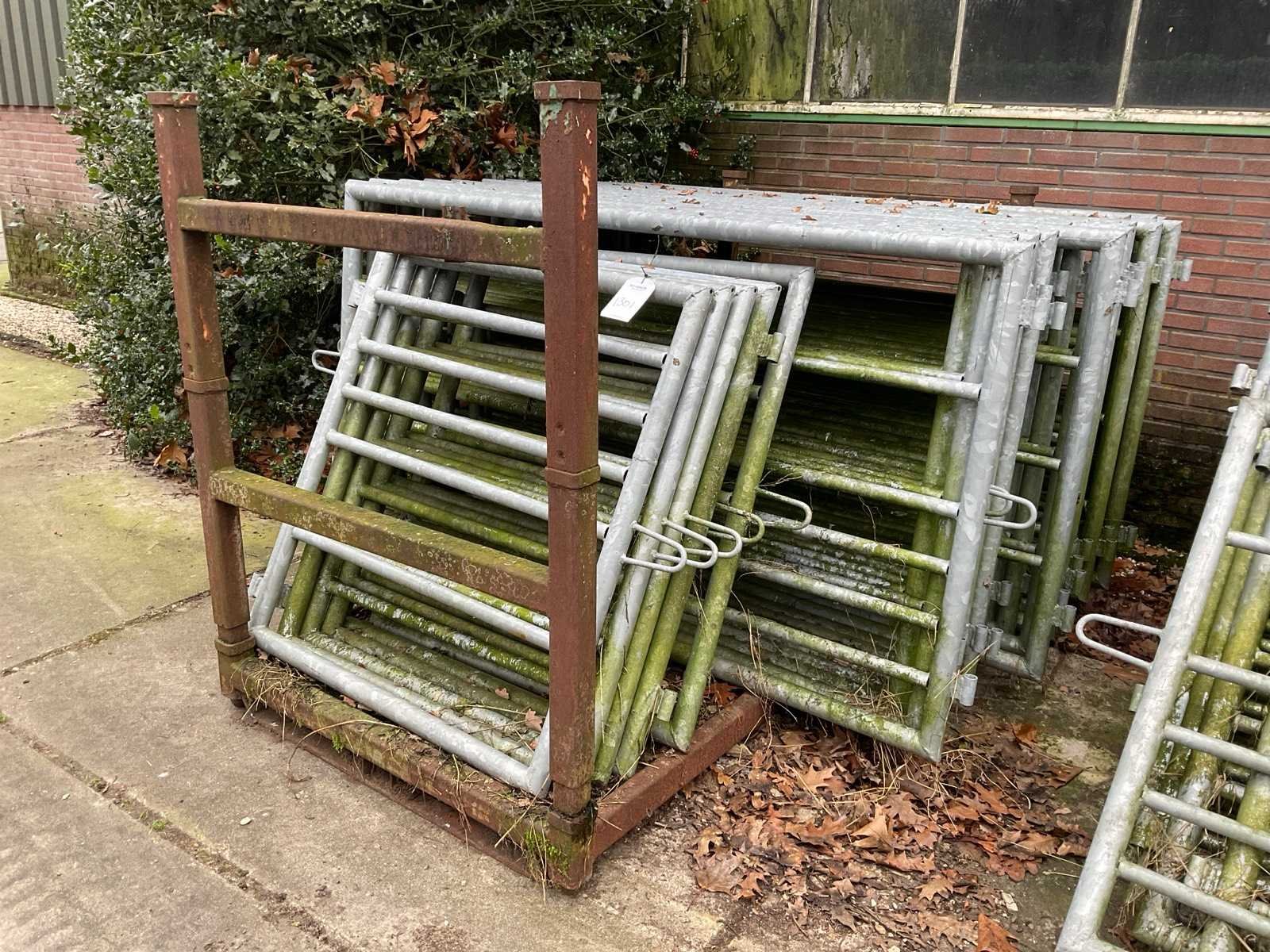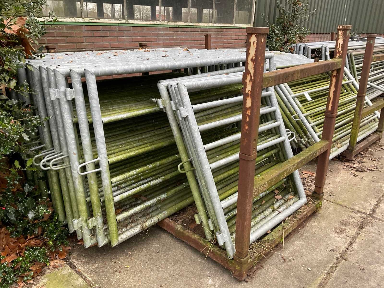 Materiaal: gegalvaniseerd, inclusief scharnieren zolang de voorraad strekt, en stapeljuk 1e: 27x afmeting bxh 200x110cm 2e: 6x afmeting bxh 100x110cm