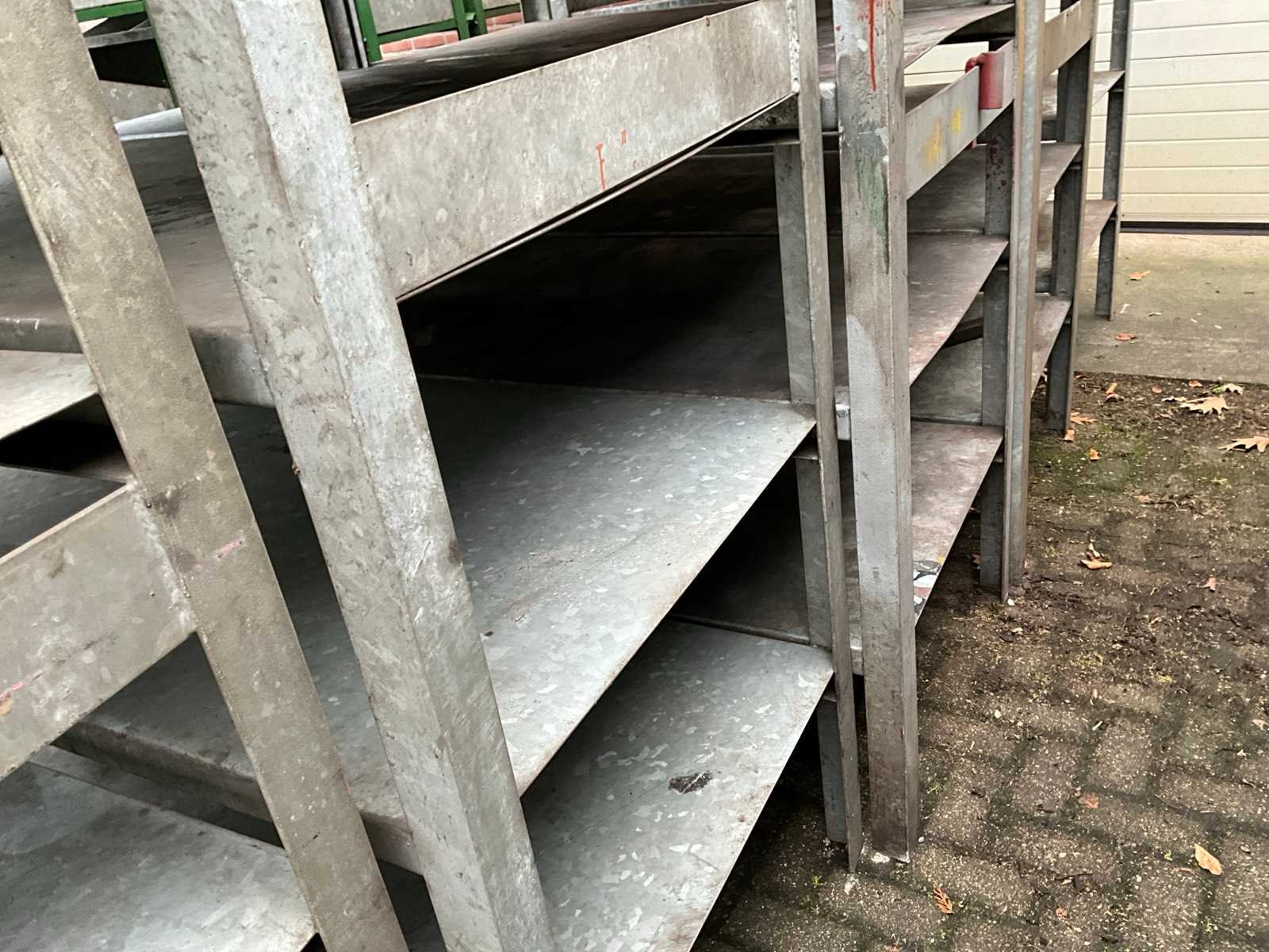 Per stelling 5 legborden Sectie afm. b: 1560mm Sectie diepte: 820mm Aantal legborden: 5 Geconstrueerd: true Materiaal: Staal Totale afmeting Hoogte: 200cm