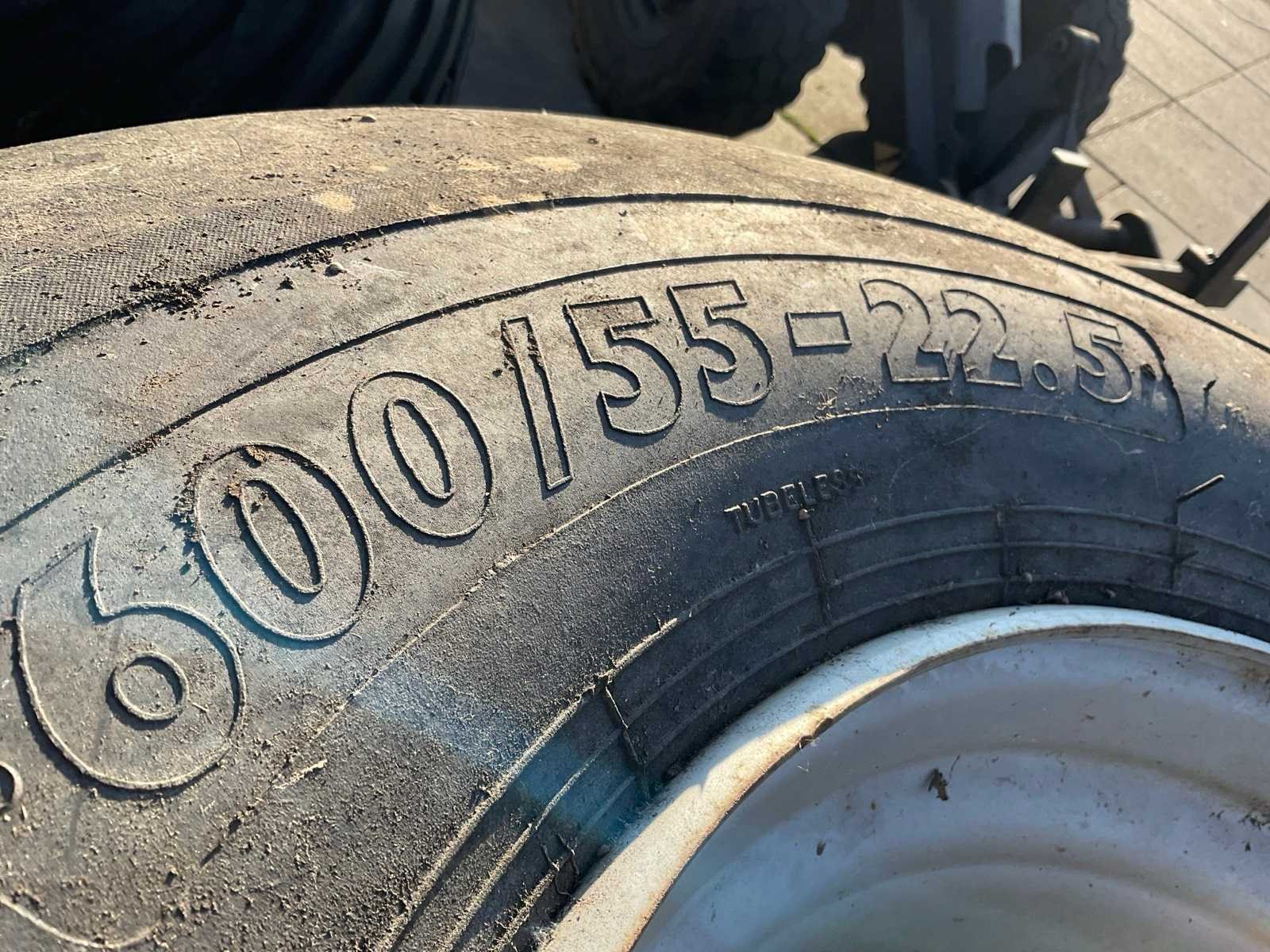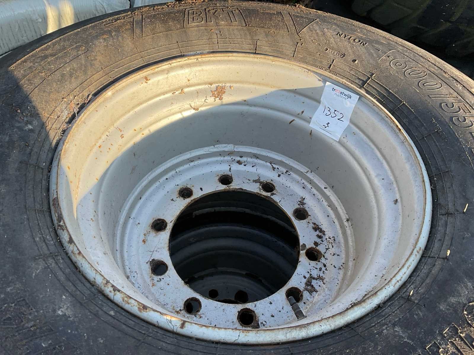 Steek 8x340, naafdiameter 280 mm. Merk: BKT Type: Flotation RIB 774 Bandenmaat: 600/55-22.5