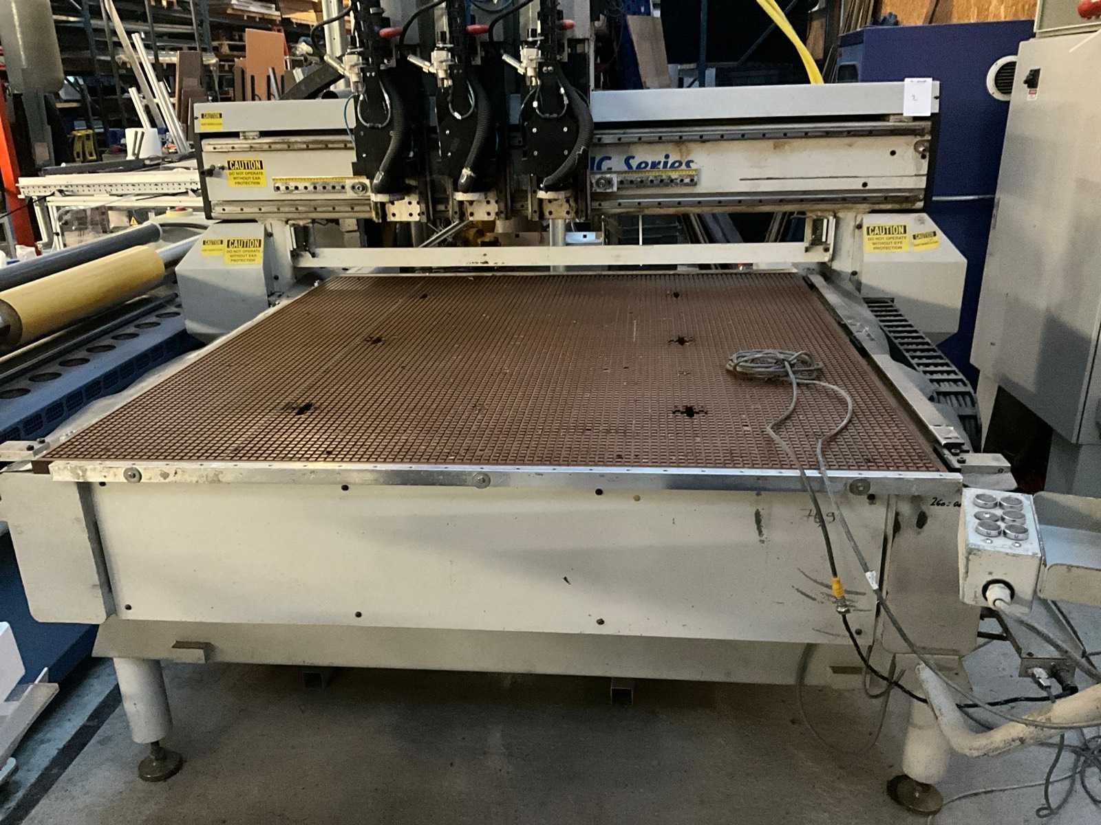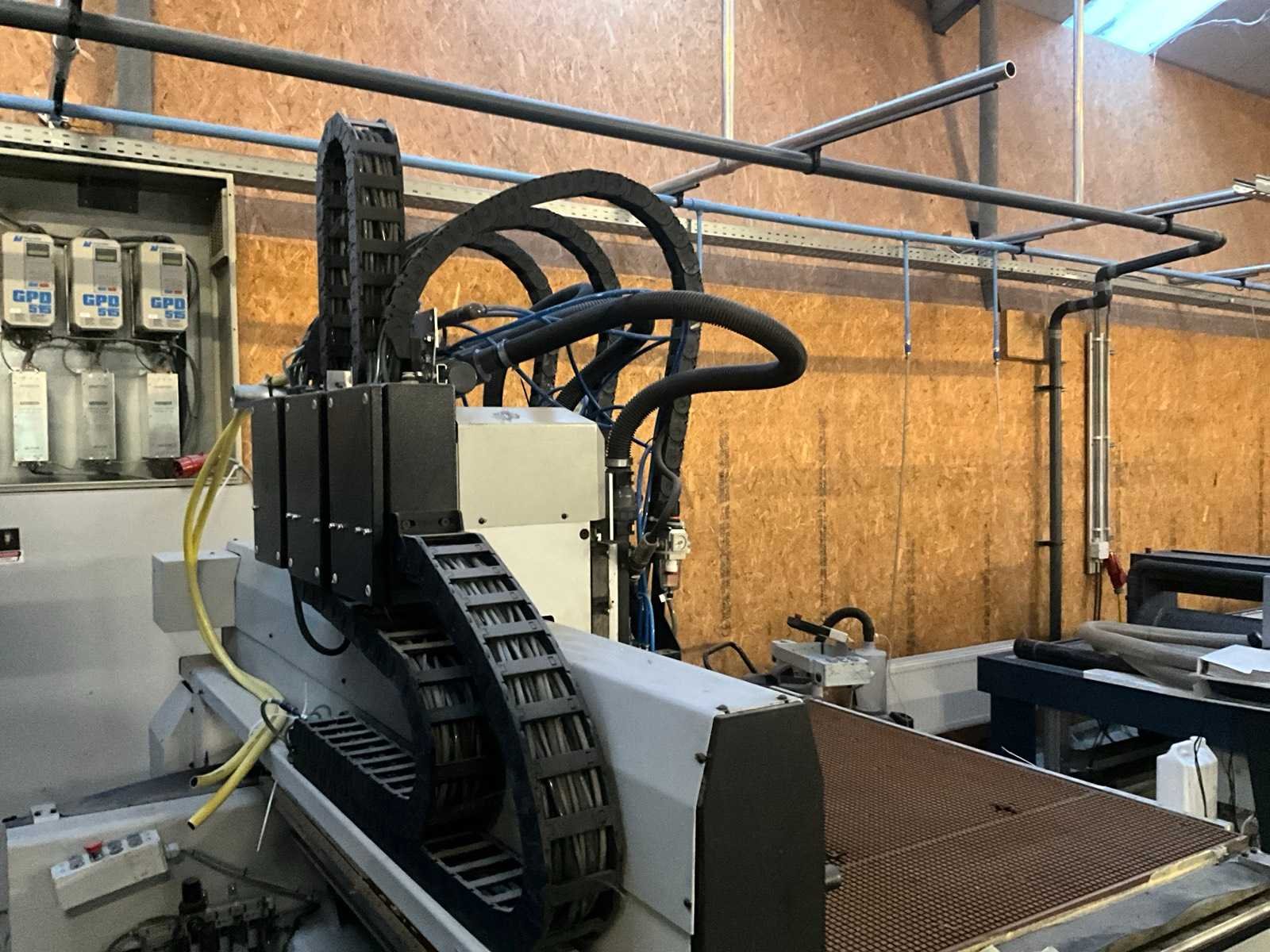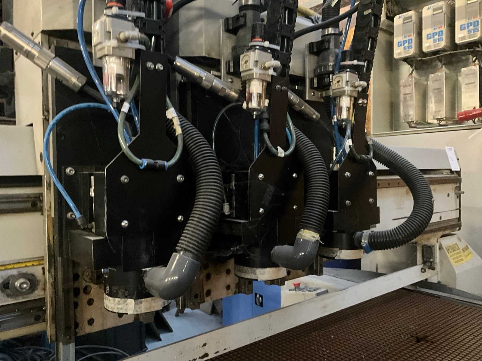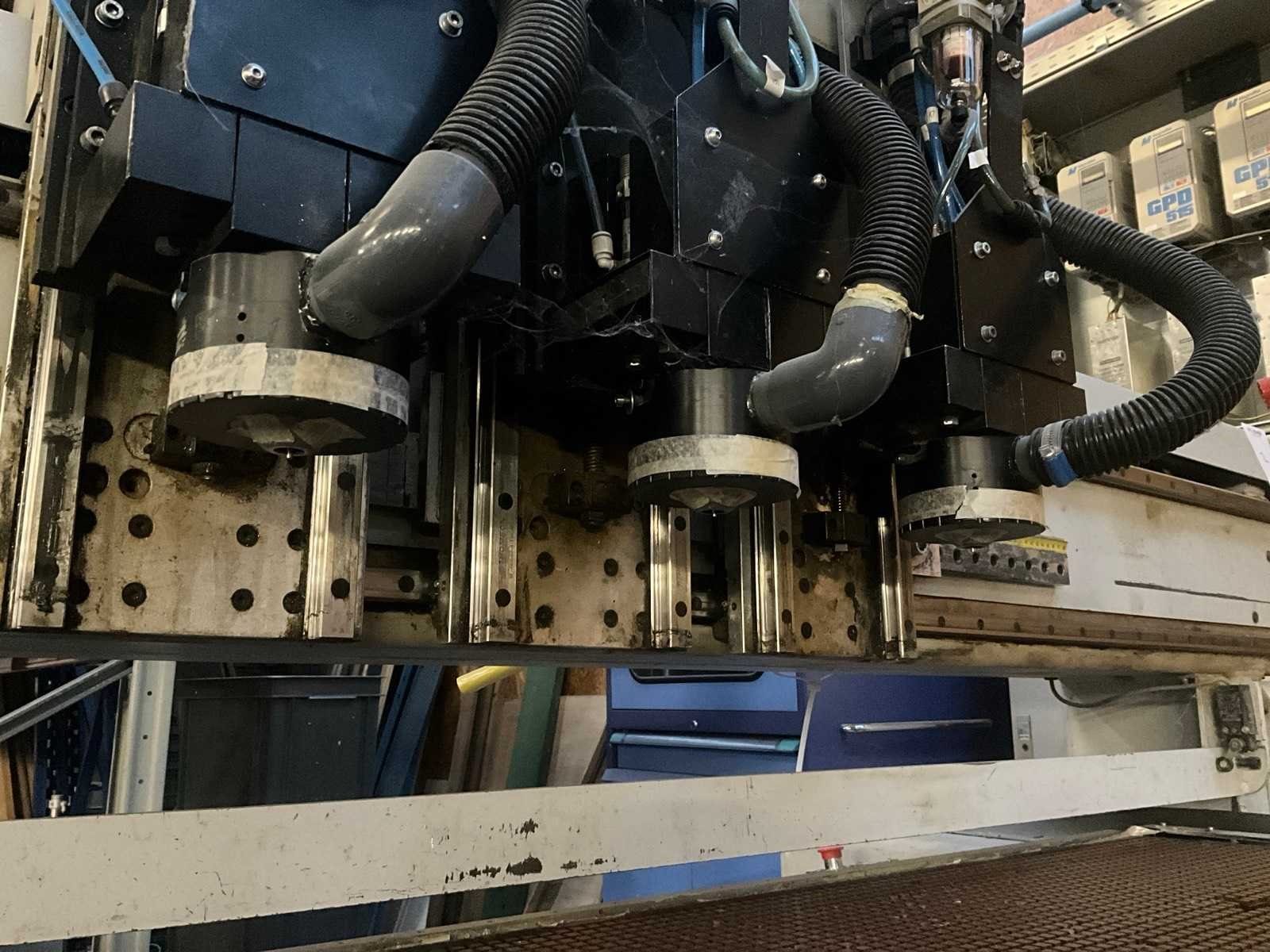 Voorzien van 3 AMT HF spindels vloeistof gekoeld 60.000rpm en floating heads ideaal geschikt om dunne plaat exact op diepte te frezen of te graveren op exacte diepte, tafel voorzien van 4 electro pneumatisch bediende vacuum zones, compleet met aanstuur software en pc Inclusief besturingskast lxbxh 310x900x1670mm met daarin de frequentie regelaars en stroomvoorziening voor de servo motoren Merk: Multicam Aansluiting: 400V Afmeting l: 2760mm Afmeting b: 2500mm Afmeting h: 2400mm