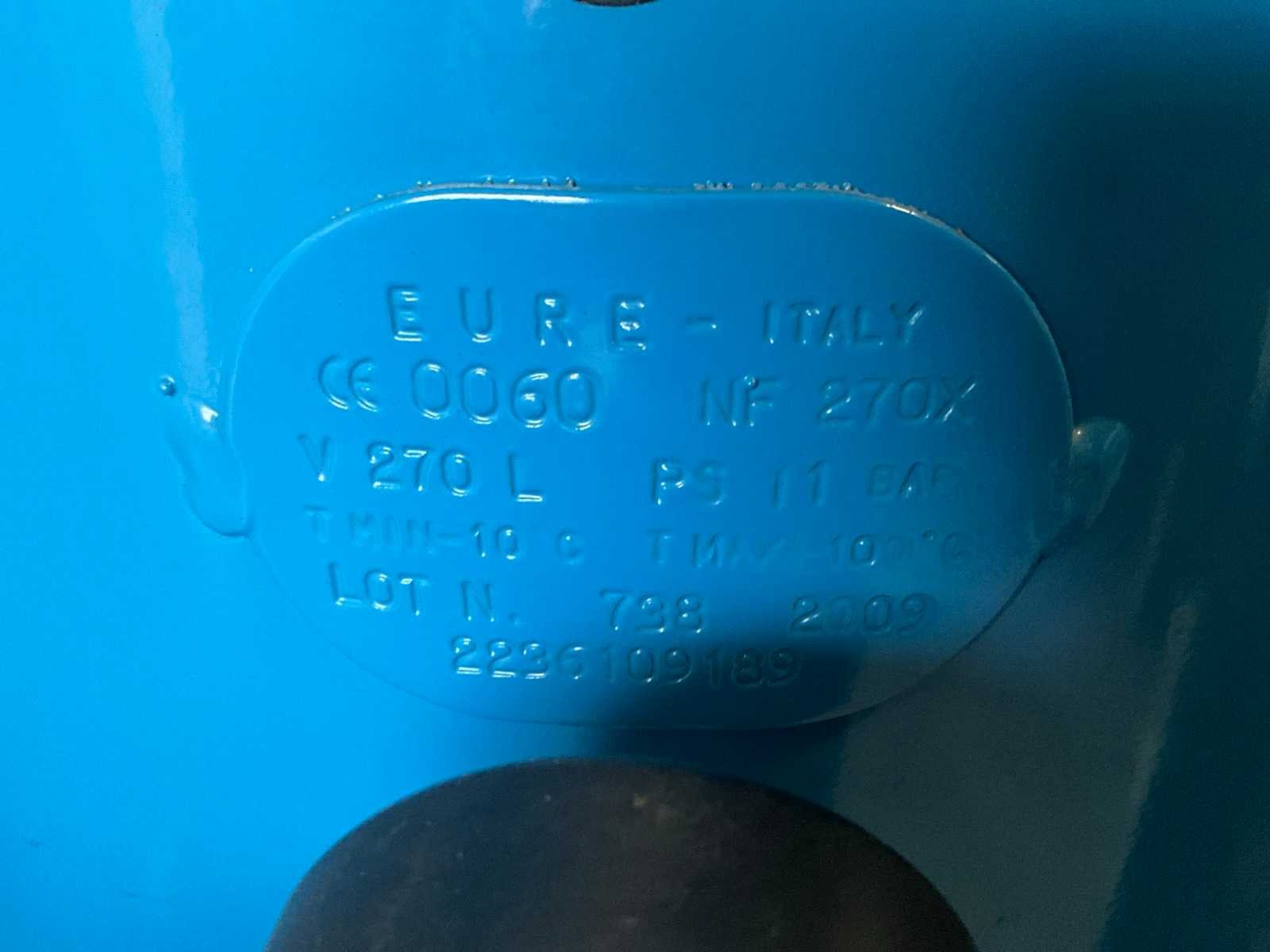 Merk: Eure Type: NF 270X Bouwjaar: 2009 Capaciteit.: 11bar Diameter circa: 500mm Totale afmeting Hoogte: 1700mm Serienummer: 2236109189 Verticaal: true Tankinhoud: 270l