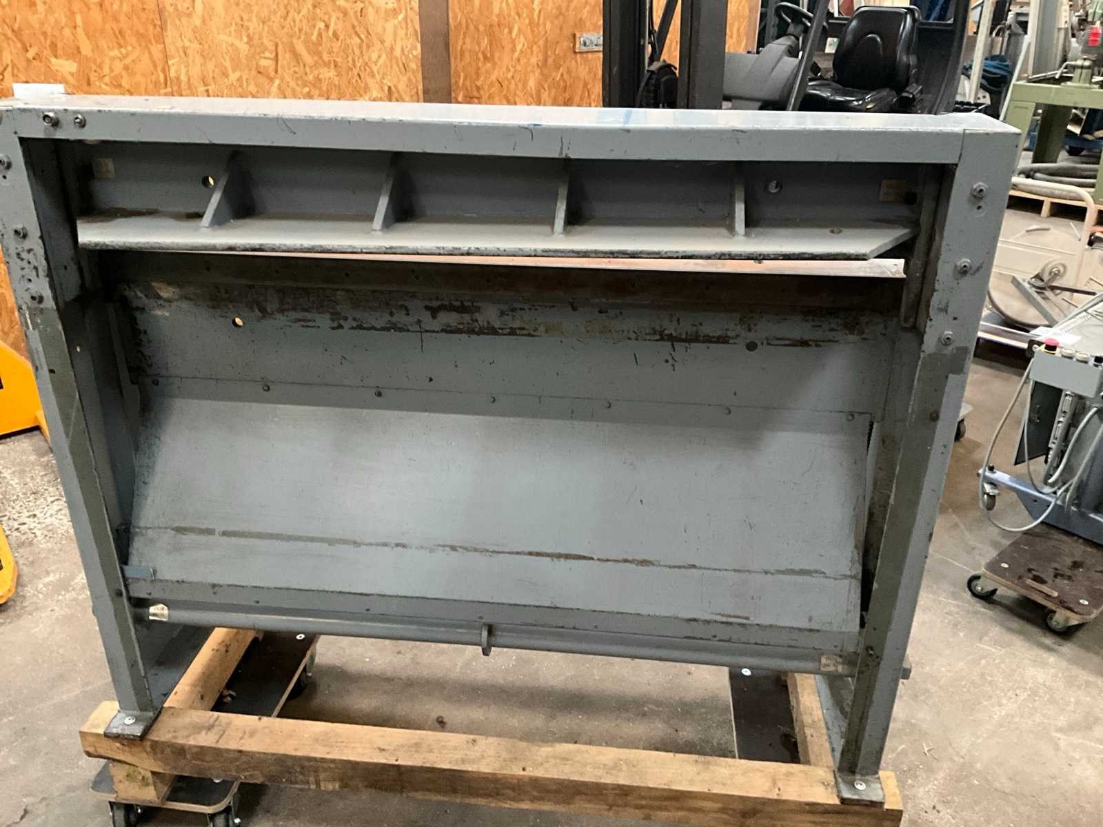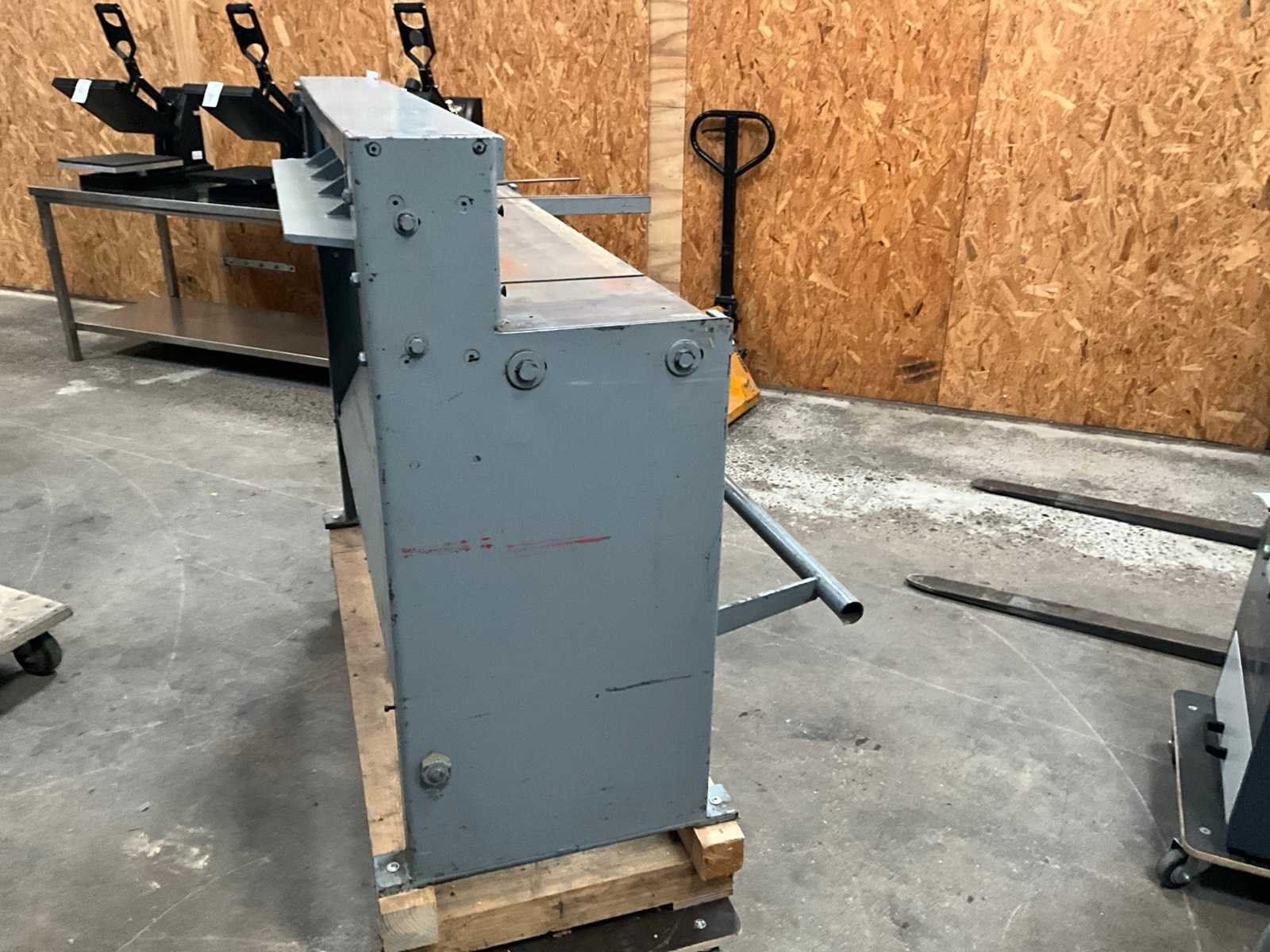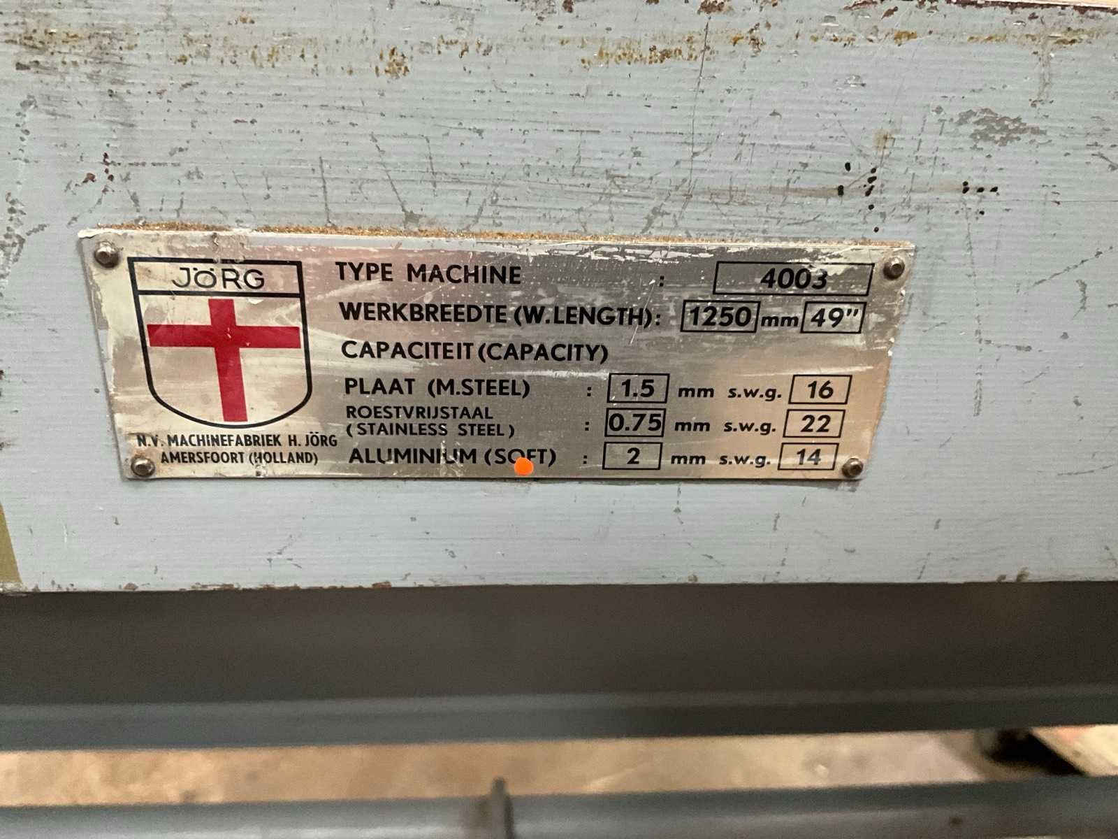 Voetbediend Merk: Jorg Type: 4003 Snijlengte: 1250mm Max. plaatdikte: 1.5mm Afmeting l: 8000mm Afmeting b: 1420mm Afmeting h: 1110mm