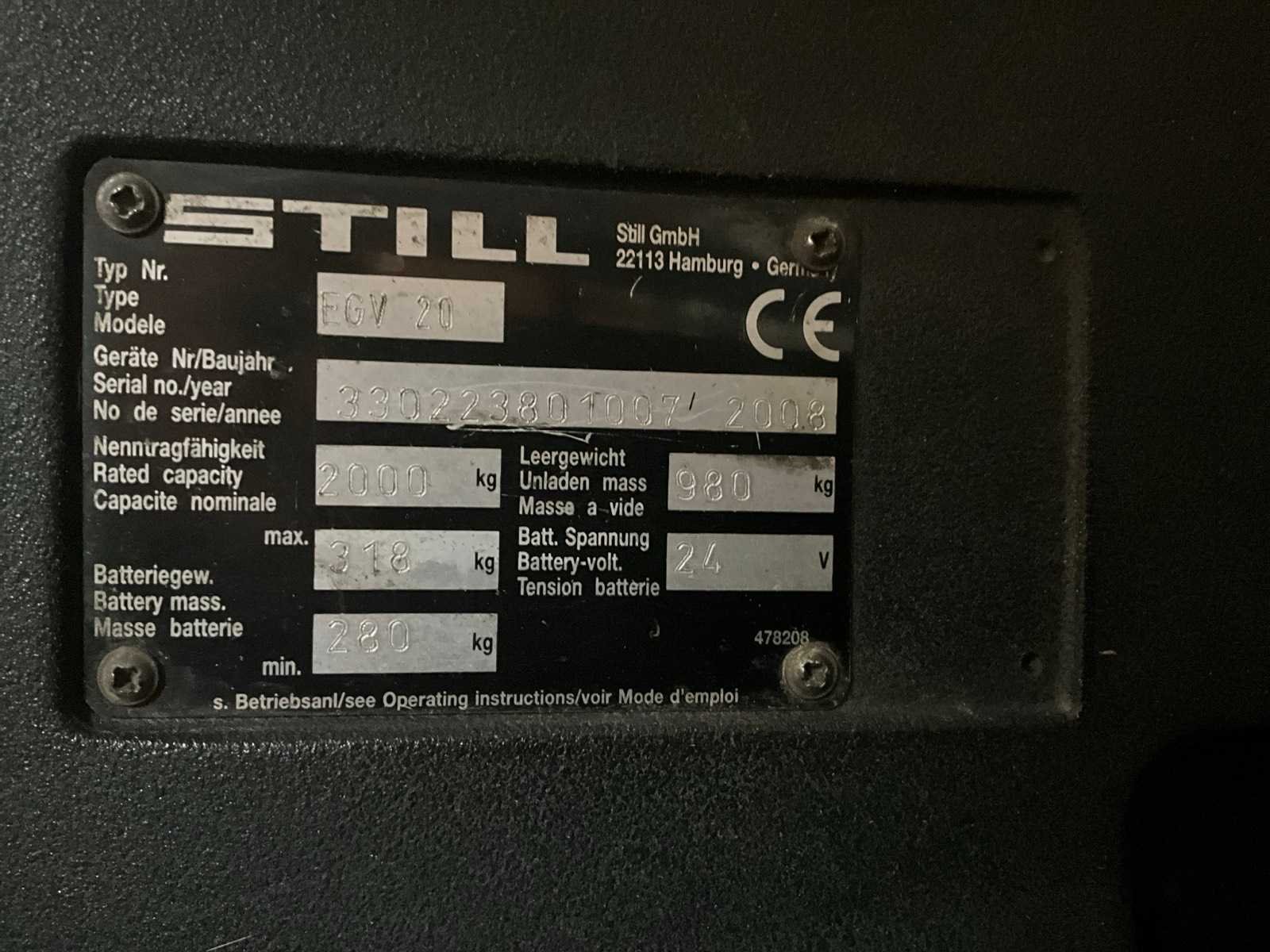 2008 still egv 20 elektrische palletwagen