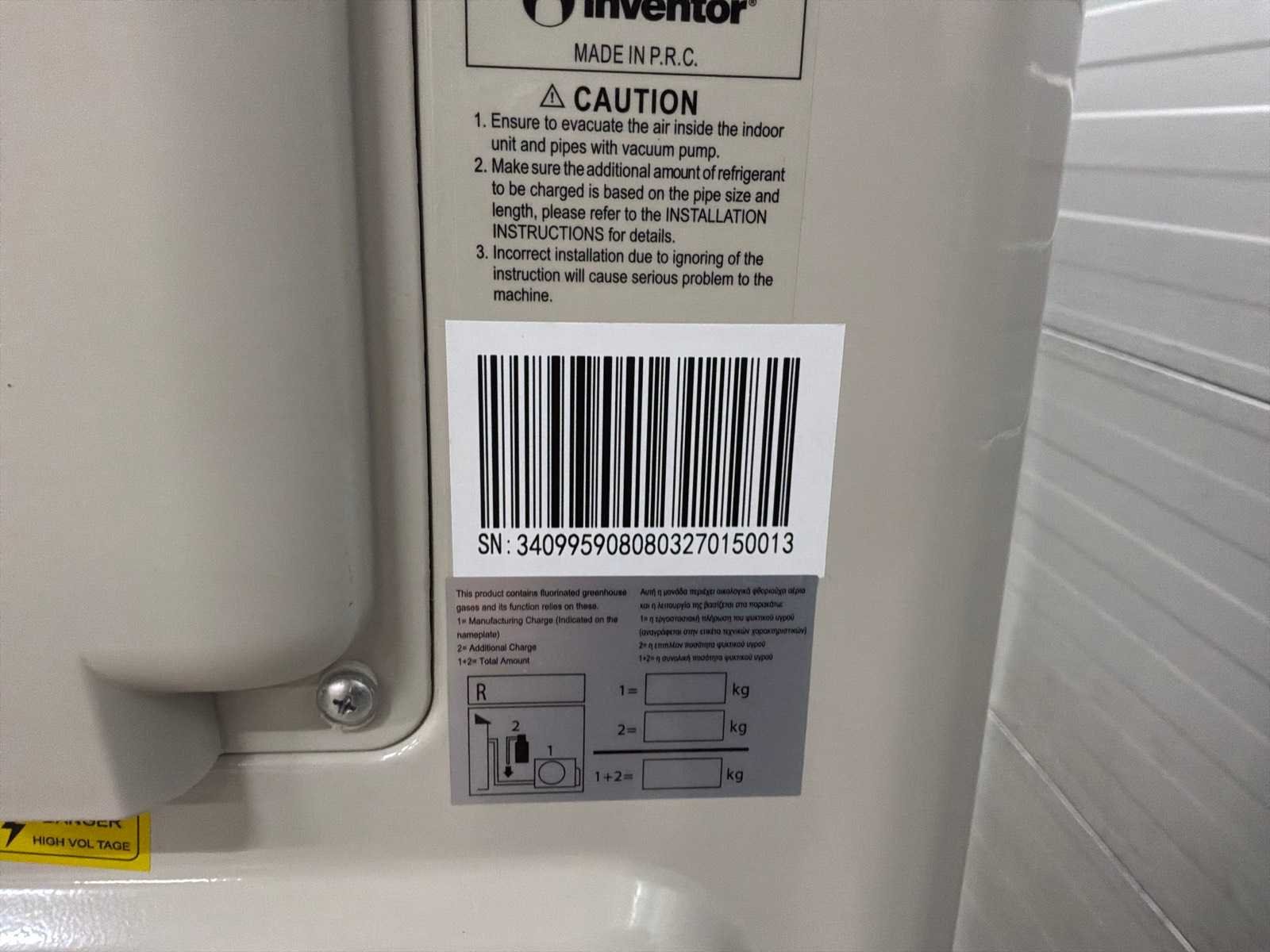 Merk: Inventor Type: U5MRT32-50 R32 Eigen gewicht: 107kg Totale afmeting L: 420mm Totale afmeting Breedte: 950mm Totale afmeting Hoogte: 1320mm