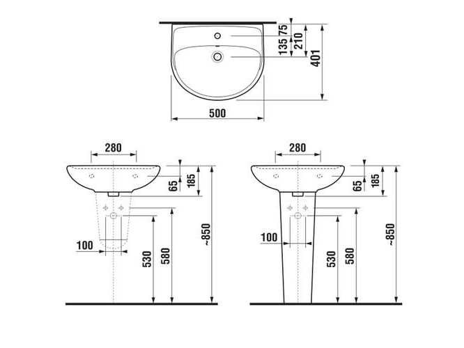 Jika wastafel 50cm met kraangat (2x)