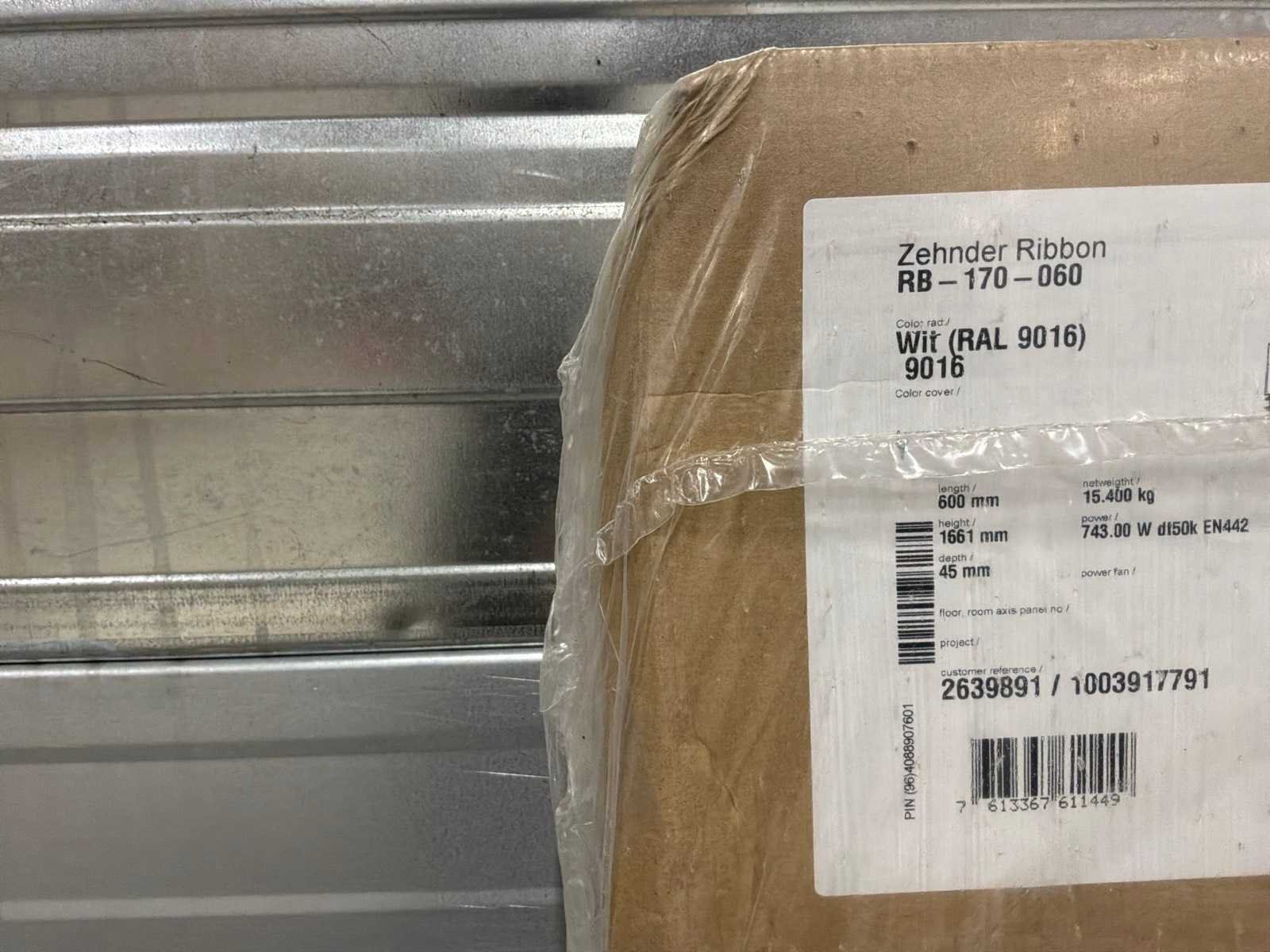 743 Watt, RAL9016 wit Merk: Zehnder Model: Ribbon Lengte: 60cm Hoogte: 166cm