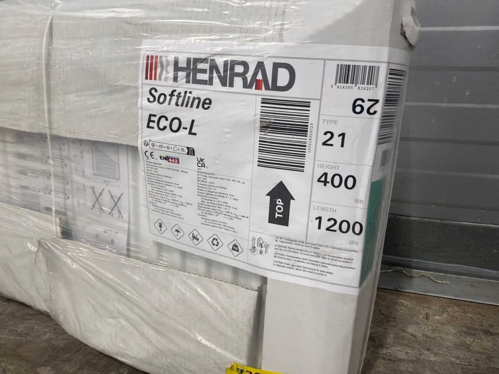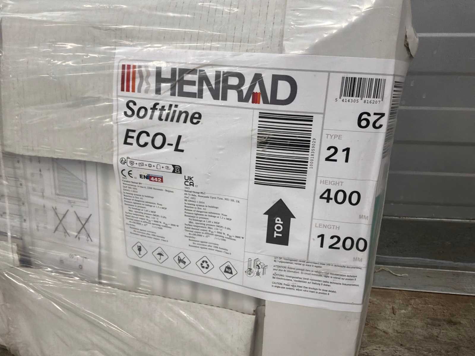 Paneelradiator 400-21-1200LINKS 1112W Merk: Henrad Type: Softline ECO L type 21 Vermogen: 1112W Totale afmeting L: 400mm Totale afmeting Breedte: 1200mm