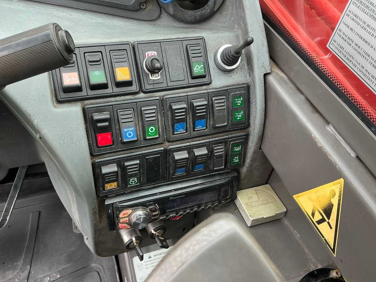 Inclusief Radiograaf en vorkenbord - 14583 Km - Giekvering Merk: Manitou Type: MRT 2150+ Privilege Bouwjaar: 2009 Serienummer: 414317 Kenteken: T-96-DRD Motorvermogen (kW): 110kW Hefvermogen: 5000kg Hefhoogte: 21000mm Cabine: true Lepellengte: 1200mm Luchtbanden: true Afgelezen urenstand: 14810 Eigen gewicht: 16410kg Totale afmeting L: 8200mm Totale afmeting Breedte: 2550mm Totale afmeting Hoogte: 3150mm