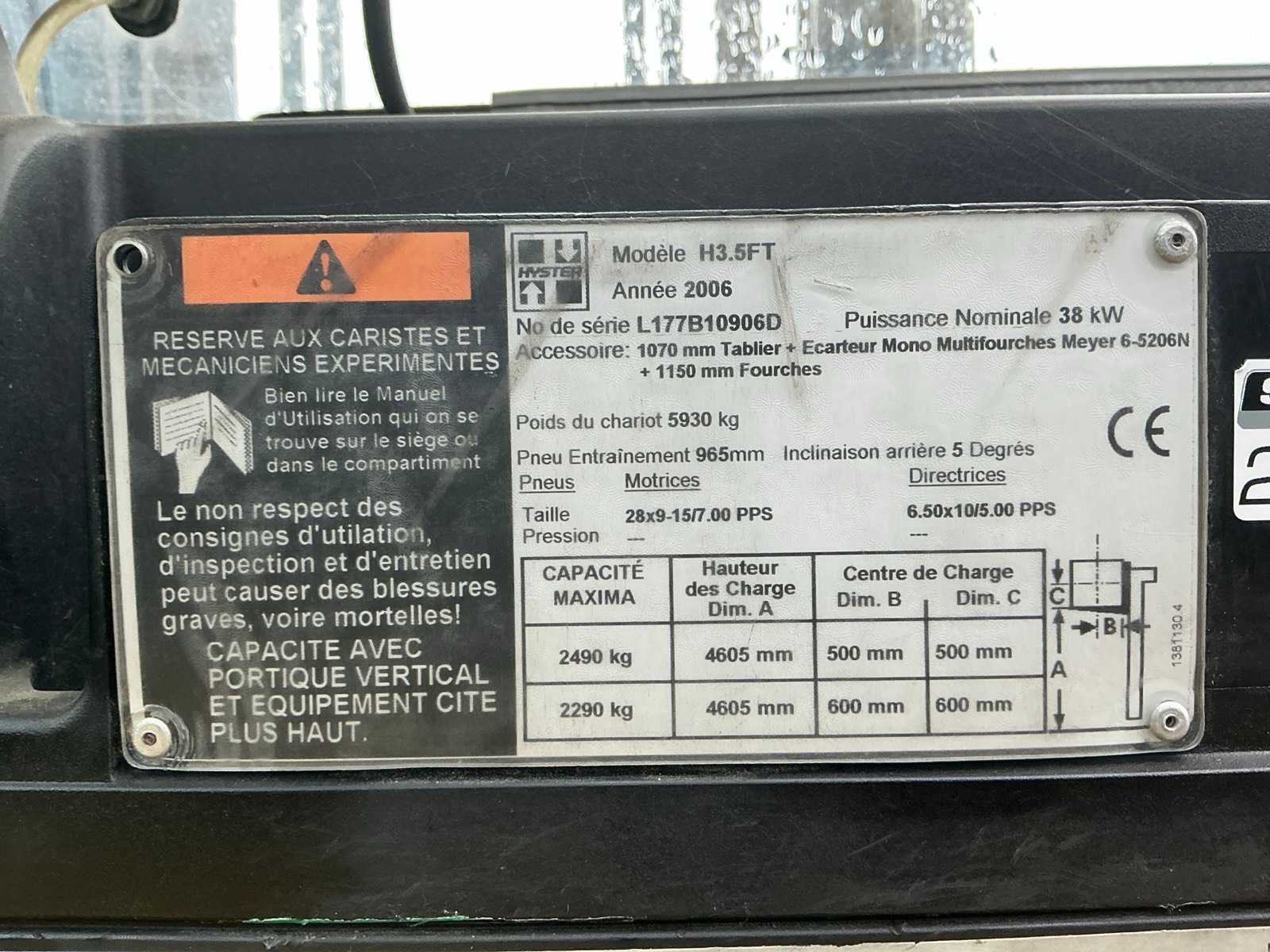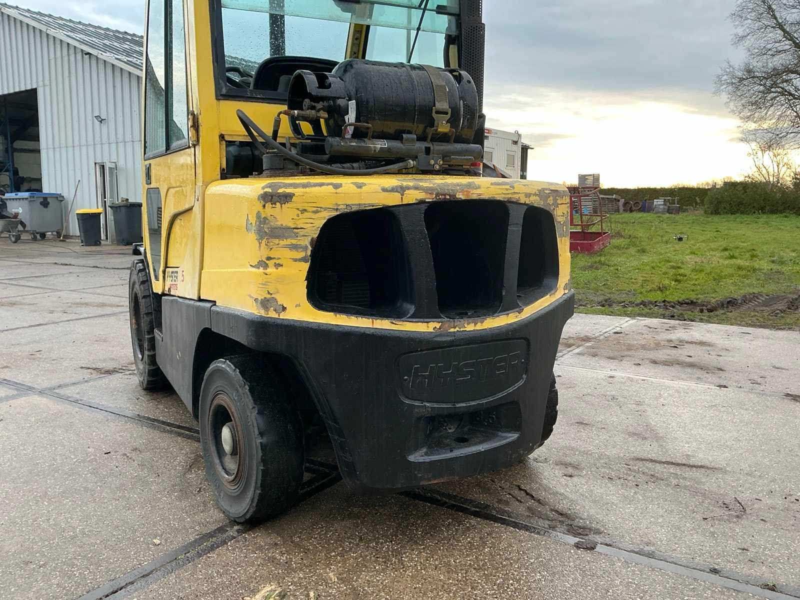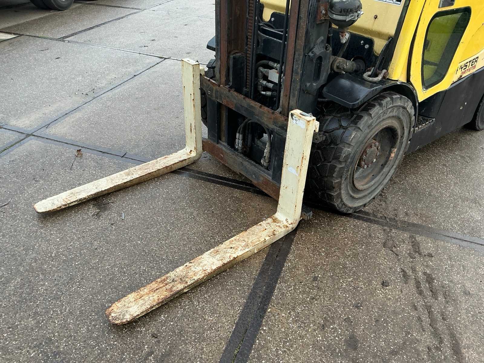 Merk: Hyster Type: Fortens H3.5FT Bouwjaar: 2006 Serienummer: L117B10906D Brandstof: LPG Mast: Duplex Soort band: Volrubber banden Aantal wielen: 4 Afgelezen urenstand: 13126 Duplex mast: true Eigen gewicht: 5930kg Hefvermogen: 2490kg Lepellengte: 1000mm Vol rubber banden: true Totale afmeting L: 3750mm Totale afmeting Breedte: 1300mm Totale afmeting Hoogte: 3100mm LPG: true