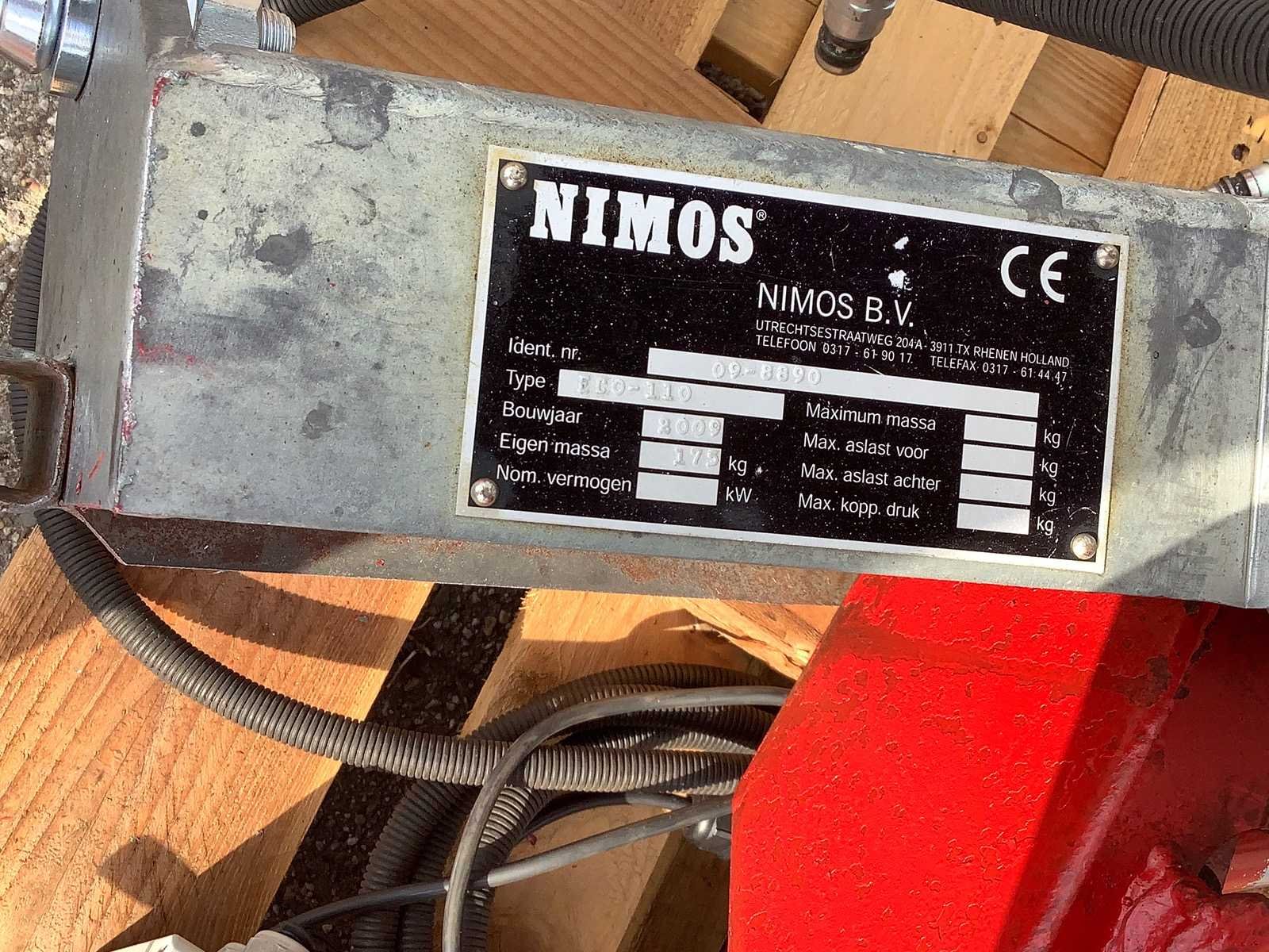 Met sproeiïnstalatie, voor de stof. tank + pomp Merk: Nimos Type: ECO-110 Bouwjaar: 2009 Serienummer: 09-8890 Eigen gewicht: 175kg