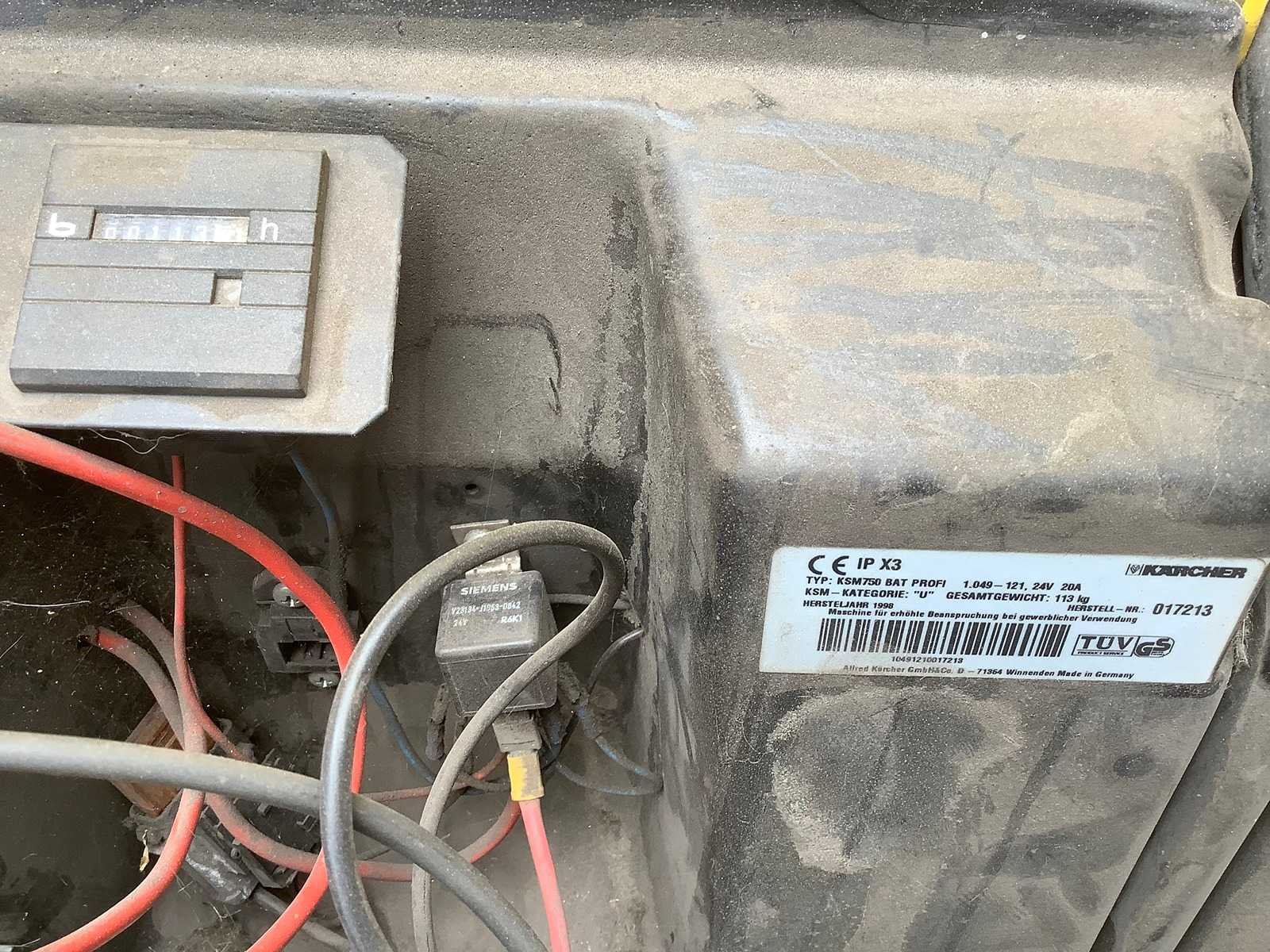 Accu aangedreven veegmachine Merk: Karcher Type: KSM 750 Bouwjaar: 1998 Werkbreedte: 800mm Elektrisch: true Afgelezen urenstand: 113hr Aansluiting: 24V