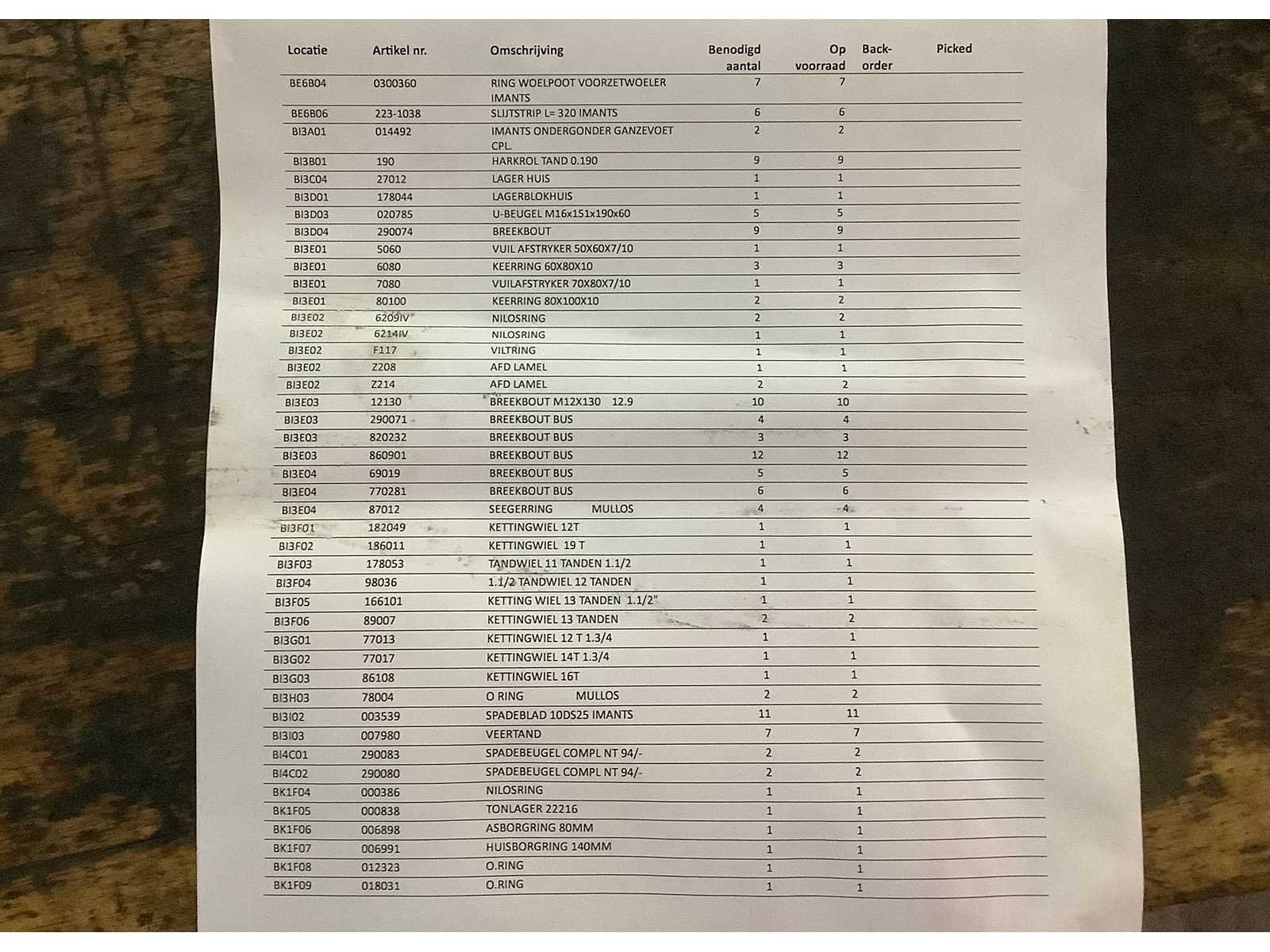 Partij Imants onderdelen afkomstig van overtollige dealer voorraad, lijst met onderdeelsnummer vermeld Merk: Imants