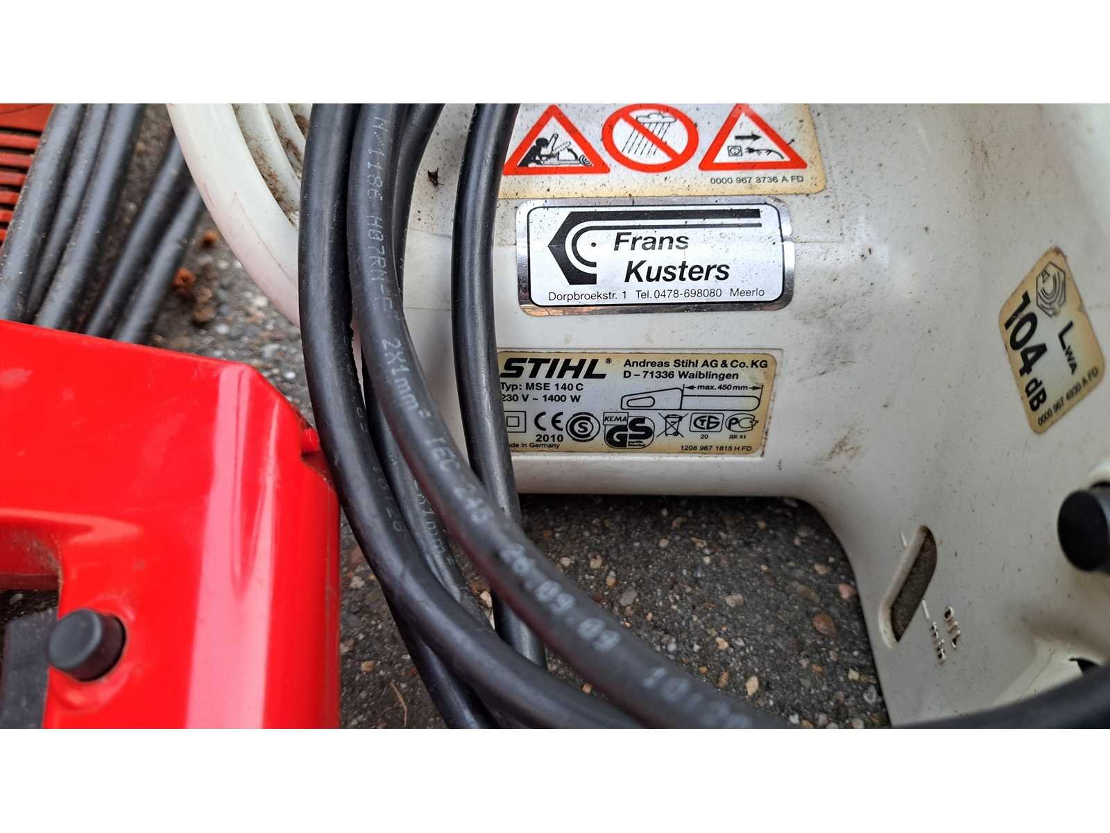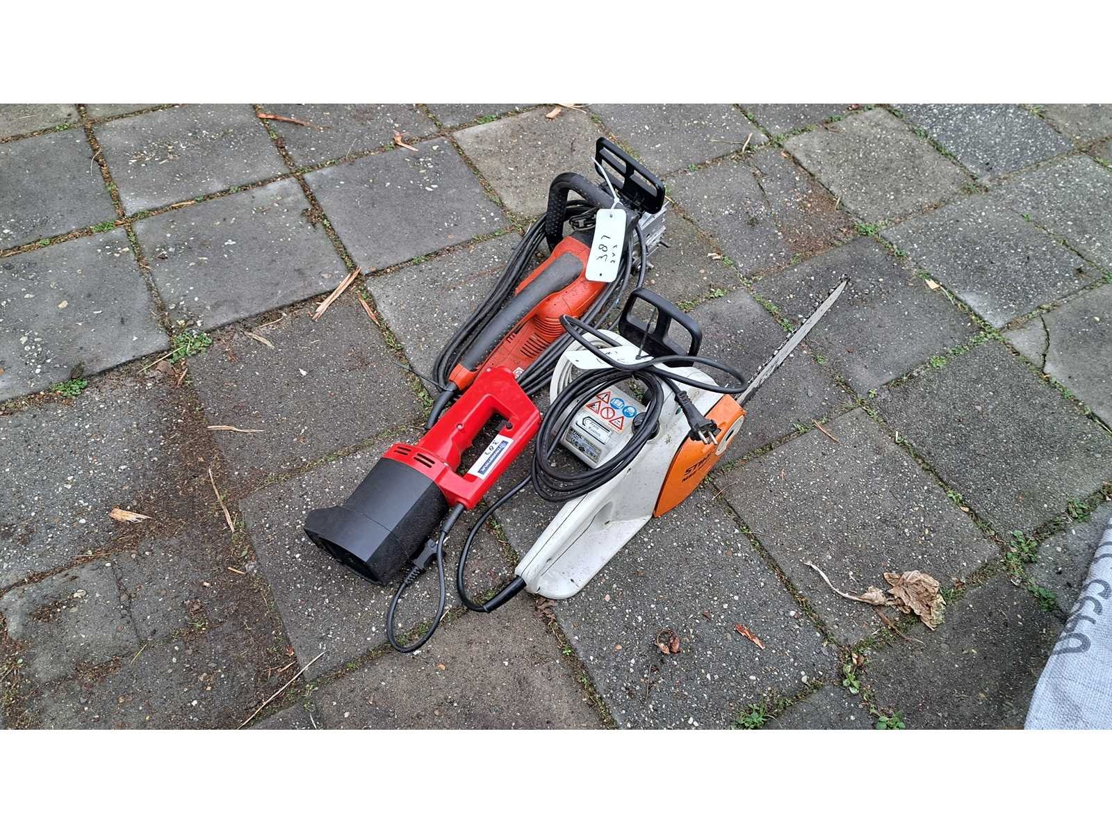 2x kettingzaag 230V werking onbekend. !1 werkend apparaat Blitz waar aanbouw op gezet kan worden Merk: Stihl, Dolmar, Blitz Type: MSE 140 Zaagblad afm. l: 300mm Elektrisch aangedreven: true