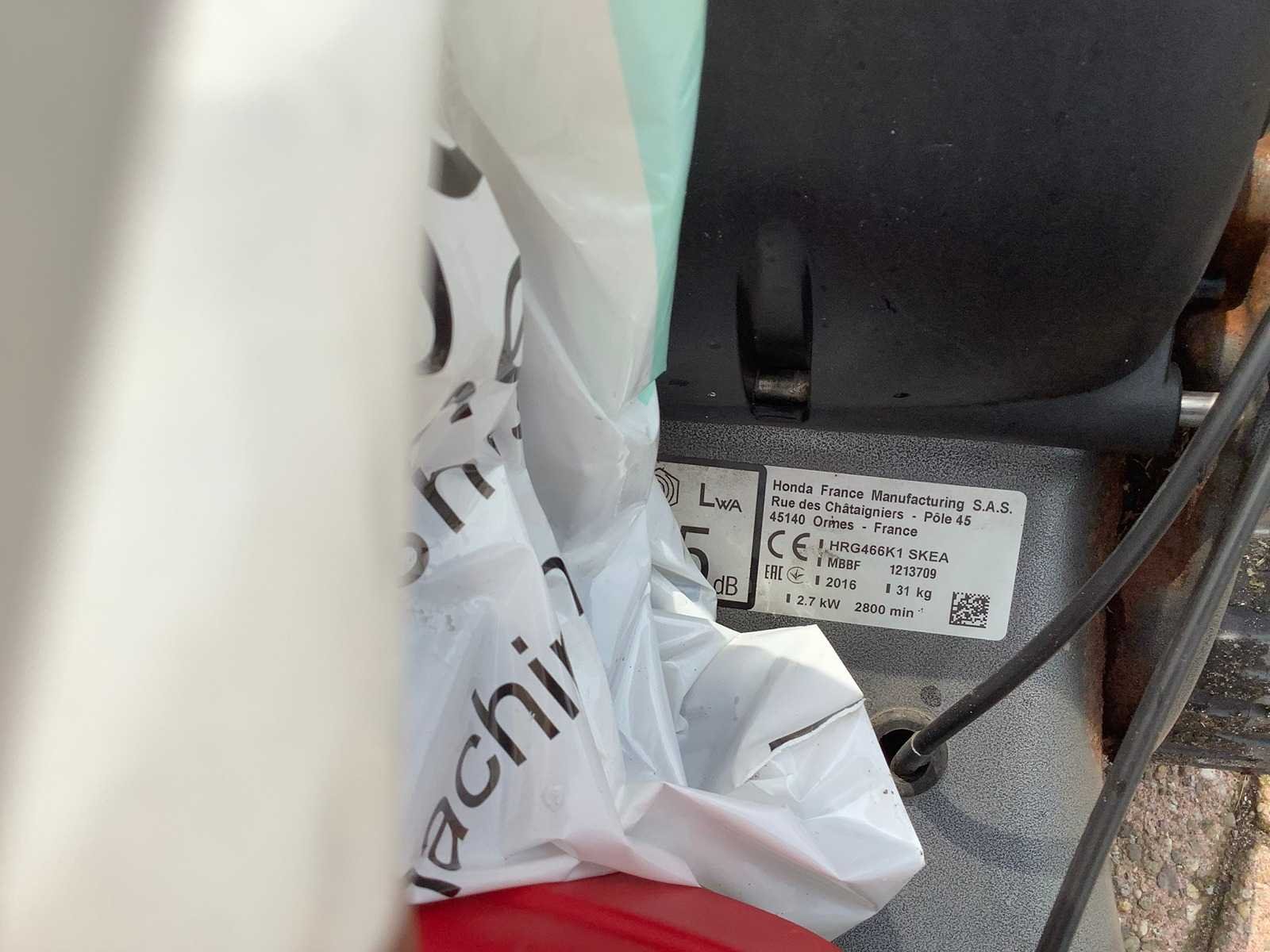 Slecht maaidek Merk: Honda Type: IZI HRG 466 Bouwjaar: 2016 Werkbreedte: 46cm Loopmaaier: true Benzinemotor: true Brandstof: benzine Opvang container: true