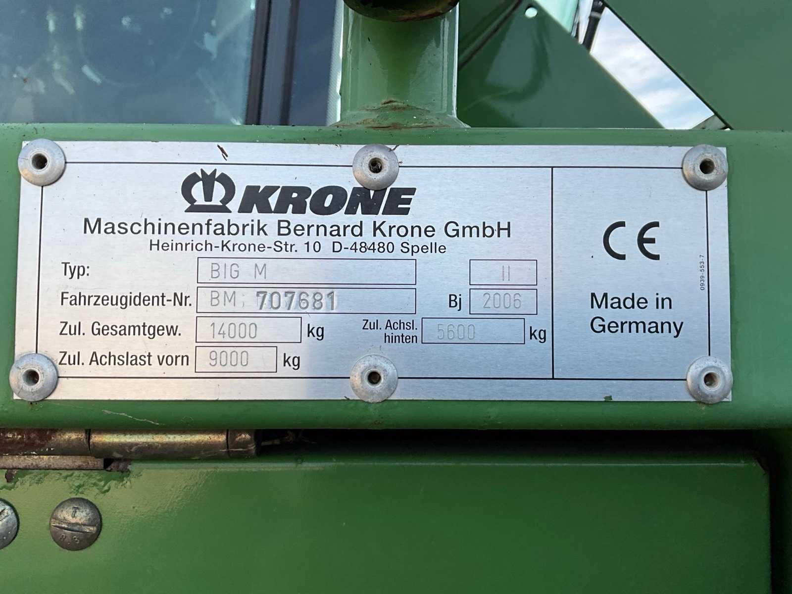 350 pk, 2988 maaiuren, automatische vetsmering, hydraulisch verstelbare maaihoogte Merk: Krone Type: BIG M 2 Bouwjaar: 2005 Kenteken: TBK-10-Z Zelfrijdend: true Werkbreedte: 9000mm Aantal maaidekken: 3 Type motor: Mercedes Aantal cilinders: 6 Brandstof: diesel Afgelezen urenstand: 4849hr