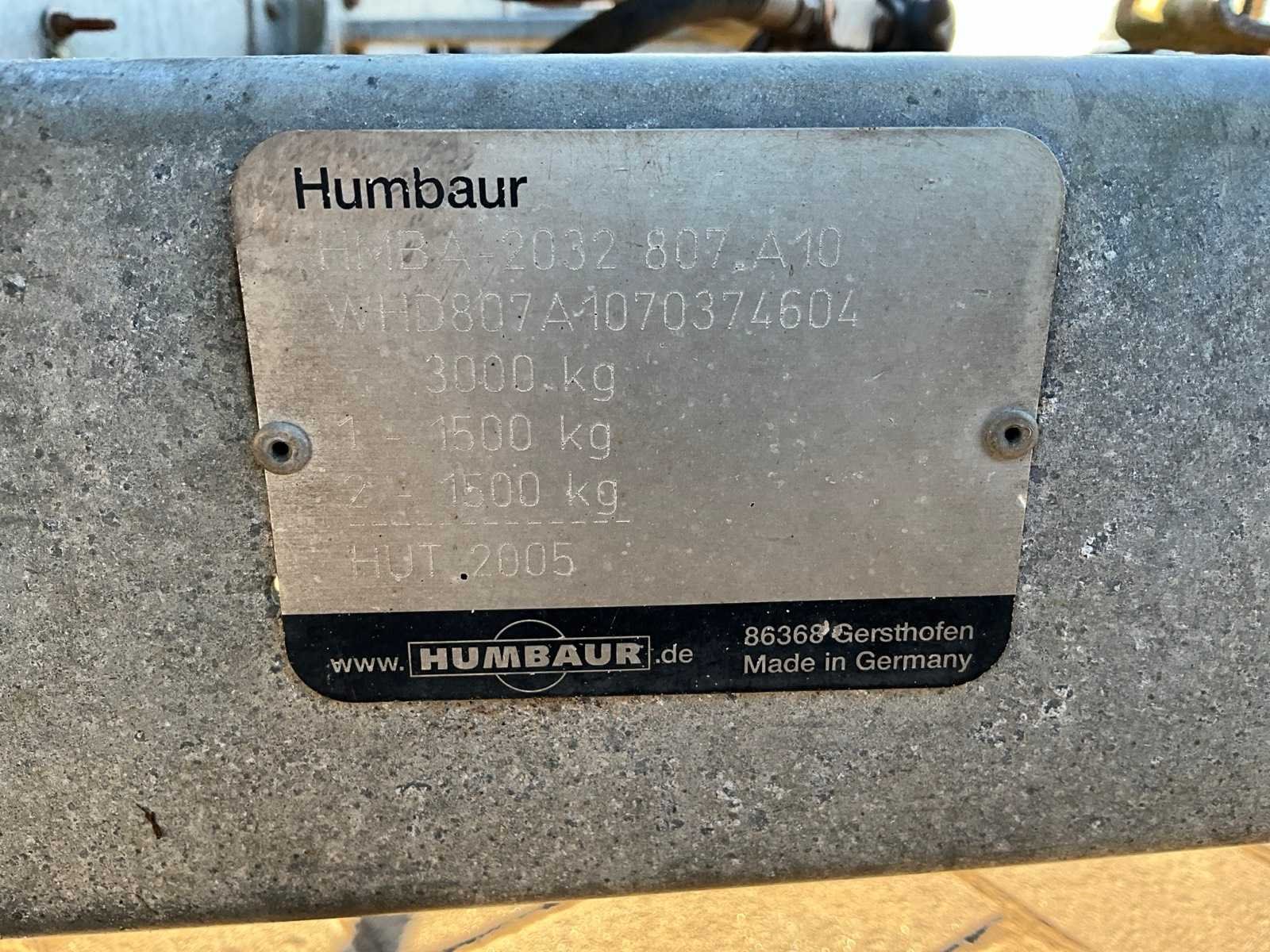 Hydraulisch kantelbaar, voorzien van lier, afneembare aluminium kantschotten en oprijplaat, zonder neuswiel Merk: Humbaur Type: HMBA-2032 807.A10 Bouwjaar: 2007 Chassisnummer: WHD807A1070374604 Aantal assen: 2 Laadbak afmeting l: 4250cm Laadbak afmeting b: 2100cm Ledig gewicht: 810kg Laadvermogen: 2190kg Datum eerste toelating: 2007-03-17 Datum eerste toelating (NL): 2007-03-17 Kenteken: WV-PN-94 Hoogte: 150cm Lengte: 570cm Breedte: 2160cm