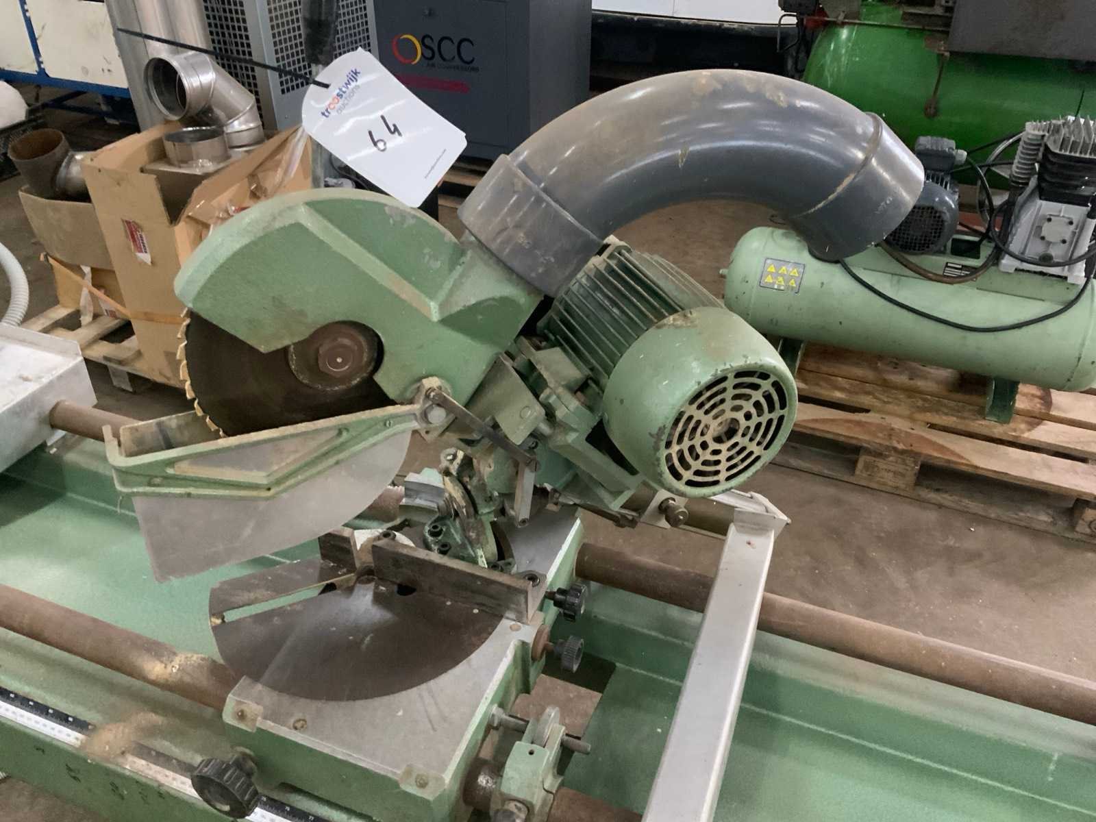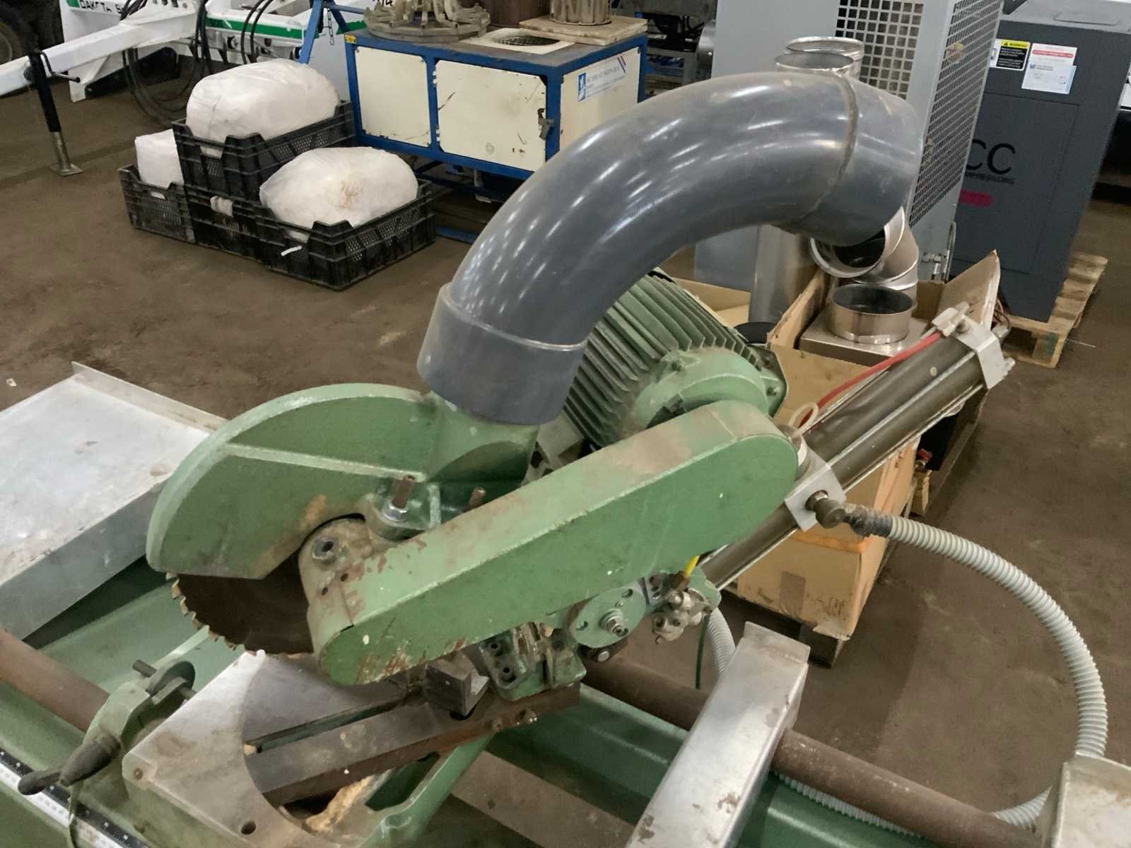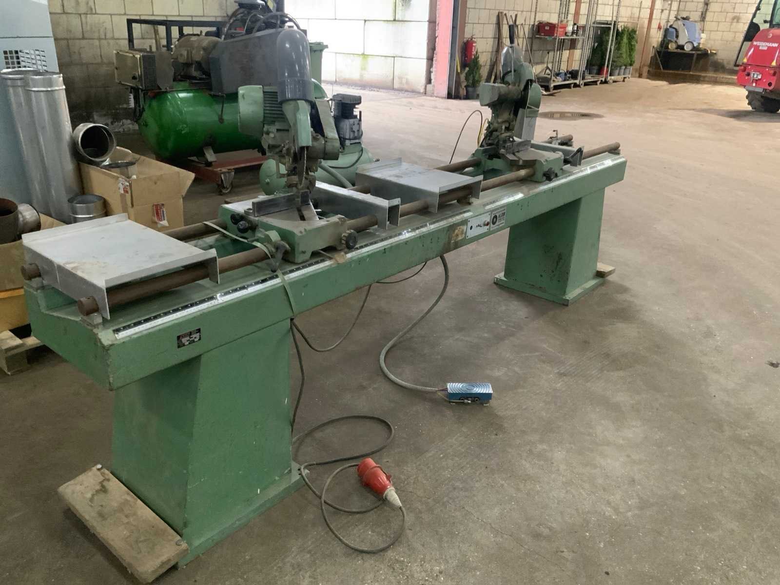 Voorzien van pneumatische voeding, voetbediening Merk: Stb Type: SD.21 Zaagblad Ø: 250mm Afmeting l: 3170mm Afmeting b: 750mm Afmeting h: 1380mm Aansluiting: 380V